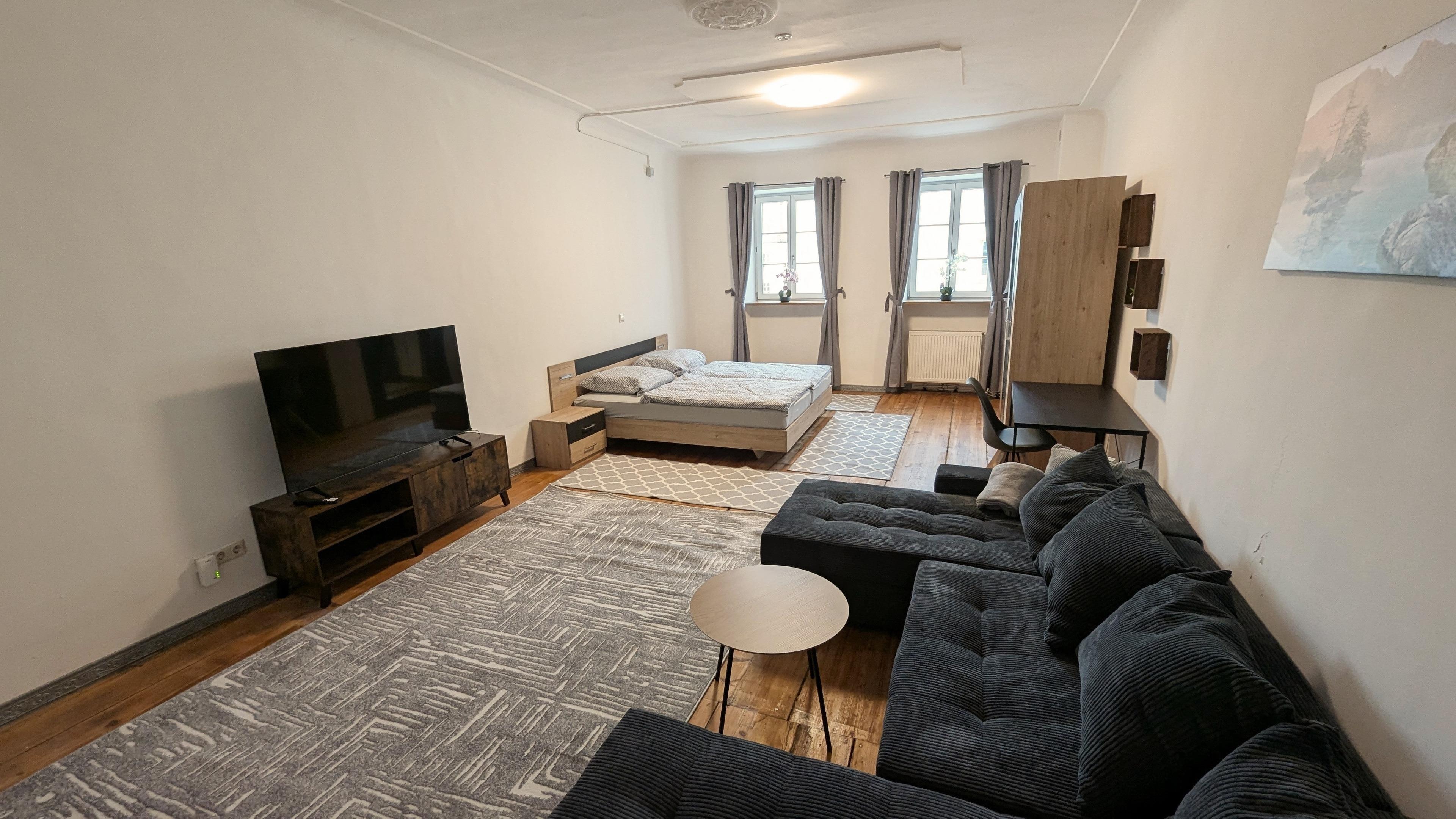 Die modernen und großzügigen Zimmer "Salzachstadt" befinden sich mitten in der historischen Altstadt von Laufen und bieten alles, was Sie für einen entspannten, gelungenen Aufenthalt benötigen. Die ca. 40qm großen Wohn / Schlafzimmern sind ausgestattet mit Doppelbett und Schlafsofa, Flachbild TV, Schreibtisch, Highspeed WLAN. Zur gemeinschaftlichen Benutzung steht eine voll ausgestattete Küche, 1 Bad ausgestattet mit 2 Waschbecken und separater, moderner großer Dusche, Waschmaschine und Gäste-WC zur Verfügung. Die Ferienzimmer bieten Platz für bis zu 4 Personen. Gemütliches zusammen sein mit einem grandiosen Ausblick über die Dächer von Laufen, bietet die im 3. Stock befindende Dachterrasse. Kostenlose Parkplätze sind fußläufig erreichbar. Zentral gelegen, sind viele Geschäfte, Cafés , Restaurants usw. in direkter Umgebung. Auch die Lokalbahn in die Mozartstadt Salzburg (ca. 15 km entfernt), mit optimaler 30-minütiger Anbindung , erreichen sie in nur knapp 2 km Fußweg. Diverse Rad und Wanderwege laden ein, um die wunderschöne Gegend des Berchtesgadener Landes zu erkunden. Den Abtsdorfer See (wärmster Badesee Oberbayerns) erreichen sie in nur 5 km. Auch die bekannten Städte Bad Reichenhall (ca. 30 km) oder Schönau am Königsee (ca.40 km), die Berge Oberbayerns und des benachbarten Salzkammergutes sind einen Ausflug wert.
