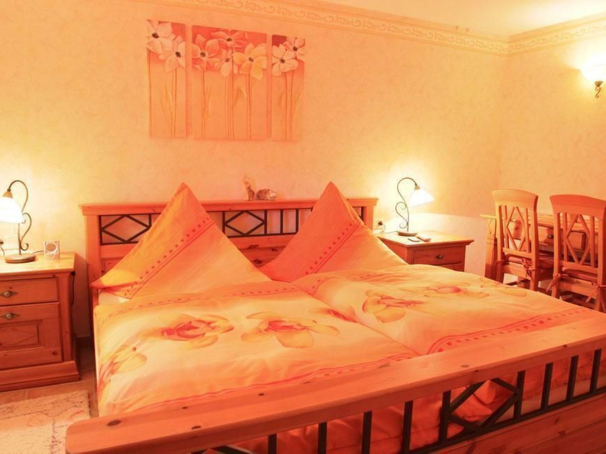 The detached property is surrounded by well-tended gardens and a trout pond with a wooden log cabin for cosy evenings and barbecue facilities. There is also plenty of variety for younger guests. In the playground with trampoline, swings, climbing frame, football goals and badminton net, children can let off steam in full view of their parents or play with the animals in the small petting zoo. You can park your car carefree in the private car park right next to the accommodation.