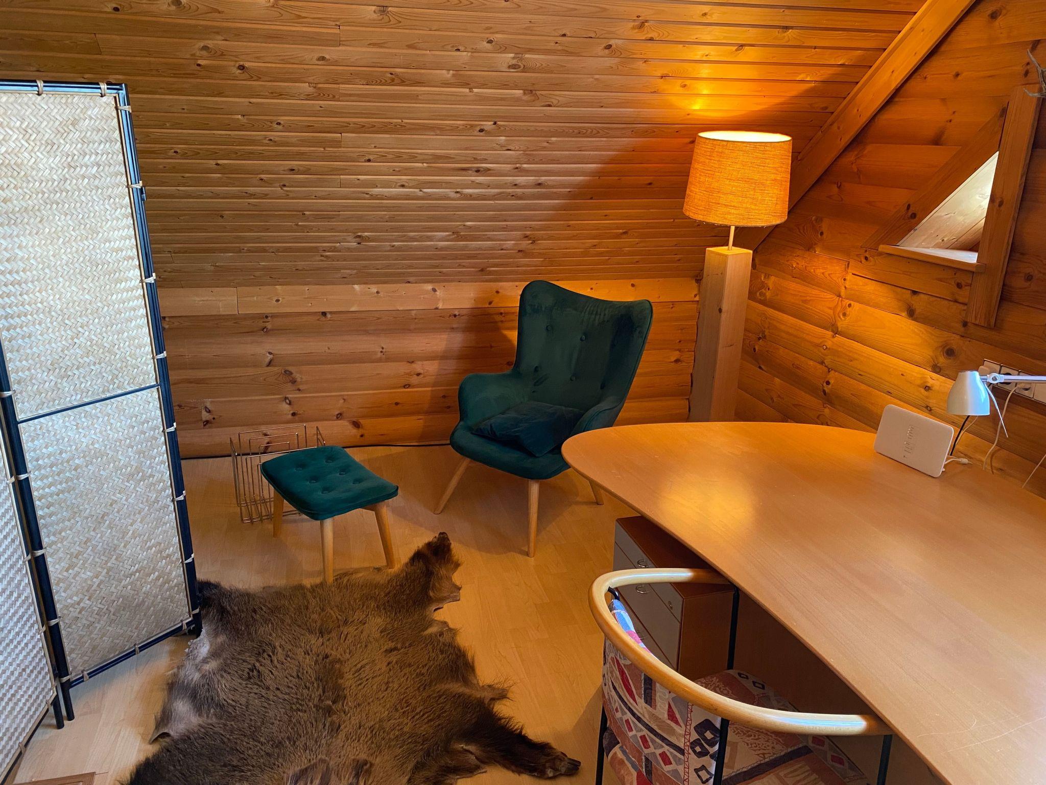 With an area of 160 square metres, the house offers enough space for up to 8 people. A modern kitchen, two bathrooms, a guest toilet, a large fireplace, library, a variety of lighting options, 3 bedrooms and underfloor heating on the ground floor offer a level of comfort that is not so easy to find on the Rennsteig in combination with the log construction of the house. The covered balcony on the upper floor and the paved terraces facing south and west offer plenty of space for relaxation, barbecues or chats in the fresh forest air.