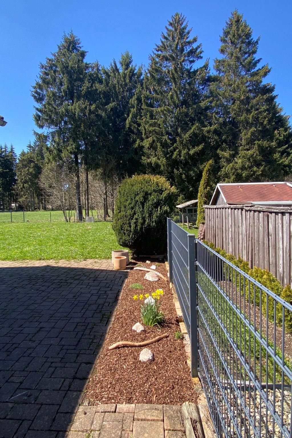 The holiday home is located on the western edge of the town of Neuhaus am Rennweg, which has a population of around 9,000. It is extremely quiet, right on the edge of the forest and yet close enough to do your shopping on foot.