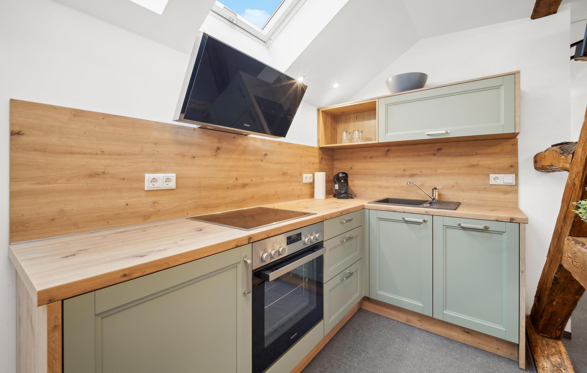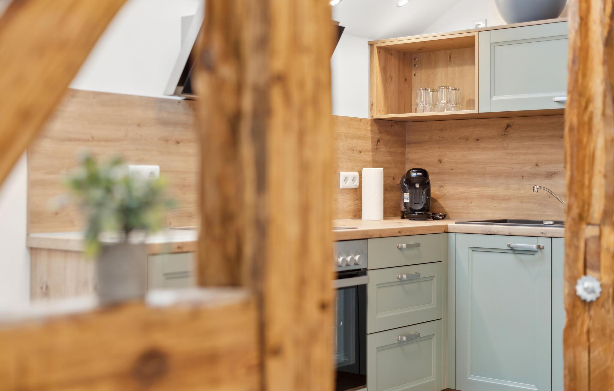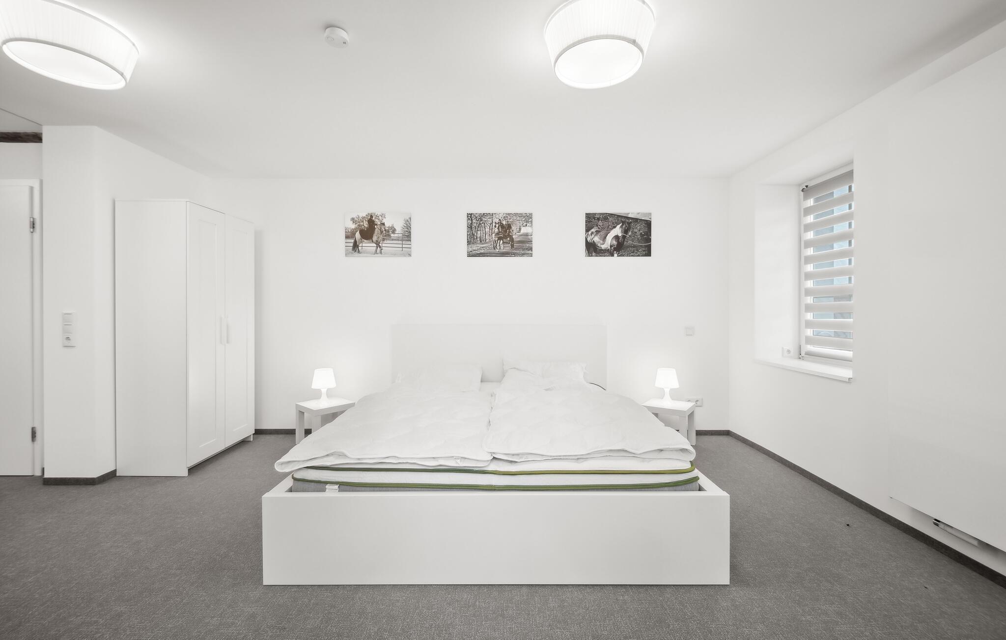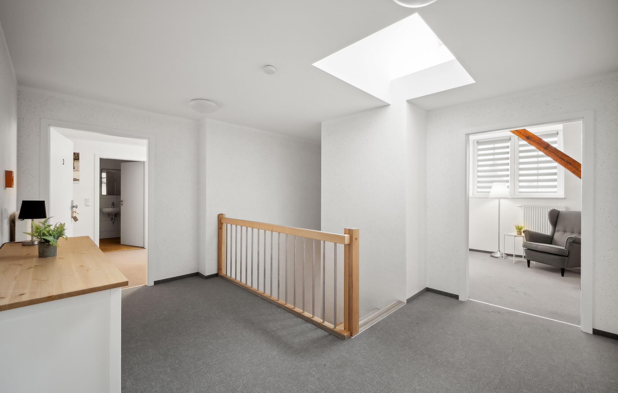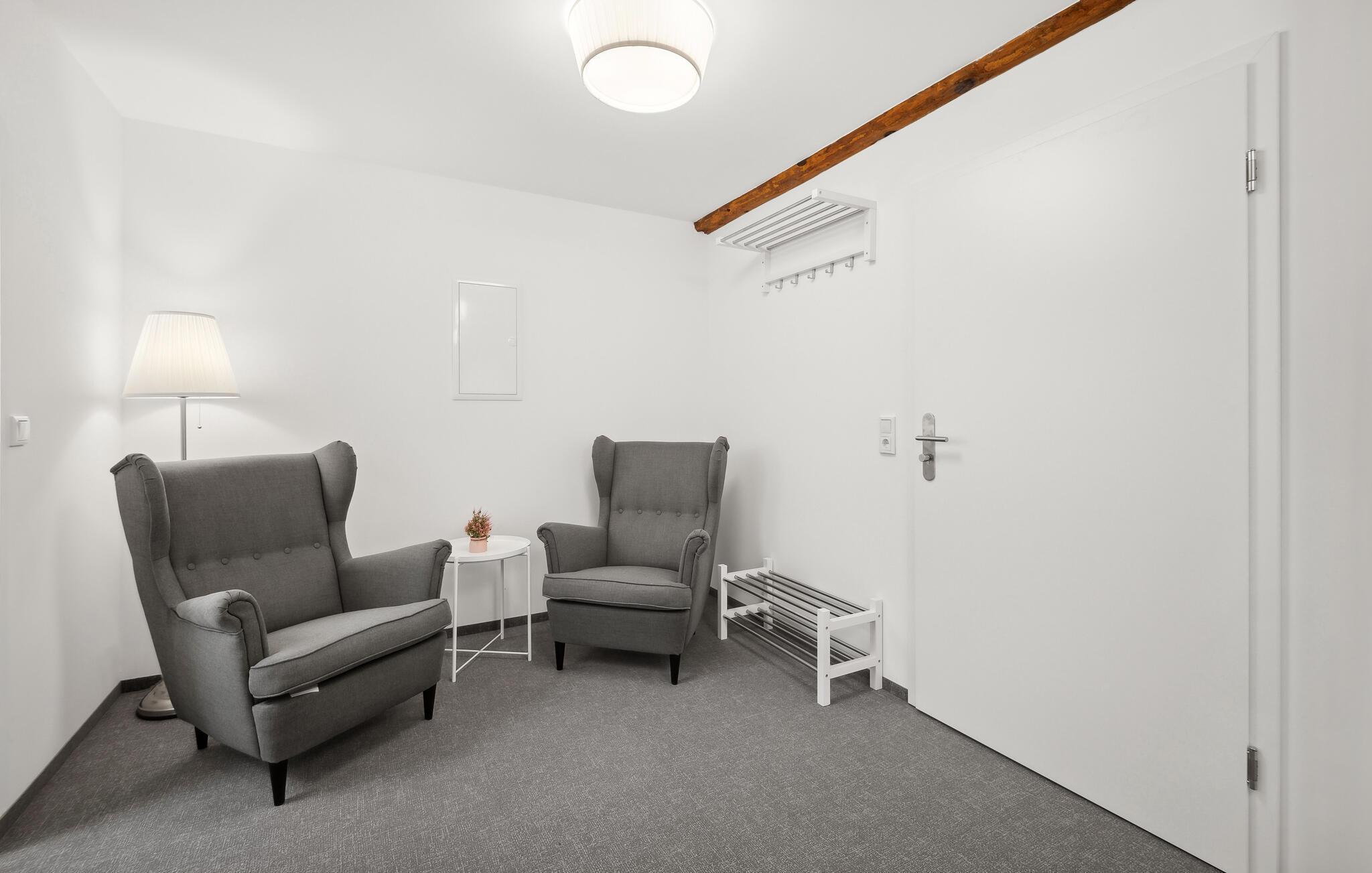 Nyt ferien i denne stilfulle ettromsleiligheten i Großräschen. Kombinasjonen av eksponert bindingsverk og moderne møbler skaper en koselig atmosfære som er ideell for avslappende dager som par eller alene. Hvis du reiser sammen med et vennepar, finnes det andre ferieleiligheter i huset, avhengig av tilgjengelighet. Den åpne stue- og spisestuen innbyr til felles matlaging og avslapning, mens det store vinduet slipper inn rikelig med lys. Her kan dere koble av etter aktive dager i naturen.