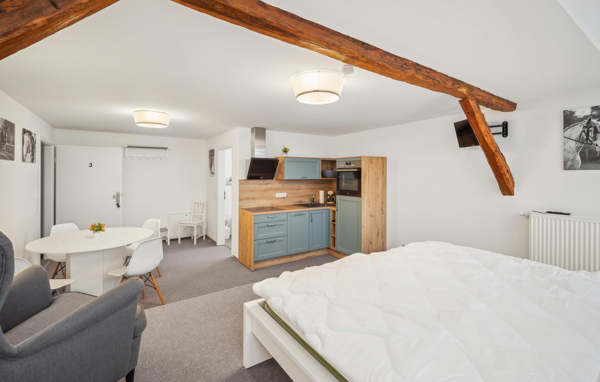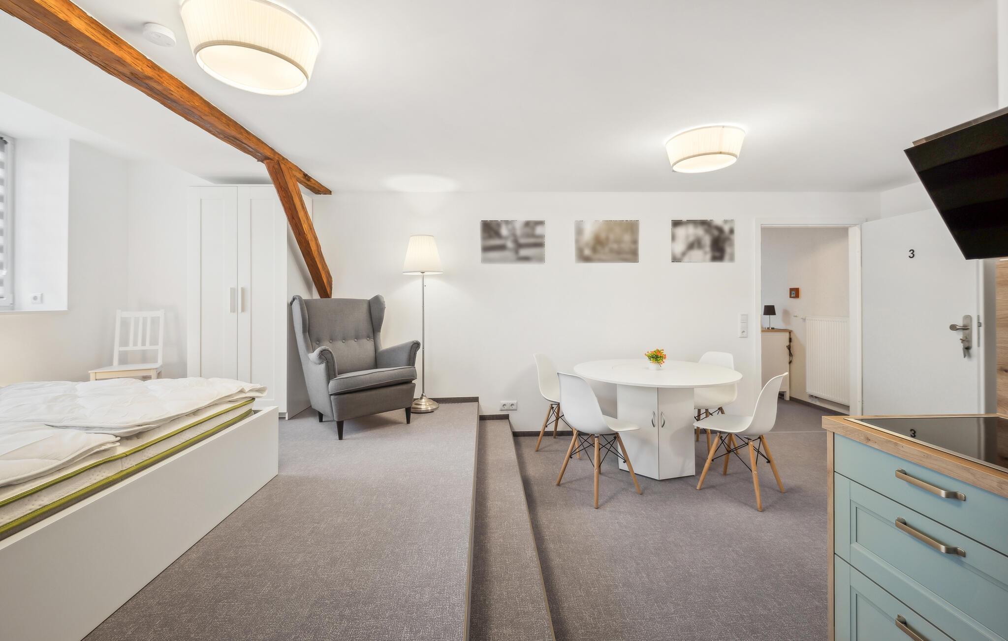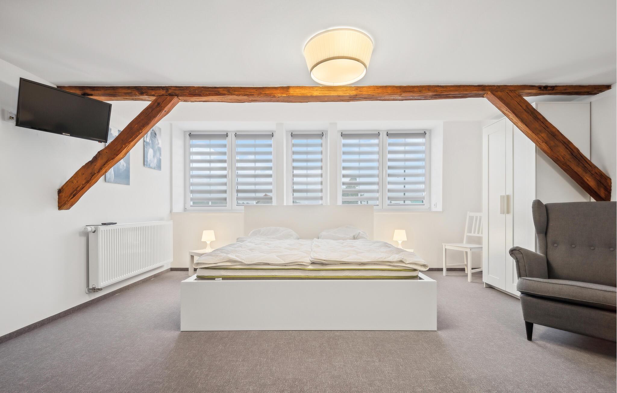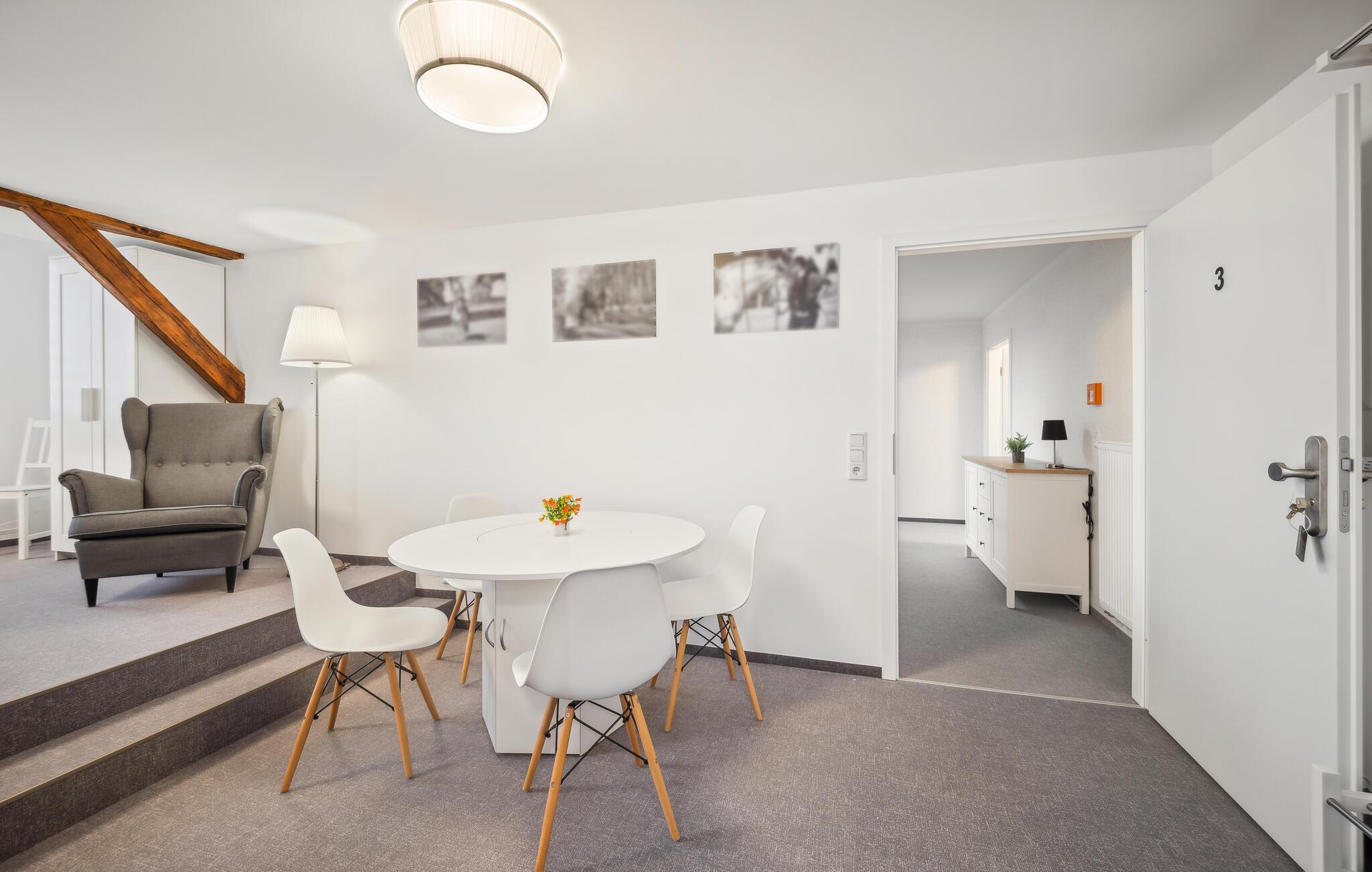 Nyt ferien i denne stilfulle ettromsleiligheten i Großräschen. Kombinasjonen av eksponert bindingsverk og moderne møbler skaper en koselig atmosfære som er ideell for avslappende dager som par eller alene. Hvis du reiser sammen med et vennepar, finnes det andre ferieleiligheter i huset, avhengig av tilgjengelighet. Den åpne stue- og spisestuen innbyr til felles matlaging og avslapning, mens det store vinduet slipper inn rikelig med lys. Her kan dere koble av etter aktive dager i naturen.