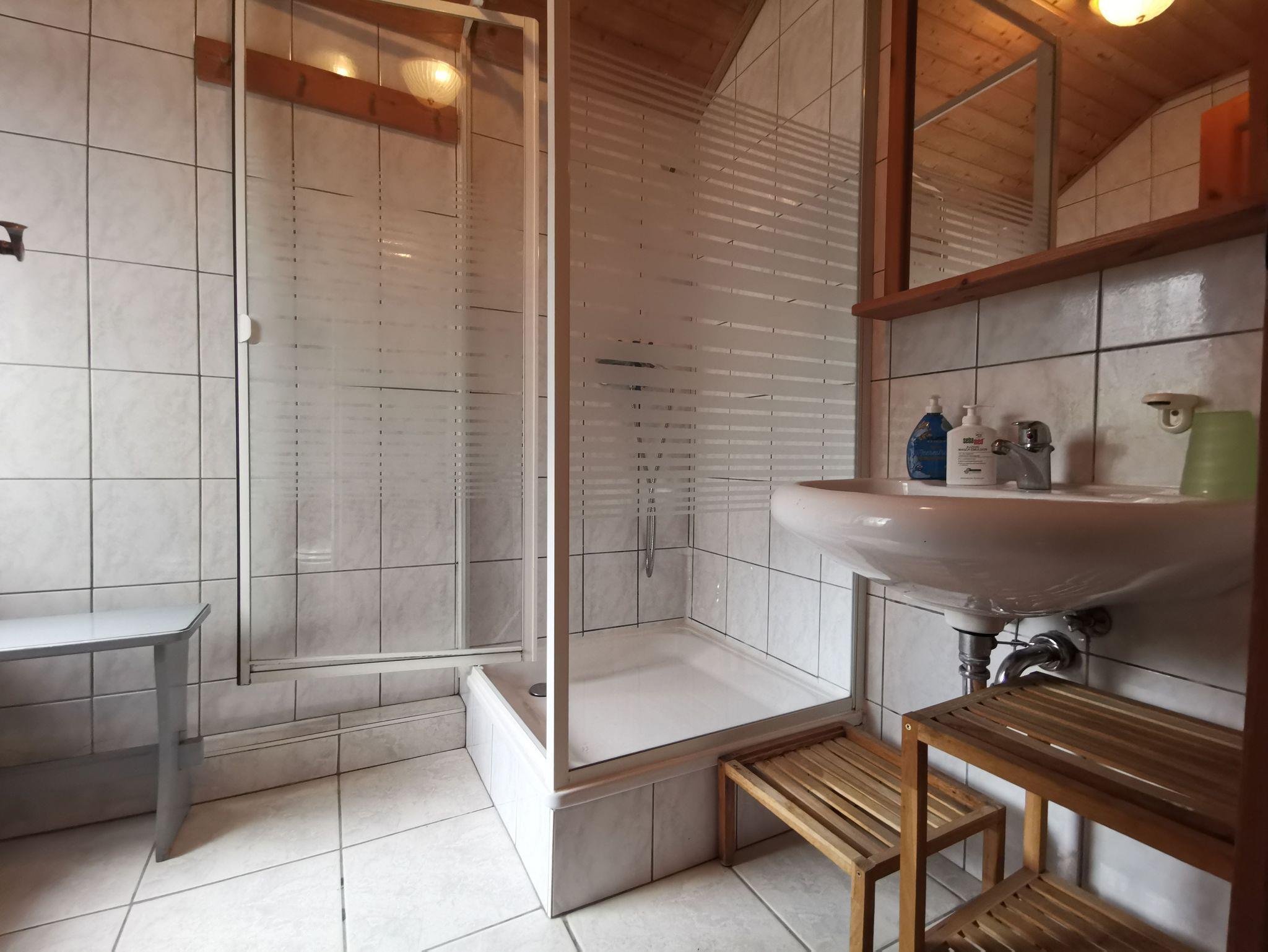 Die Ferienwohnung verfügt über einen kombinierten Wohn- und Schlafraum, einen Schlafraum und eine Küche sowie Dusche und WC. Sie ist modern und freundlich eingerichtet. Fernseher und Telefon gehören selbstverständlich auch zur Ausstattung. Die Küche ist komplett ausgestattet.