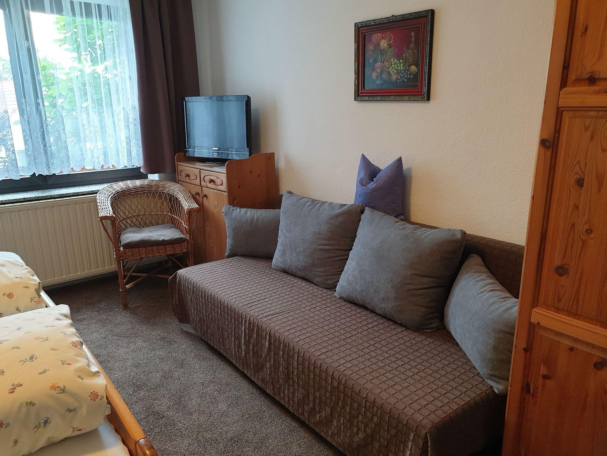 Alle Zimmer verfügen über Dusche und WC. Sie sind modern und freundlich eingerichtet. Fernseher und Telefon gehören selbstverständlich auch zur Ausstattung.