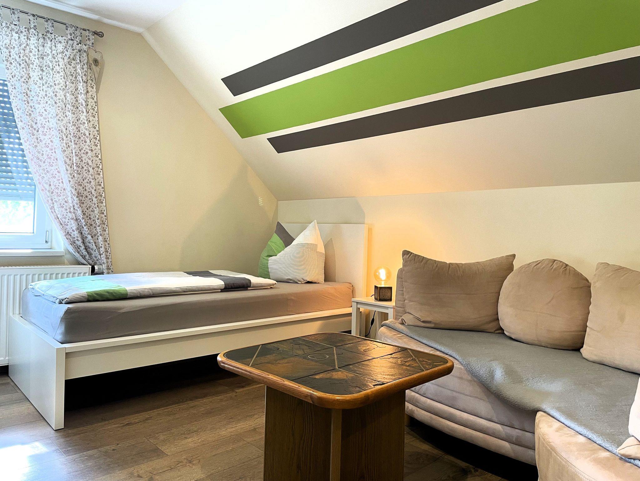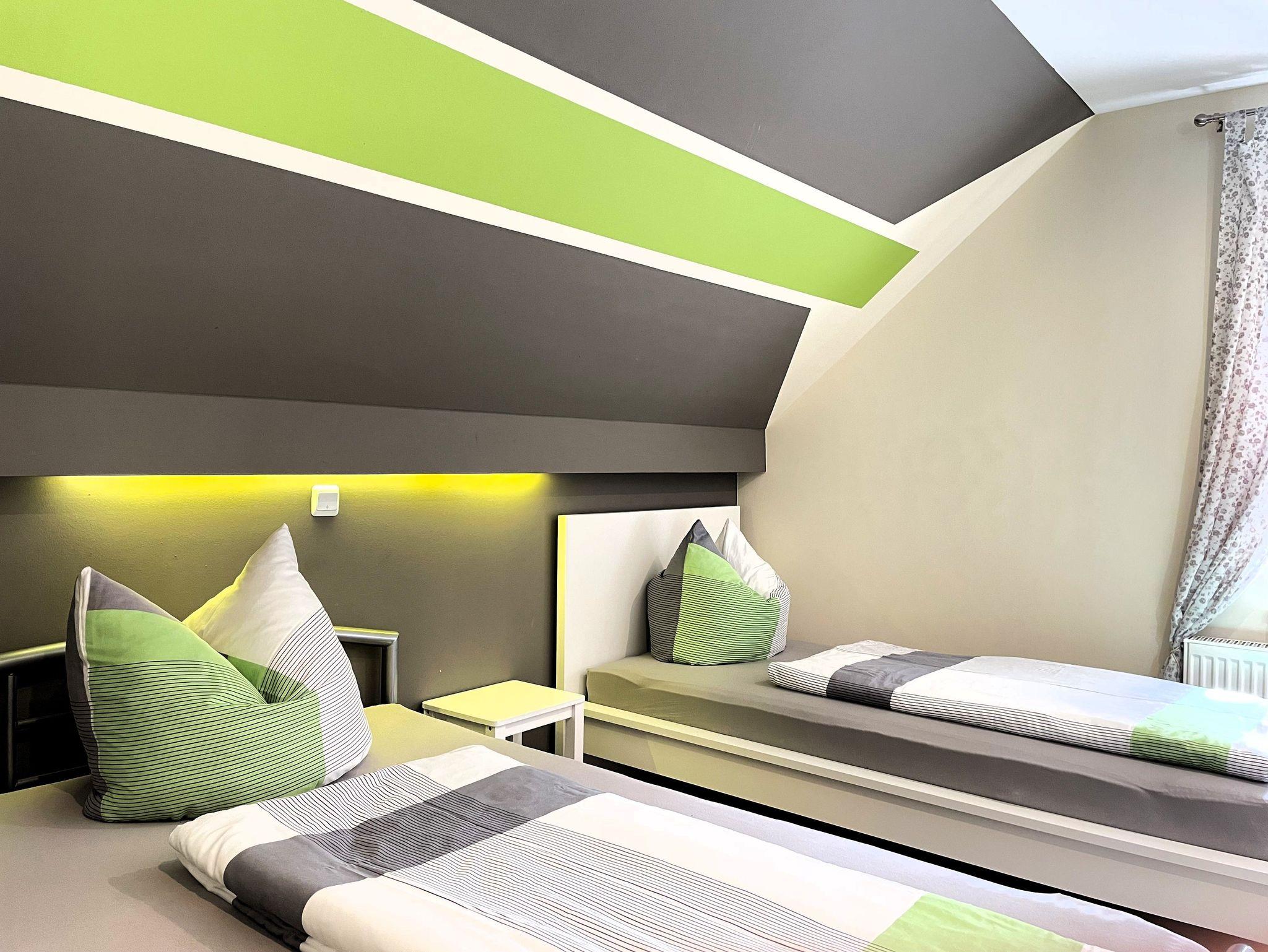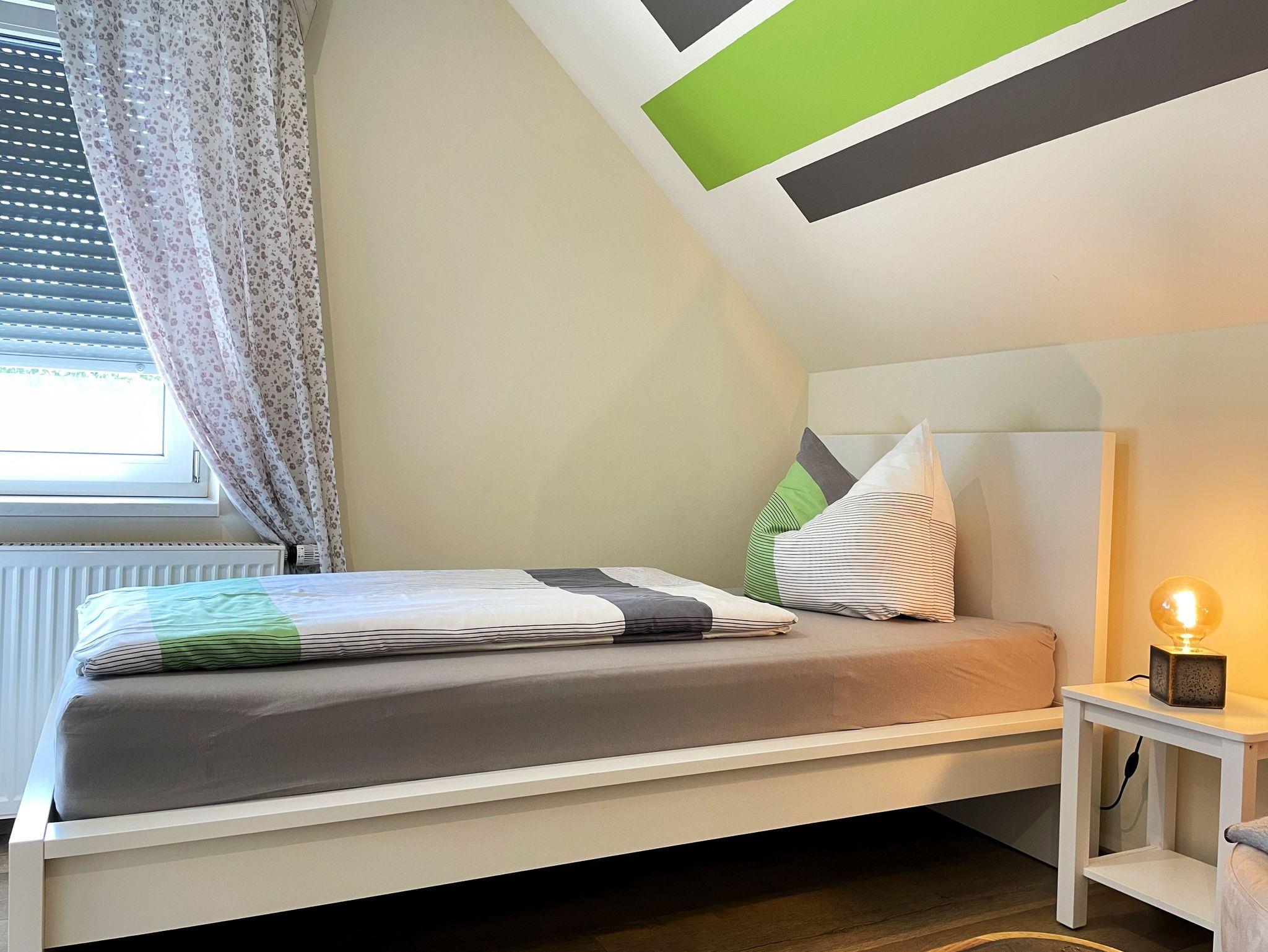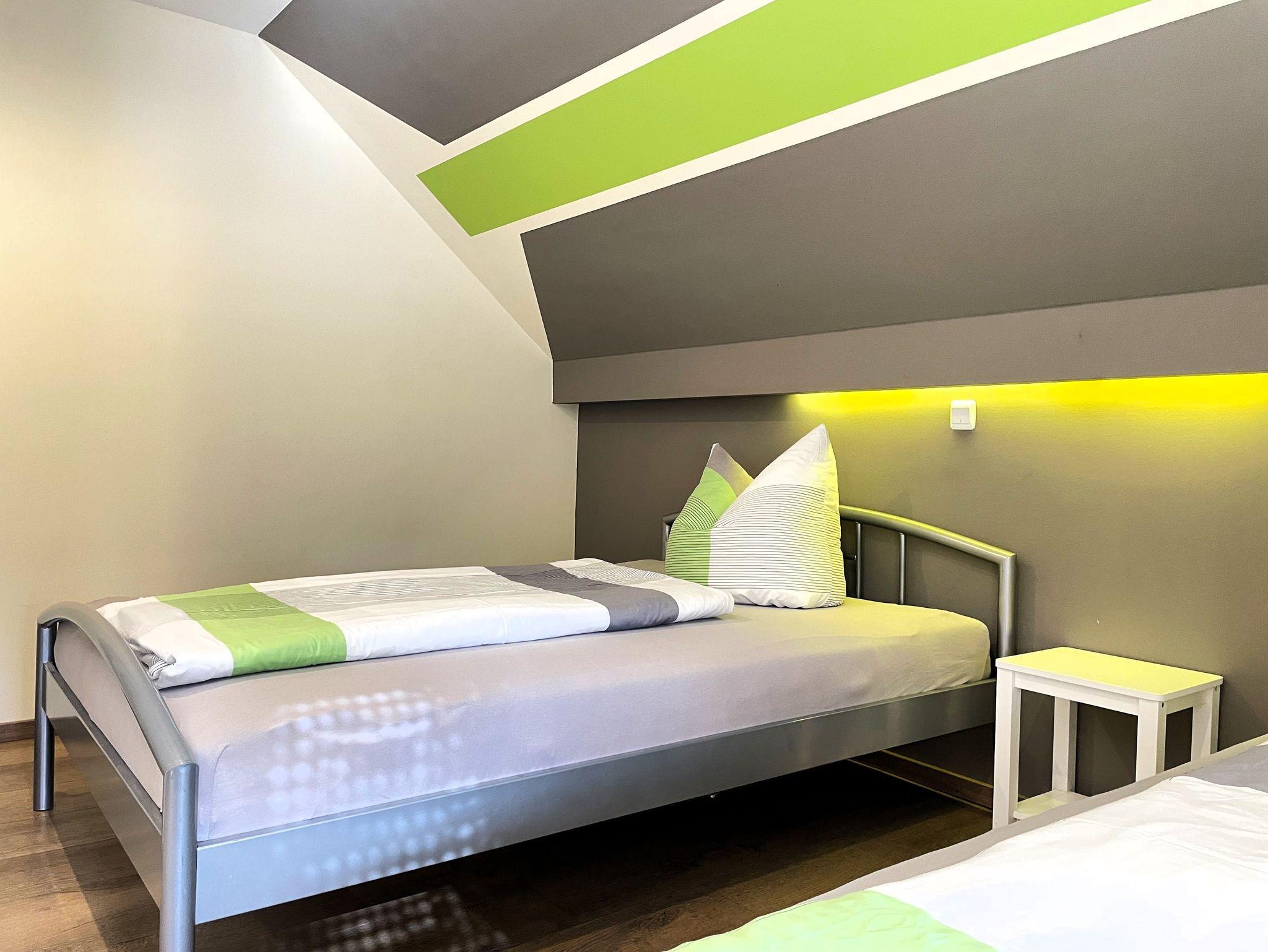 In der oberen Etage erwartet Sie ein großzügiges, liebevoll eingerichtetes Mehrbettzimmer ein Ort zum Ankommen, Abschalten und Wohlfühlen. Die harmonisch aufeinander abgestimmten Farben und das helle, freundliche Ambiente schaffen eine behagliche Atmosphäre, in der sich Familien, Paare oder kleine Gruppen sofort zuhause fühlen.