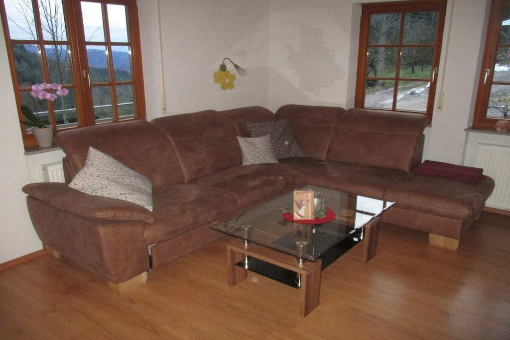 Idyllisk beliggende ovenfor Lautenbach, i en høyde av 500 meter, omgitt av skog, enger og frukttrær, venter vår moderne, kjærlig møblerte, 4-stjerners sertifiserte ferieleilighet på deg. Gården vår ligger rolig og idyllisk til i et avsidesliggende område omgitt av vakker natur. Leiligheten er et ideelt utgangspunkt for fotturer, som Lautenbacher Hexensteig og Himmelsteig, Schwarzwaldsteig, Wiesensteig og Brennersteig, sertifiserte premium turstier (https://www.schwarzwälder-wandersinfonie.de). Andre attraktive reisemål inkluderer Baden-Baden, Freiburg, Strasbourg og nabolandet Alsace, inkludert Colmar. Leiligheten har plass til to til fire personer. Den vakre sørvendte beliggenheten og den lyse, romslige stuen og spisestuen med balkong har sin egen spesielle sjarm. Et spesielt trekk er det nye badstueområdet i den tidligere stallen til gårdshuset vårt ved siden av. Her kan du slappe av – ikke bare i dårlig vær.