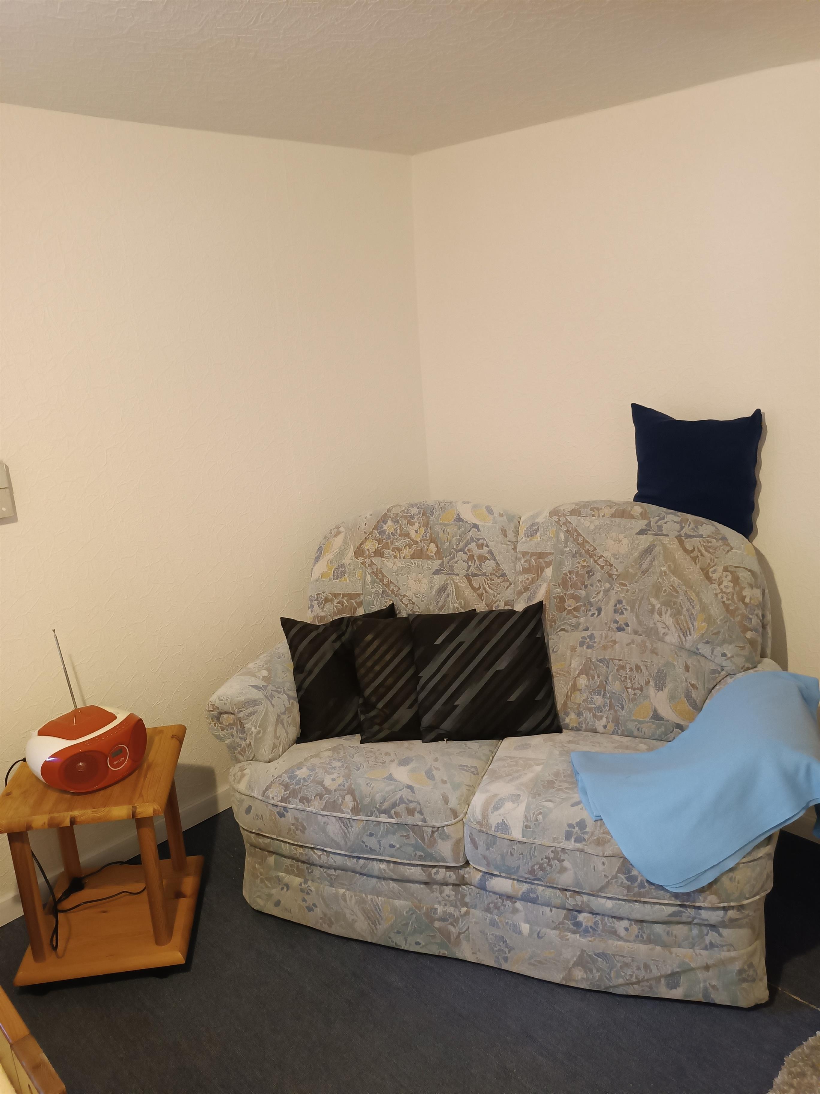 Die gut ausgestattete Küche besitzt unter anderem einen Toaster und eine Kaffeemaschine. In dieser Ferienwohnung sind Haustiere erlaubt.