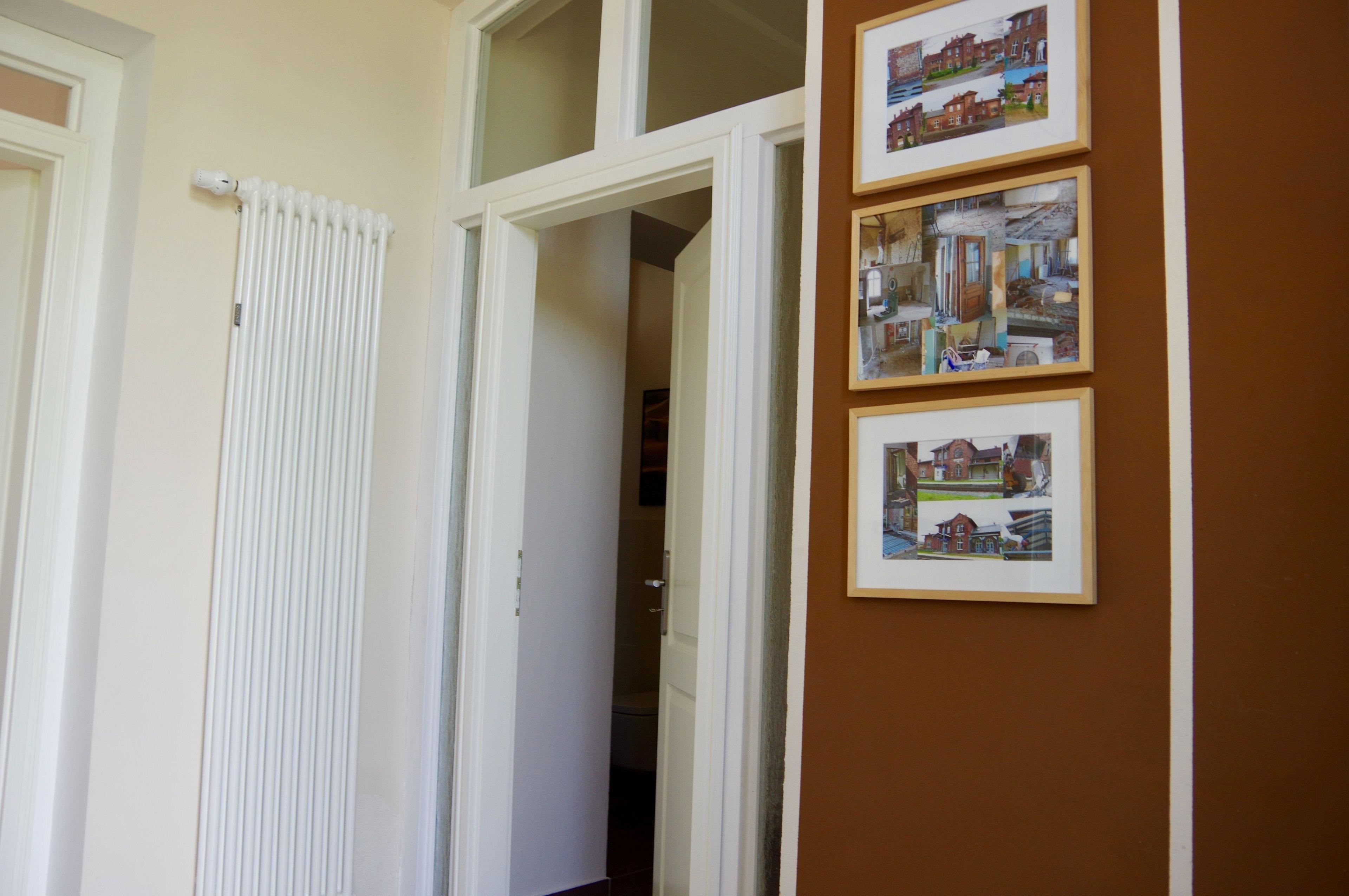 Die Ferienwohnung ist über die ursprüngliche Freitreppe zu erreichen. Vom großzügigen Eingangsbereich gelangen Sie in das abgeschlossene Schlafzimmer, in das moderne und hochwertig ausgestattete Bad sowie in den offenen Wohn-, Ess- und Schlafbereich.