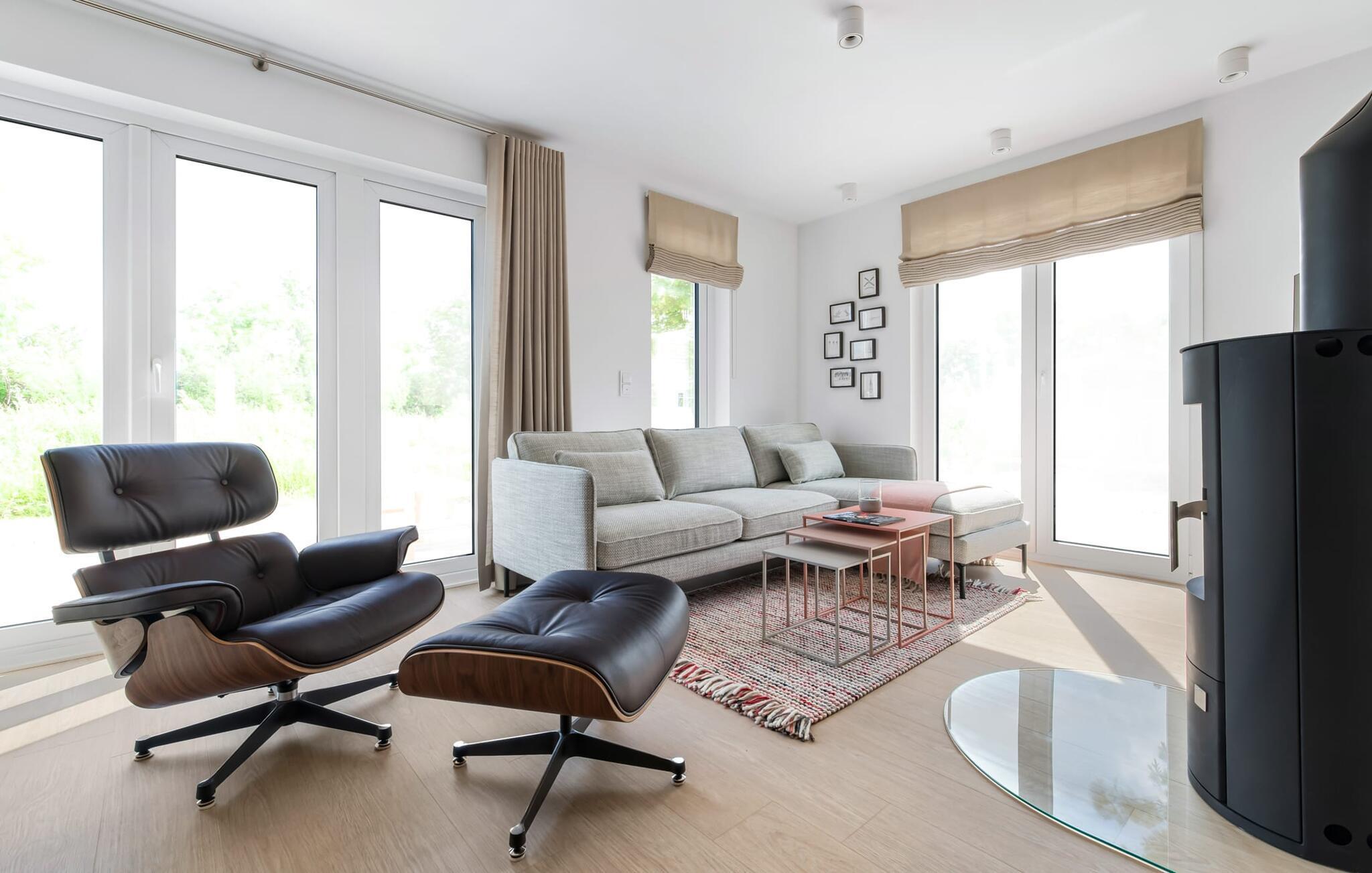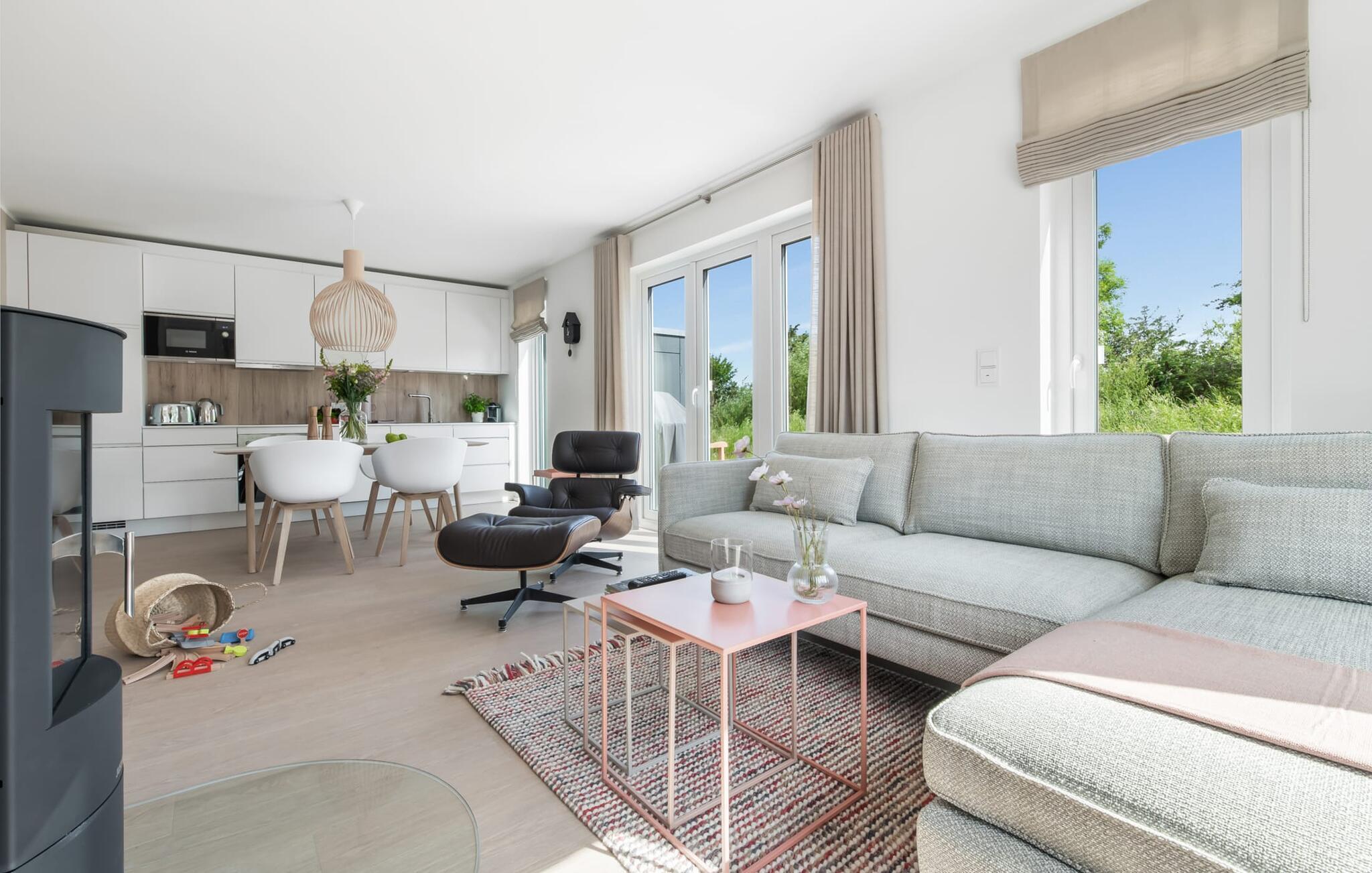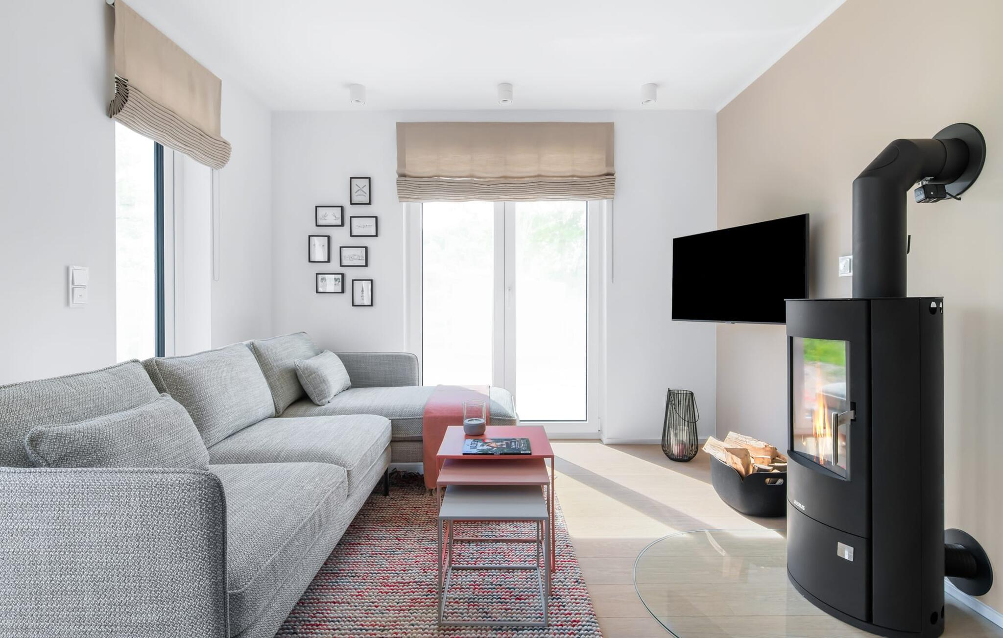 Vinduene fra gulv til tak og den tilstøtende romslige sørvestvendte terrassen er leilighetens hjerte sammen med den åpne stue-/spisestuen. Å komme inn her og umiddelbart føle seg hjemme er én ting. Å slappe av i den koselige sofaen, nyte stillheten i naturen fra vinduet eller se på TV er ren avslapning og rekreasjon. Og når Østersjøen viser seg fra sin solskinnsside, innbyr LAZY DAYS terrasse med sin komfortable strandstol til å nyte den hele dagen lang. I det nordiske været sørger vedovnen med sin knitrende ild for ekstra hygge.