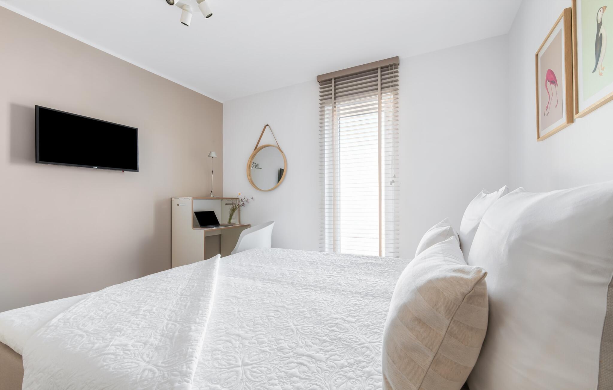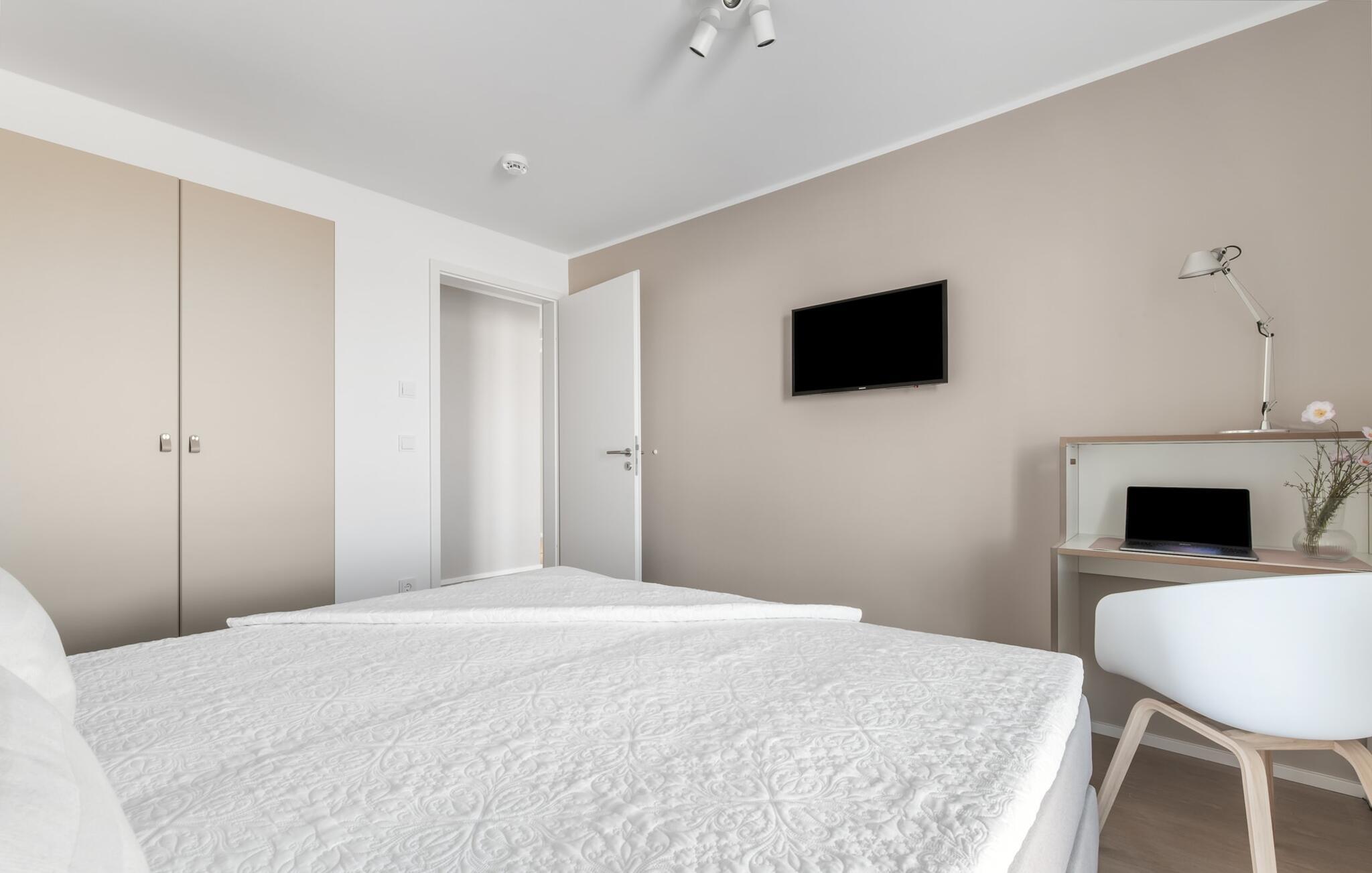LAZY DAYS tilbyr bevisst et fullt funksjonelt skrivebord med skrivebordslampe og 100 mbit WLAN på soverommet, adskilt fra stuen, for de som ønsker å jobbe hjemmefra mens de er på ferie.