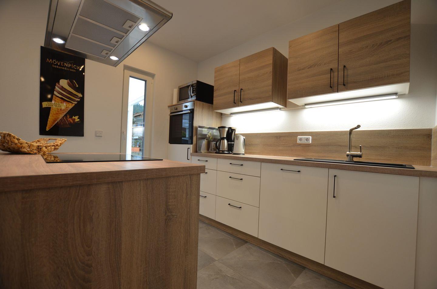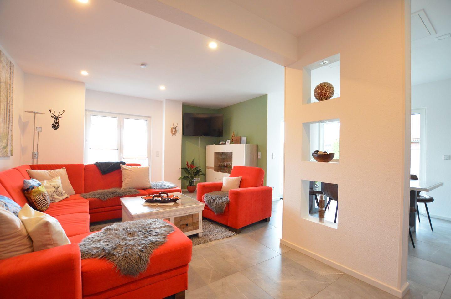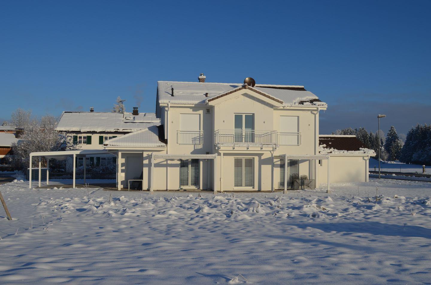 Lichtdurchflutete Räume, ein komfortabler offener Wohnbereich mit Kamin, großem Essbereich und komplett ausgestatteter Küchenzeile laden Sie ein einen erholsamen Urlaub im Allgäu im Flößerdorf Lechbruck am See zu verbringen.