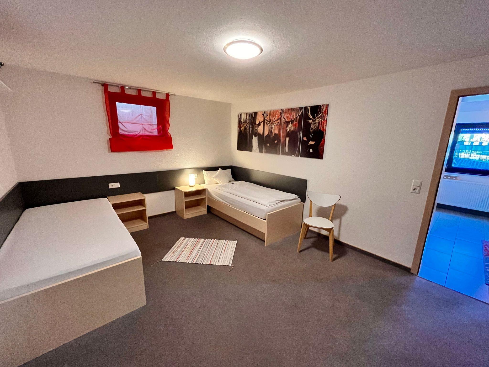 Unsere liebevoll eingerichtete Ferienwohnung Keuper befindet sich im Untergeschoss des Anbaus und ist über nur drei Stufen leicht erreichbar. Sie bietet Platz für bis zu vier Personen und verfügt über zwei geräumige Schlafräume. Die Betten können flexibel als Doppel- oder Einzelbetten gestellt werden. Bitte beachten Sie: Einer der Schlafräume hat ein Fenster zum Lichtschacht, wodurch dieser Raum etwas dunkler ist als der Rest der Wohnung!