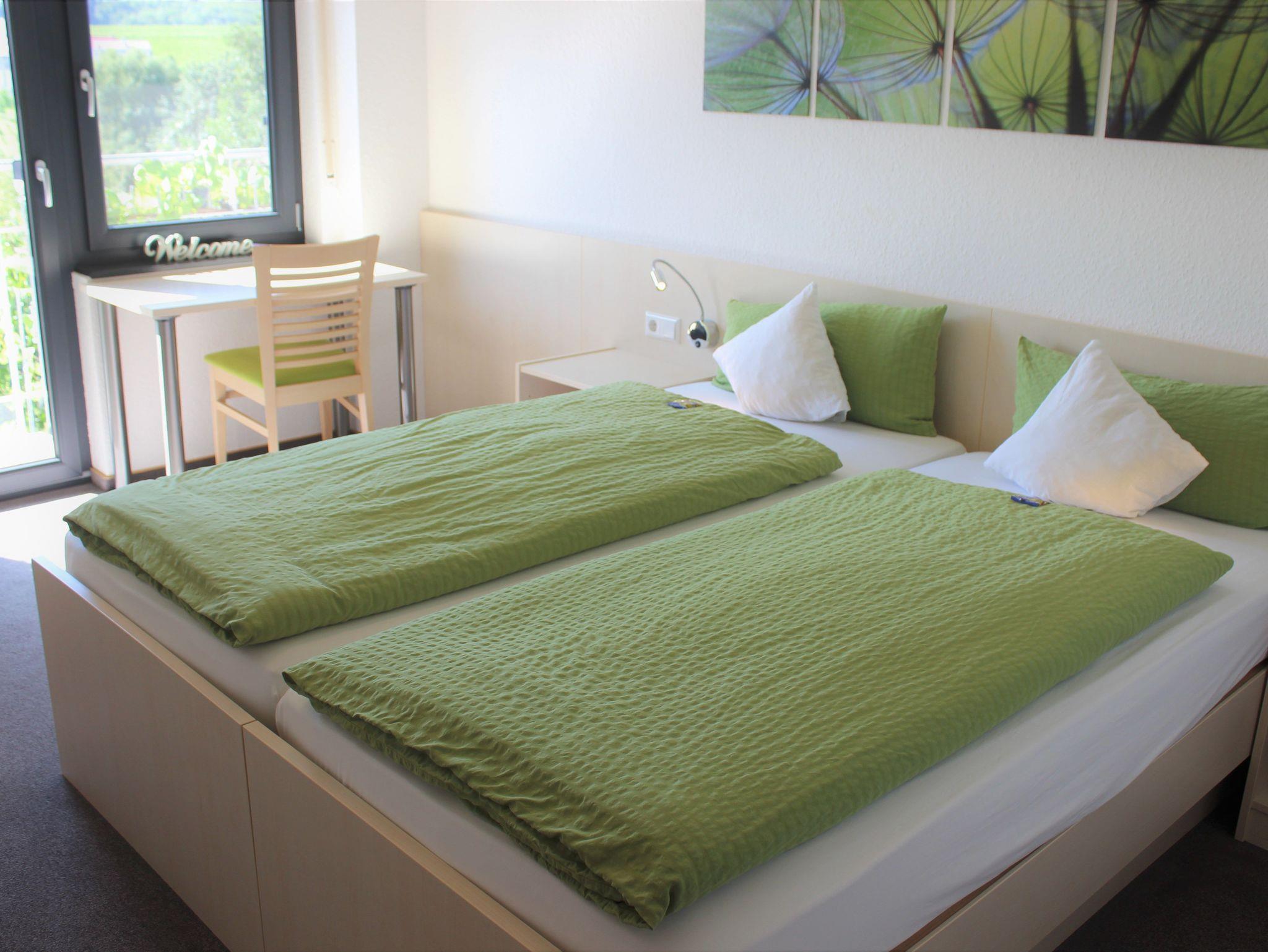 Die modernen und hell eingerichteten Appartements bieten jeweils Platz für zwei Personen. Hier können Sie das gemütliche Ambiente eines Gästezimmers genießen und zeitgleich Ihren eigenen Rhythmus leben. Alle Appartements sind ausgestattet mit einem Schlafbereich mit Doppelbett (können getrennt werden) und TV, hellen Holzmöbeln, einem modernen Bad mit Dusche, WC & Fön, einer kleinen Küchenzeile, WLAN und Balkon. Fast alle Appartements sind barrierefrei gestaltet und können auch von Gästen mit körperlichen Einschränkungen problemlos bewohnt werden.