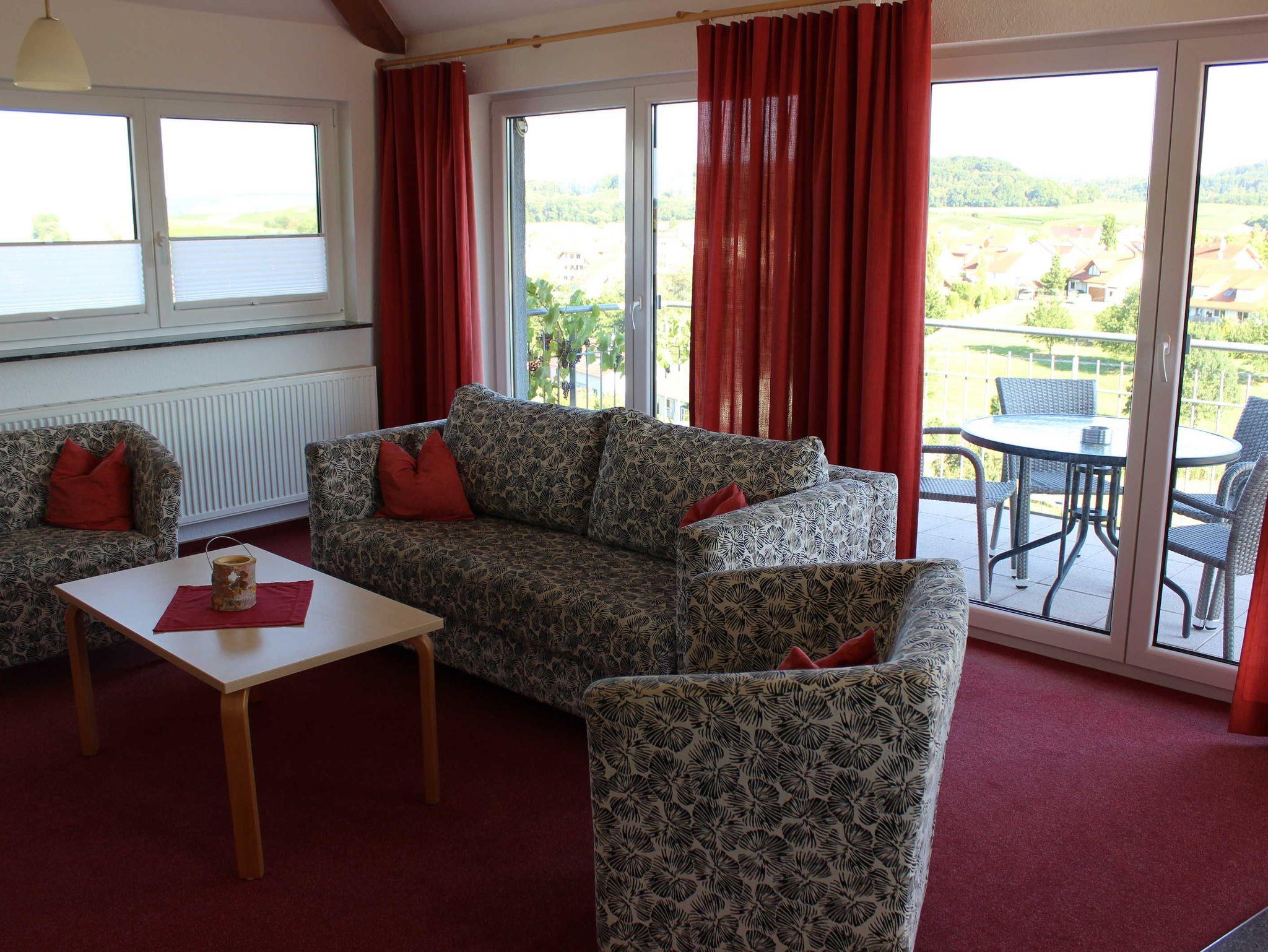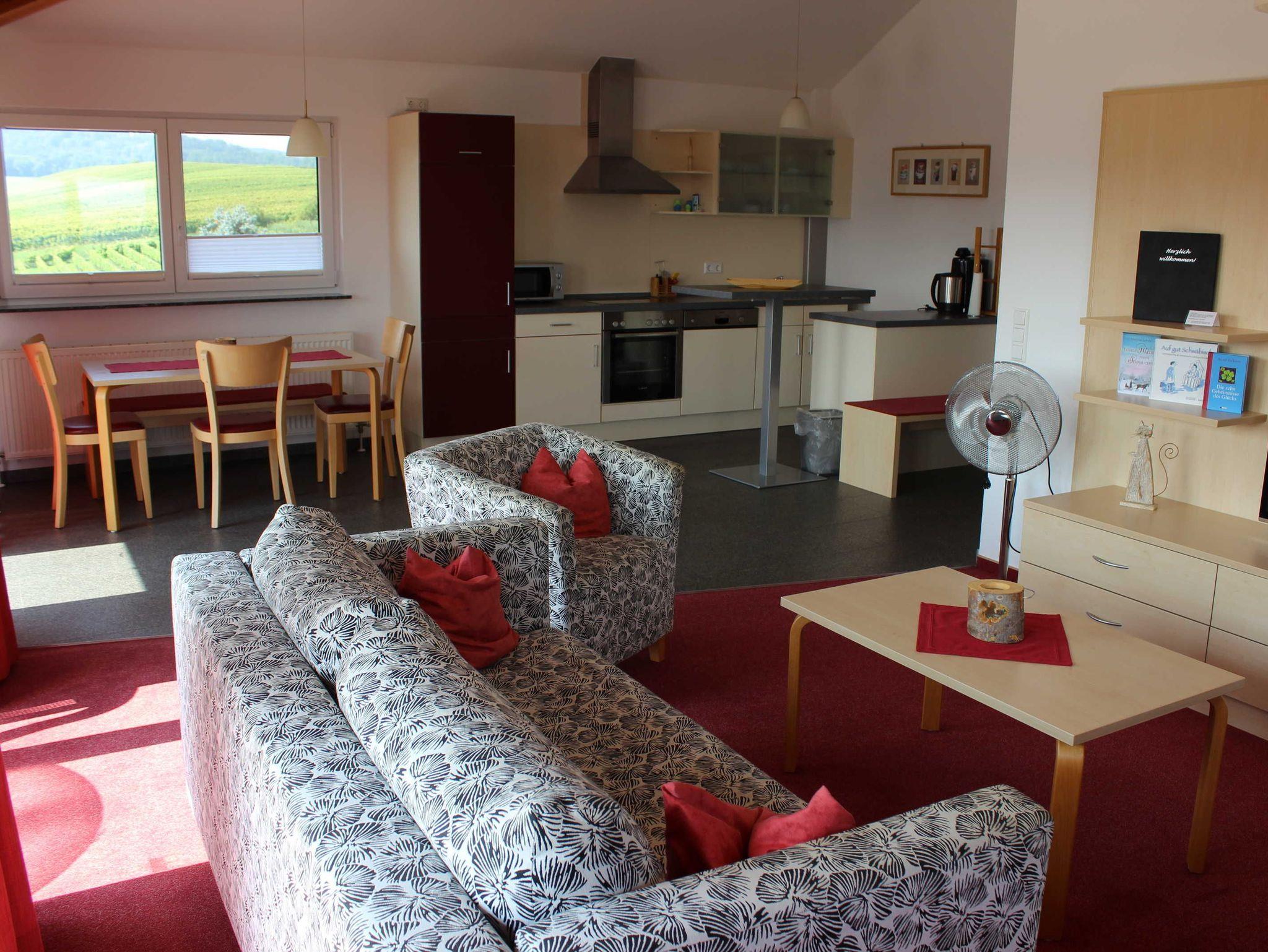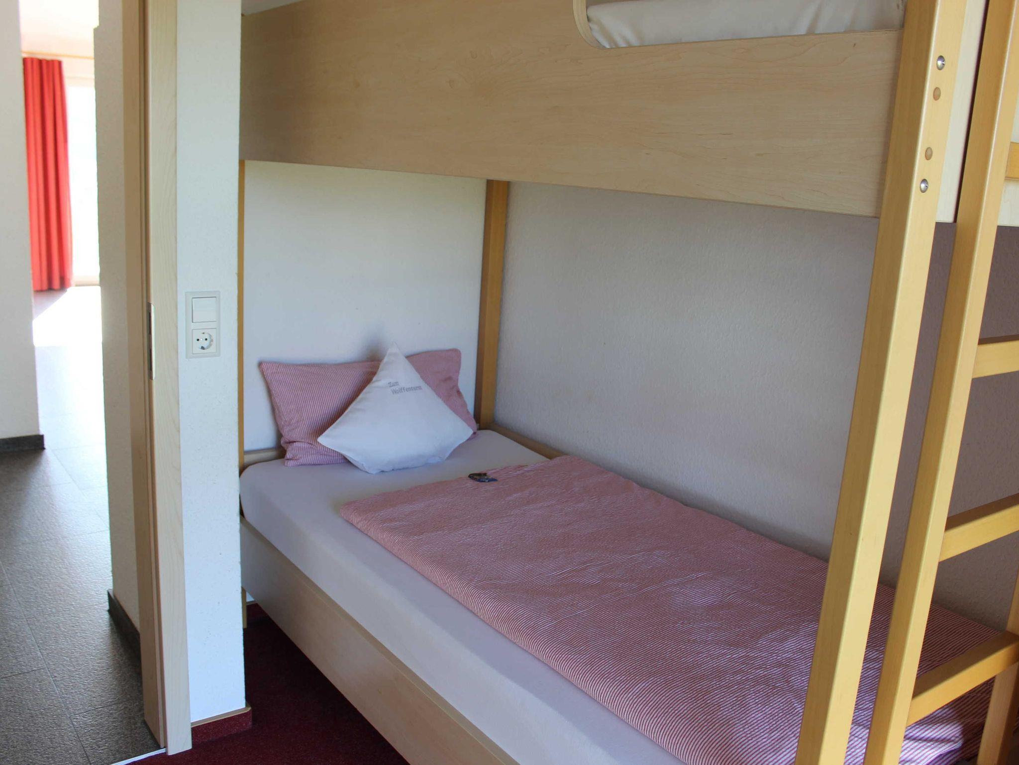 Die Ferienwohnung Reisberg liegt im 3. OG, direkt unter dem Dach des Turmes. Der Weitblick über die umliegende Natur lädt zum Wohlfühlen ein. Die Ferienwohnung ist modern, hell und freundlich eingerichtet und verfügt über ein Doppelzimmer und ein Zimmer mit Stockbett. Bis zu zwei zusätzliche Personen können auf einer Bettcouch in der geräumigen Wohn-Ess-Küche untergebracht werden. Die Wohnung ist nur über das Treppenhaus zu erreichen. Über einen Lift verfügt unser Gästehaus leider nicht.