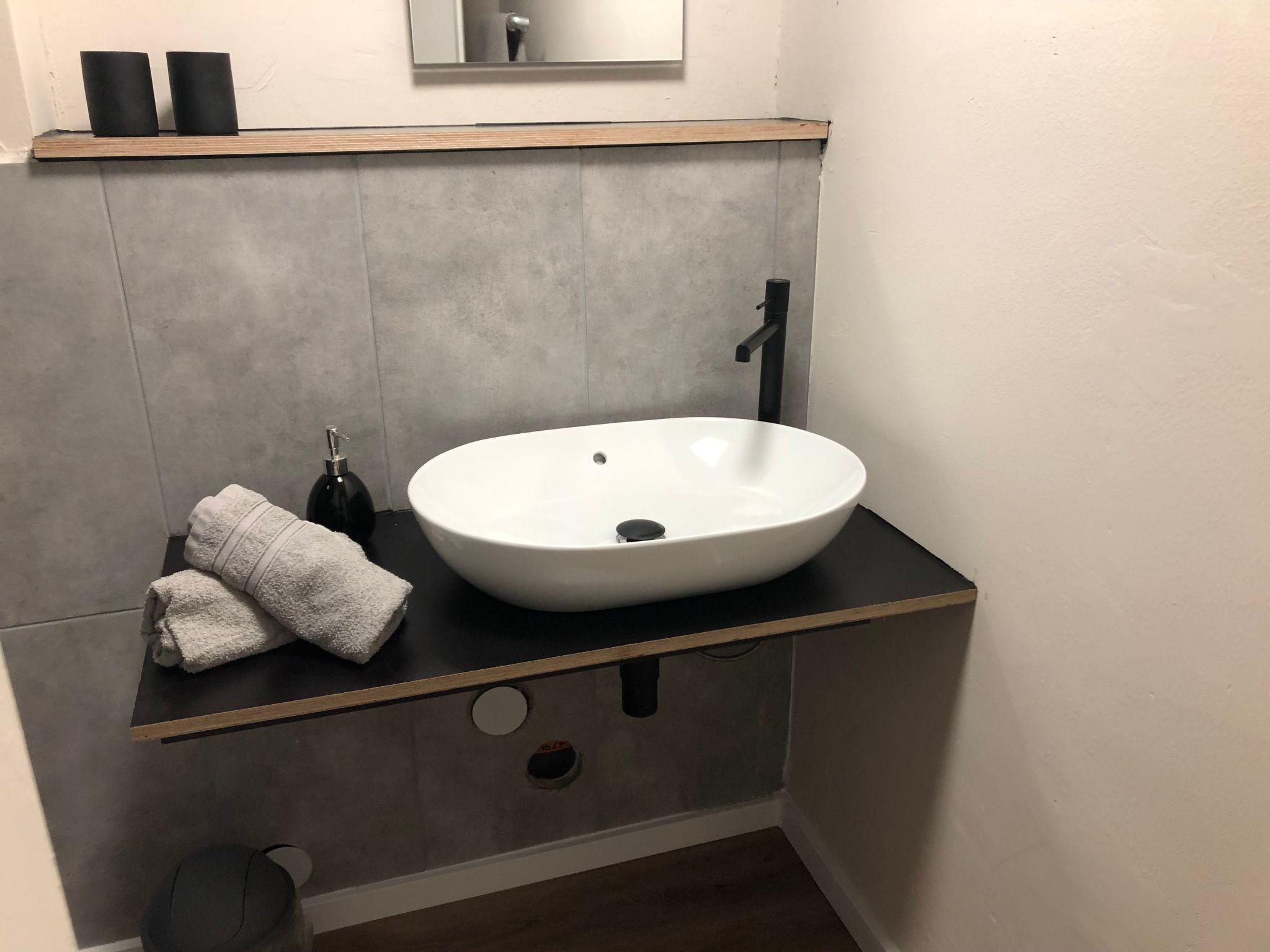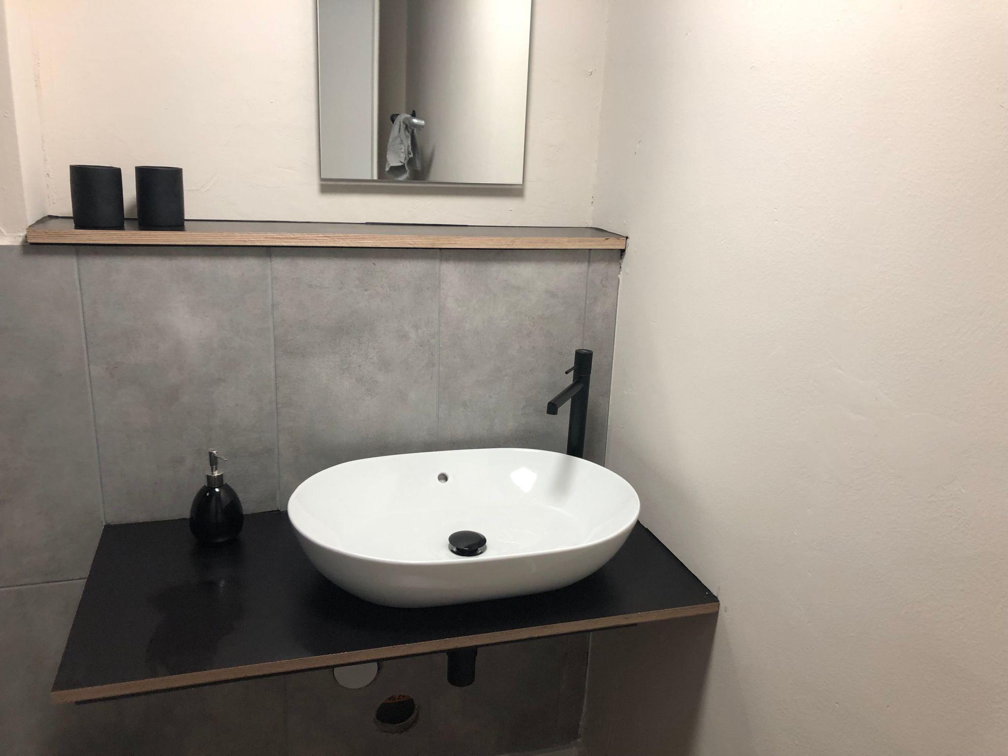 Inside the flat, the urban living style continues with carefully selected materials and colours. Exposed beams and concrete and metal surfaces are designed in harmony with light, neutral colours that evoke nature and create a soothing atmosphere. The living areas are not only aesthetically pleasing, but also functional and practical to make your stay as comfortable as possible. The kitchen equipment with ceramic hob, pod coffee machine, dishwasher and kettle invites you to enjoy cosy evenings with home-cooked meals.