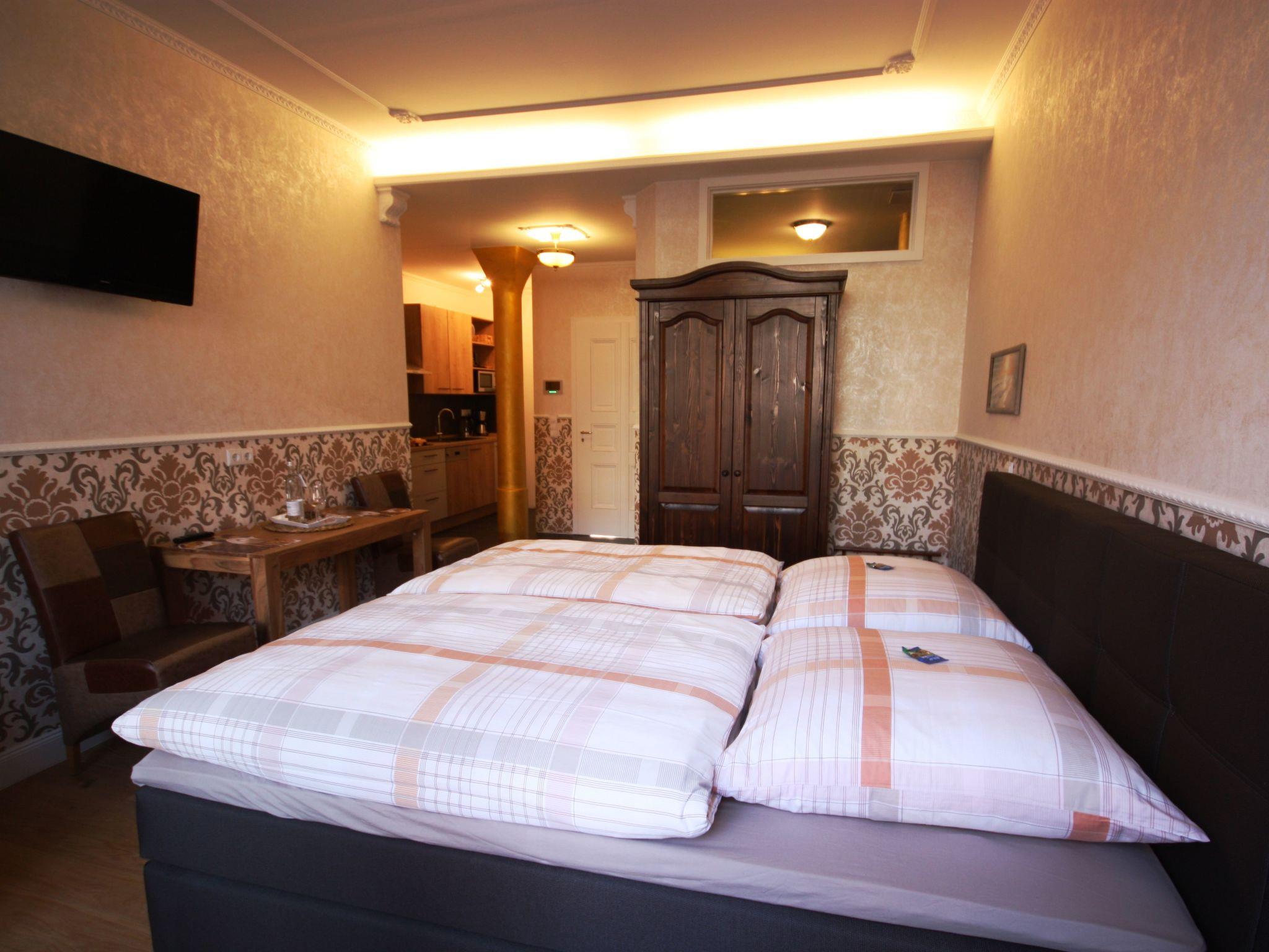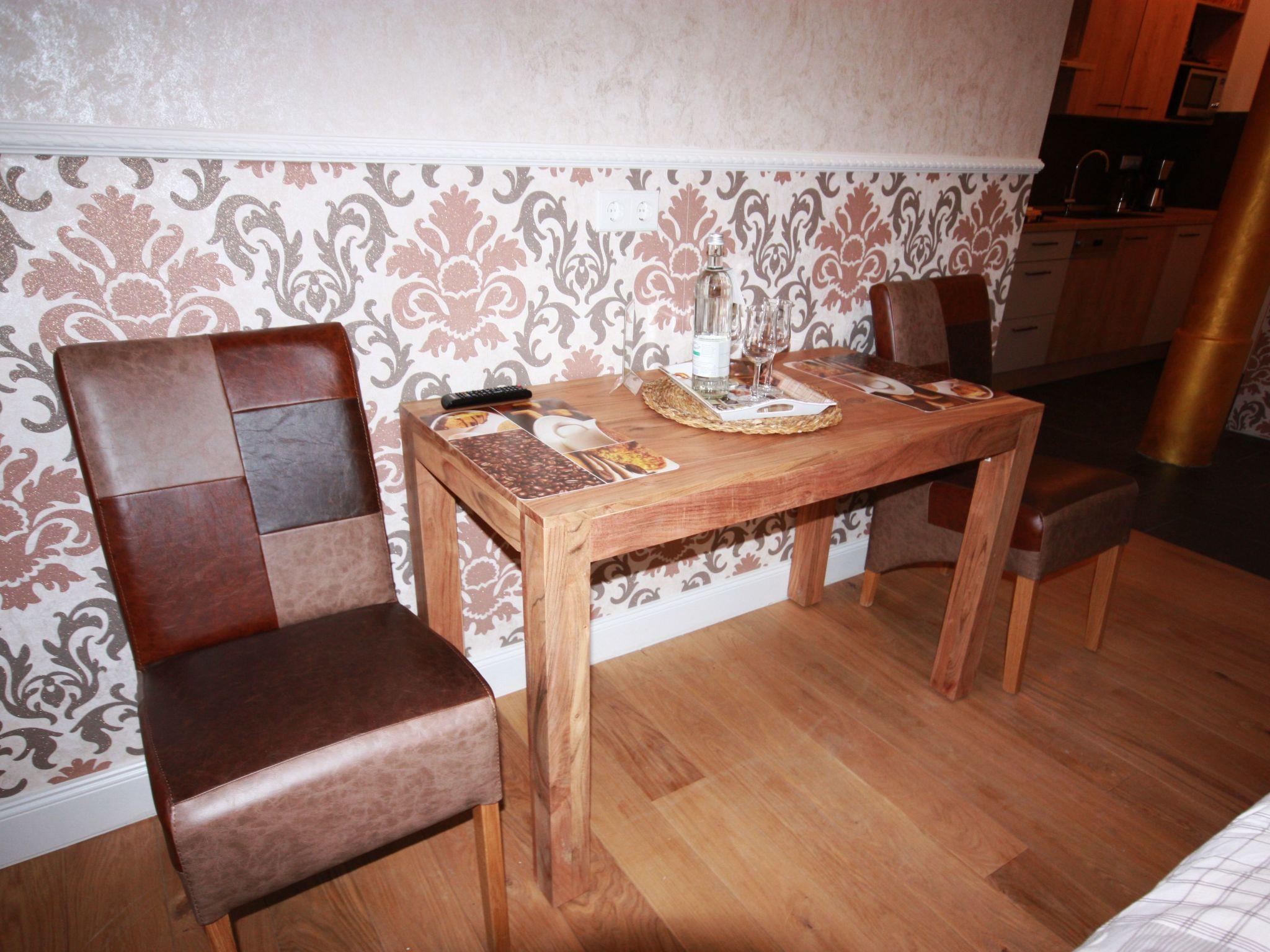 Each studio has a combined living room/bedroom, a pantry kitchen or fully equipped kitchenette and a shower room. The furnishings are of a very high standard, including amenities such as a toaster, coffee machine, Nespresso machine, microwave with grill function and freezer compartment, leaving nothing to be desired. A washing machine and tumble dryer are also available for a fee. We pay particular attention to the fact that a maximum of two people and a small child can enjoy a cosy stay in the studios. If you have any special furnishing requests, we will endeavour to meet them.