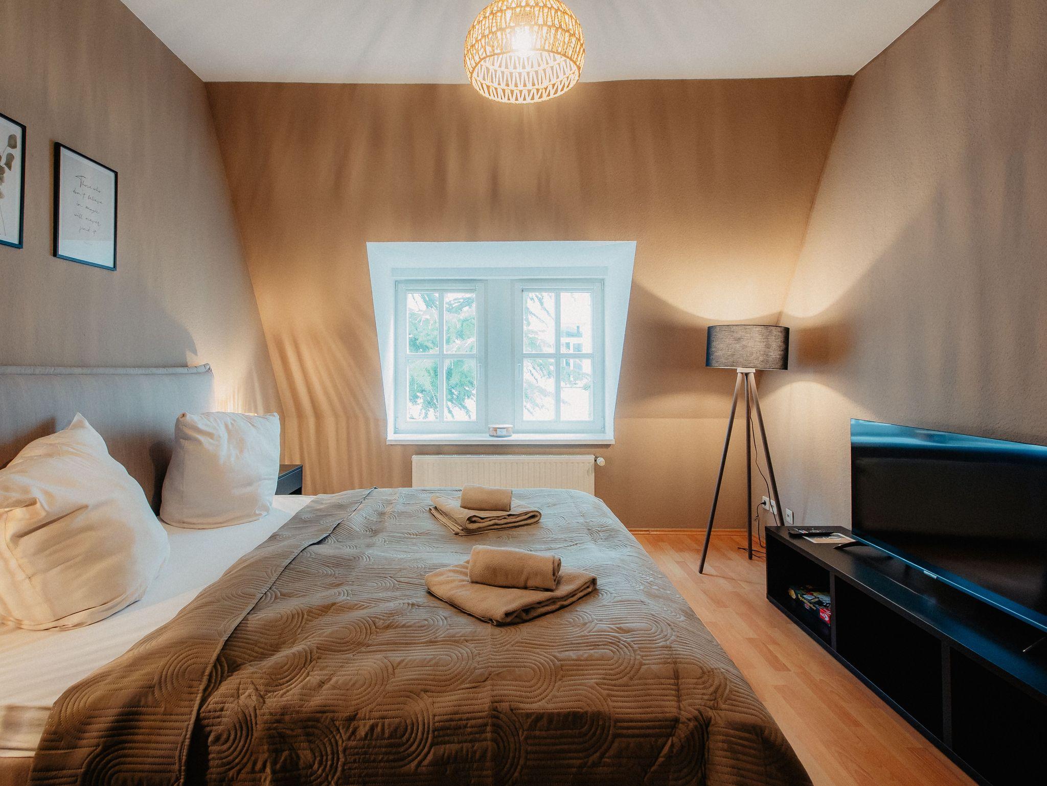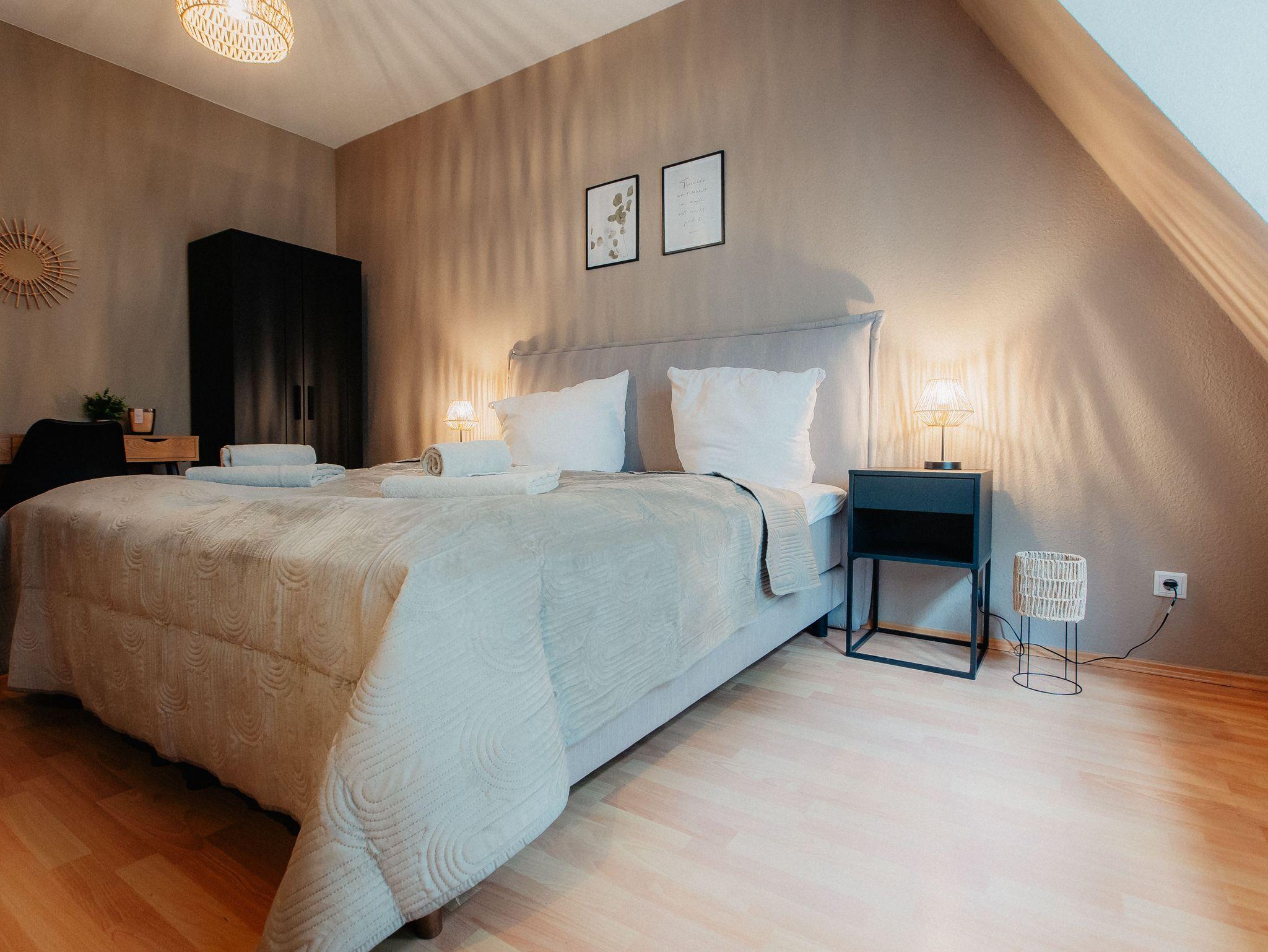 Du findest im Luga Homes - Chauseehaus das richtige Zuhause für Deinen Städtetrip. Die Appartements haben eine moderne Ausstattung sowie ein liebevoller Blick fürs Detail für eine persönliche Note! Was alle Appartements im ruhigen Hinterhaus gemeinsam haben, sind zum einen ausgewählte Boxspringbetten (guter Schlaf ist oh so wichtig!) und eine Ausstattung, die Dein Gepäck erleichtern soll: Für Bettwäsche, Handtücher, Fön, Duschgel, Shampoo und derlei ist also gesorgt. Es warten neu ausgestattete Appartements für ein paar mehr Reisebegleiter mit umfangreicher Küche mit Essplatz und eigenem Bad.