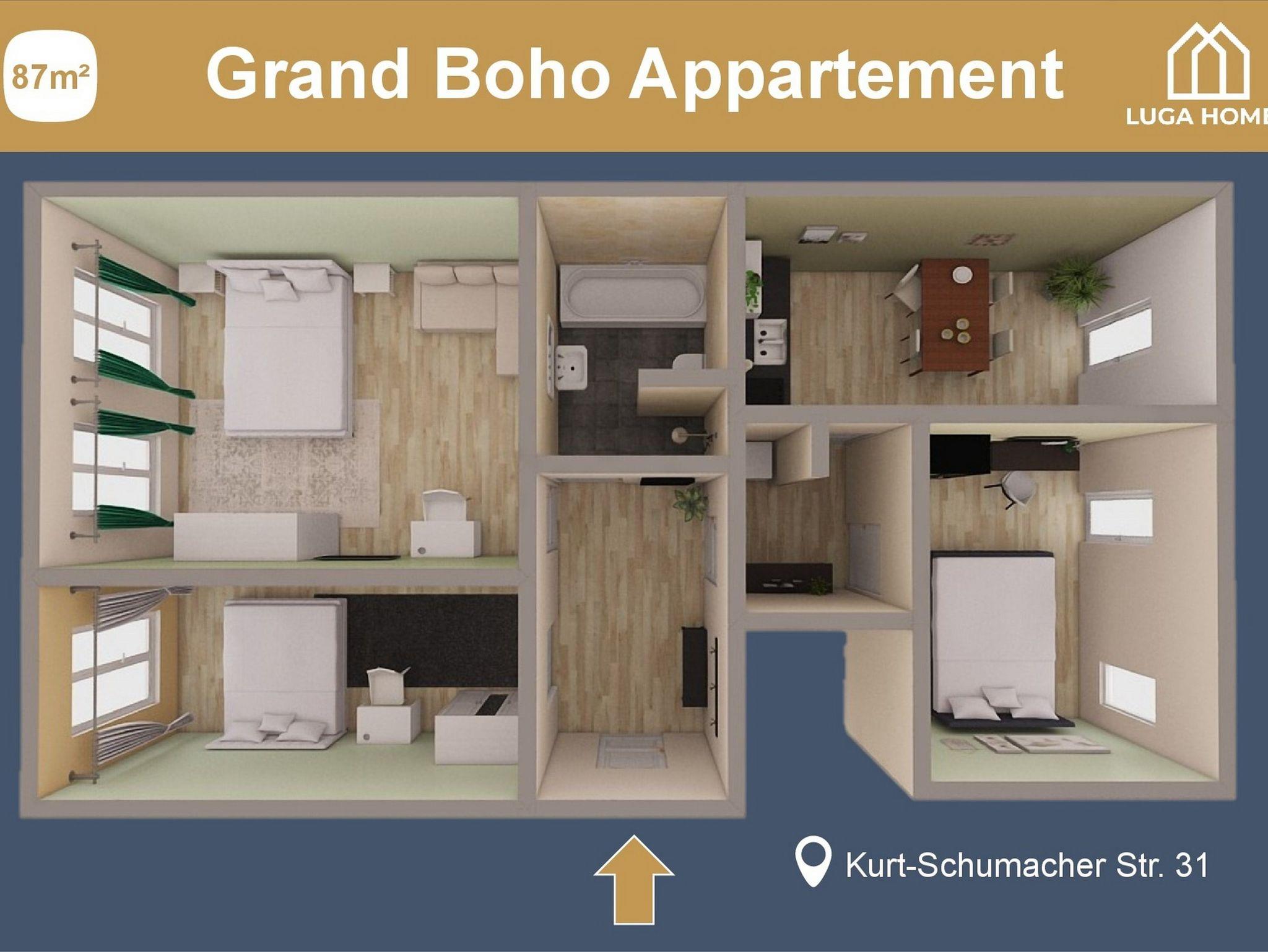 Luga Homes - Stadthaus, *Grand Boho* 4-Zimmer-Appartement mit Wohnküche