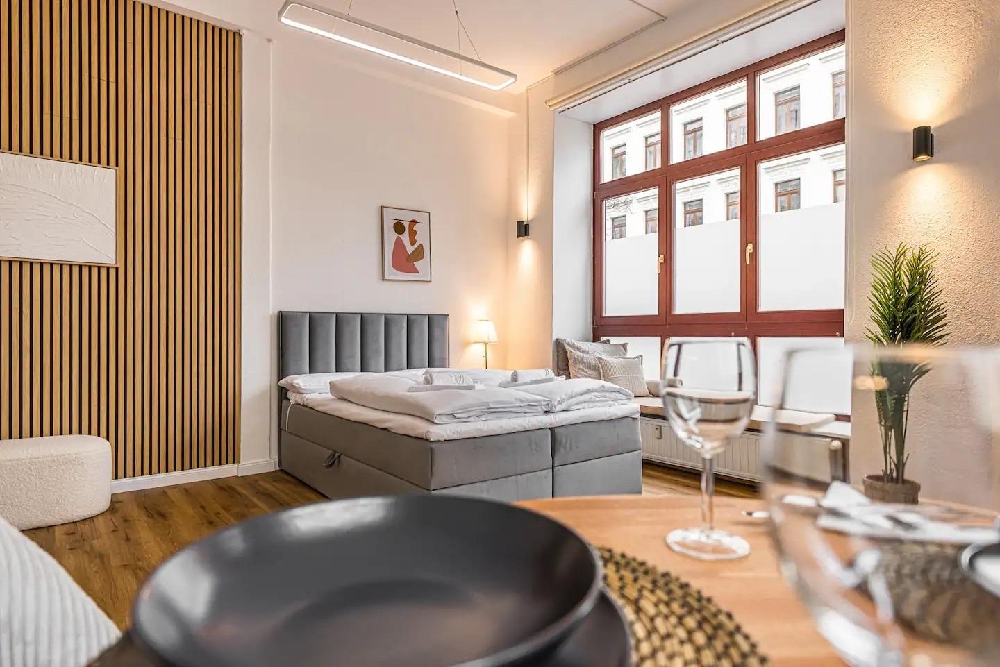 Unsere Wohnung bietet Ihnen alles, was Sie für einen angenehmen Aufenthalt benötigen, vor allem eine Top-Lage: Der Markt - das Herz und die historische Altstadt von Leipzig - ist nur 25 Gehminuten entfernt (15 Minuten mit den öffentlichen Verkehrsmitteln).