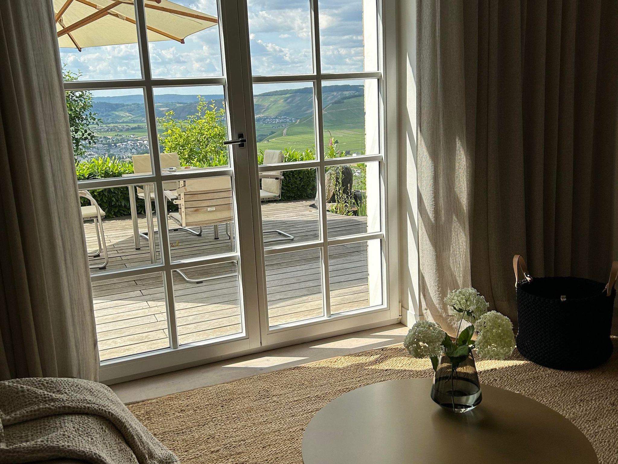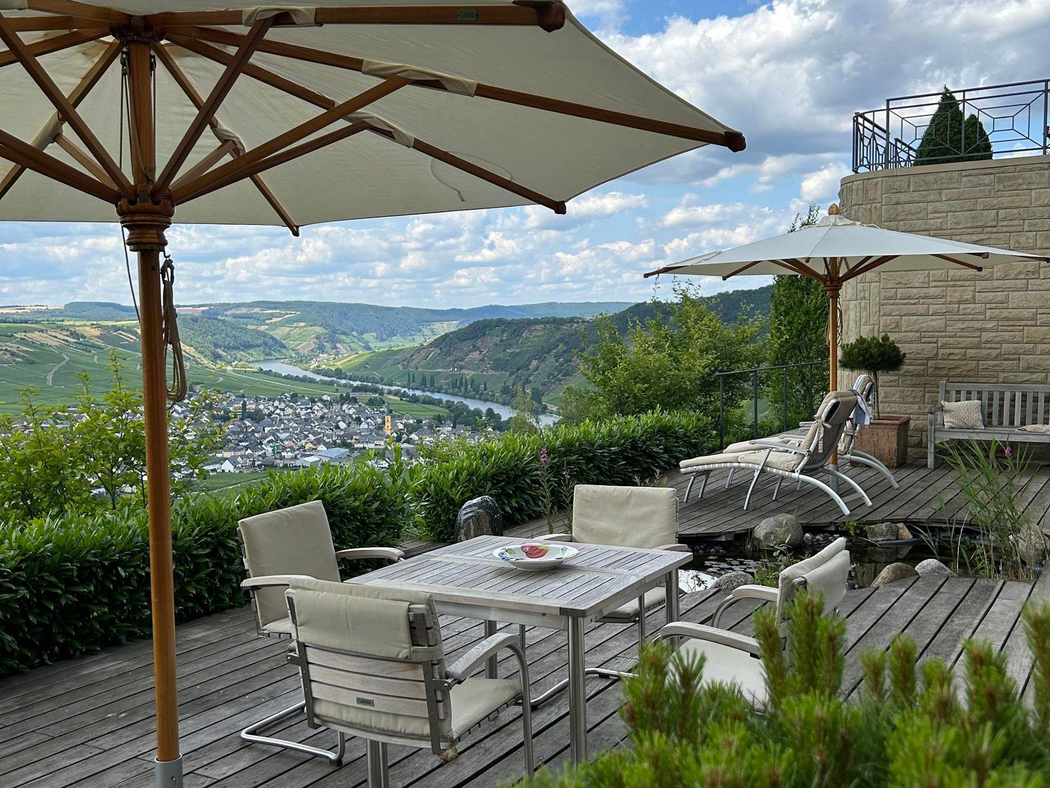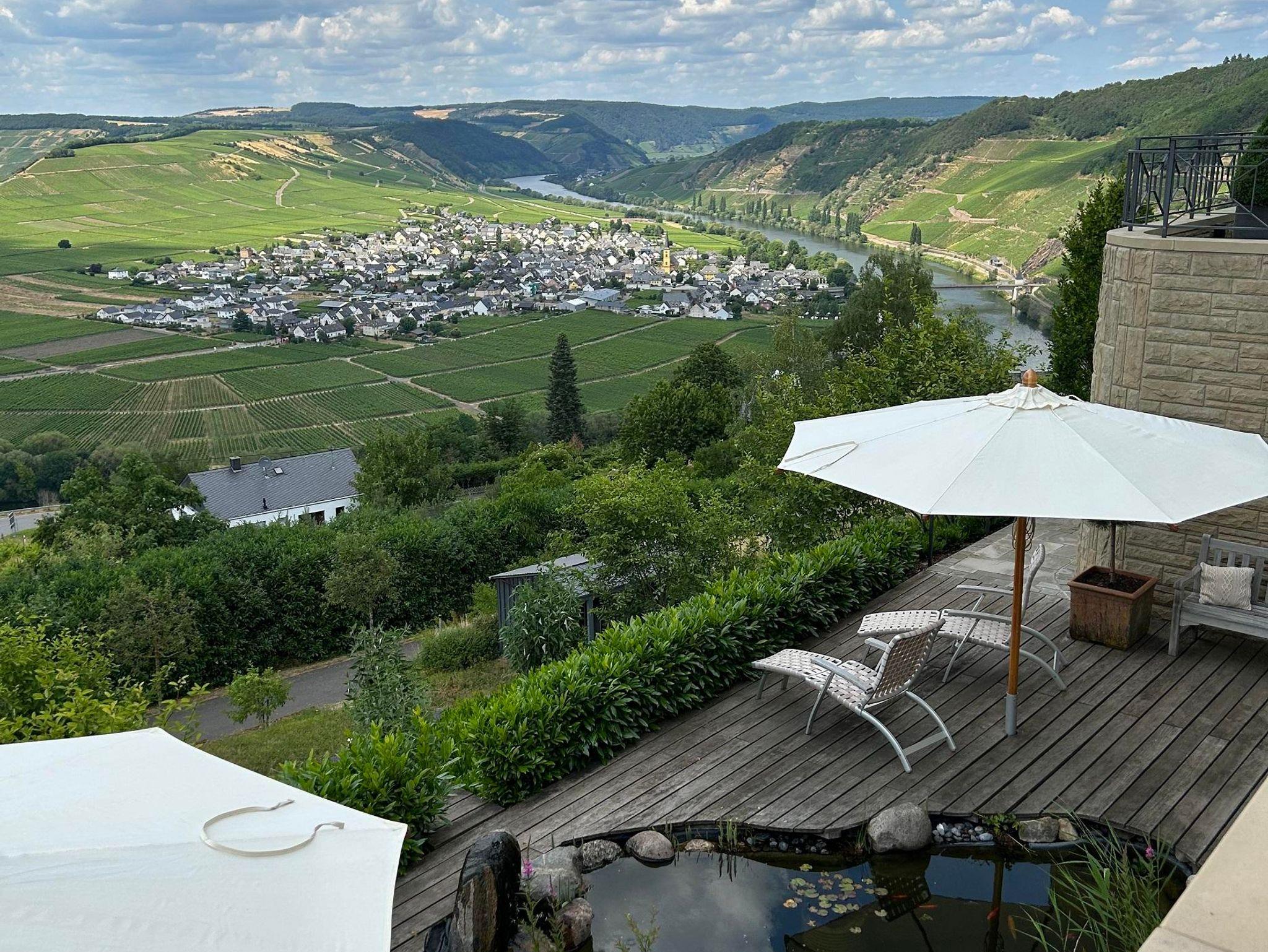 Bei uns wohnen Sie am Waldrand mit einem traumhaften Blick über die Weite des Tals, seinen Steillagen und einer der schönsten Moselschleifen.