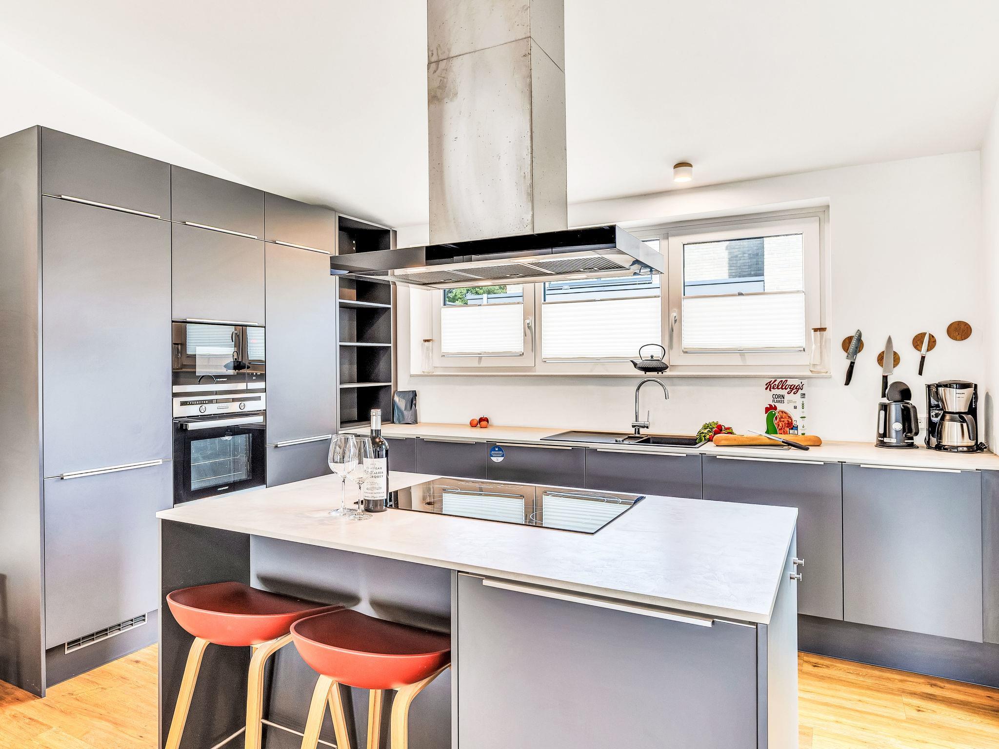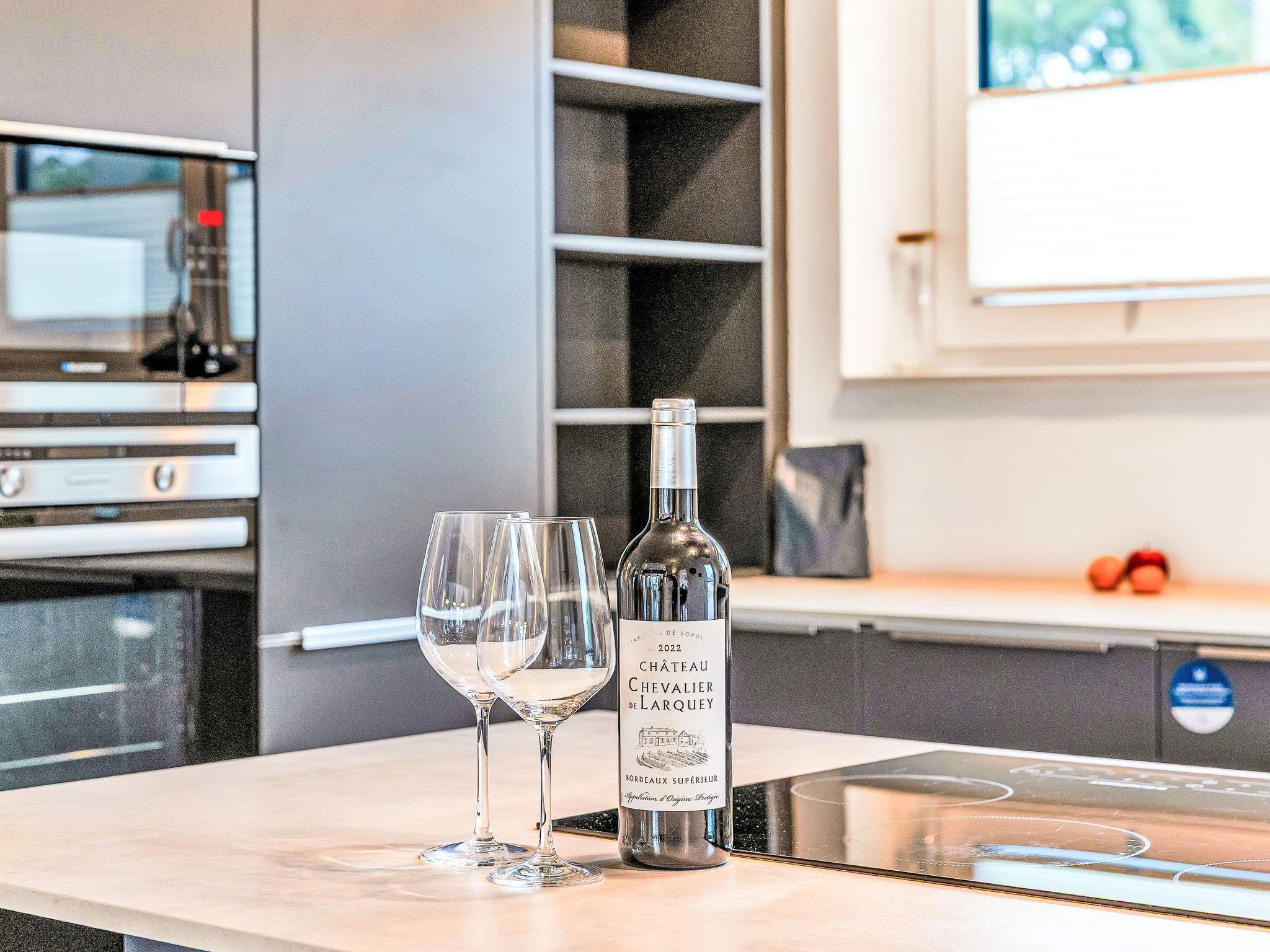 "Horizont Lodge", 6-room house 192 m2 on 2 levels. Tasteful and cosy furnishings: living/dining room with satellite TV (flat screen). Exit to the terrace. 1 room with 1 double bed (2 x 90 cm, length 200 cm). Open kitchen (oven, dishwasher, 4 ceramic glass hob hotplates, toaster, kettle, microwave, electric coffee machine). Bath/shower/WC. Upper floor: 4 rooms, each room with 1 double bed (2 x 90 cm, length 200 cm). 2 Baths/showers/WC. Terrace. Terrace furniture, electric barbecue. Facilities: washing machine, dryer, sauna, children's high chair (extra), hair dryer. Internet (WiFi, free). Please note: non-smoking house. 1 small pet/ dog allowed. Smoke alarm. Private indoor pool on the ground floor.