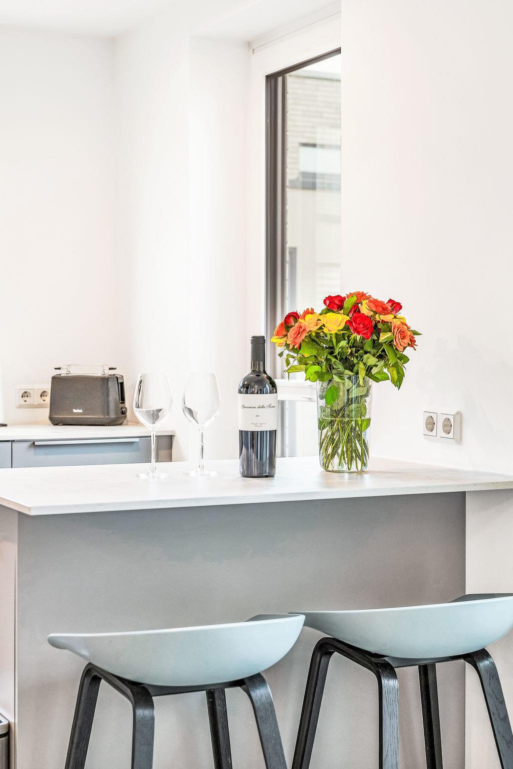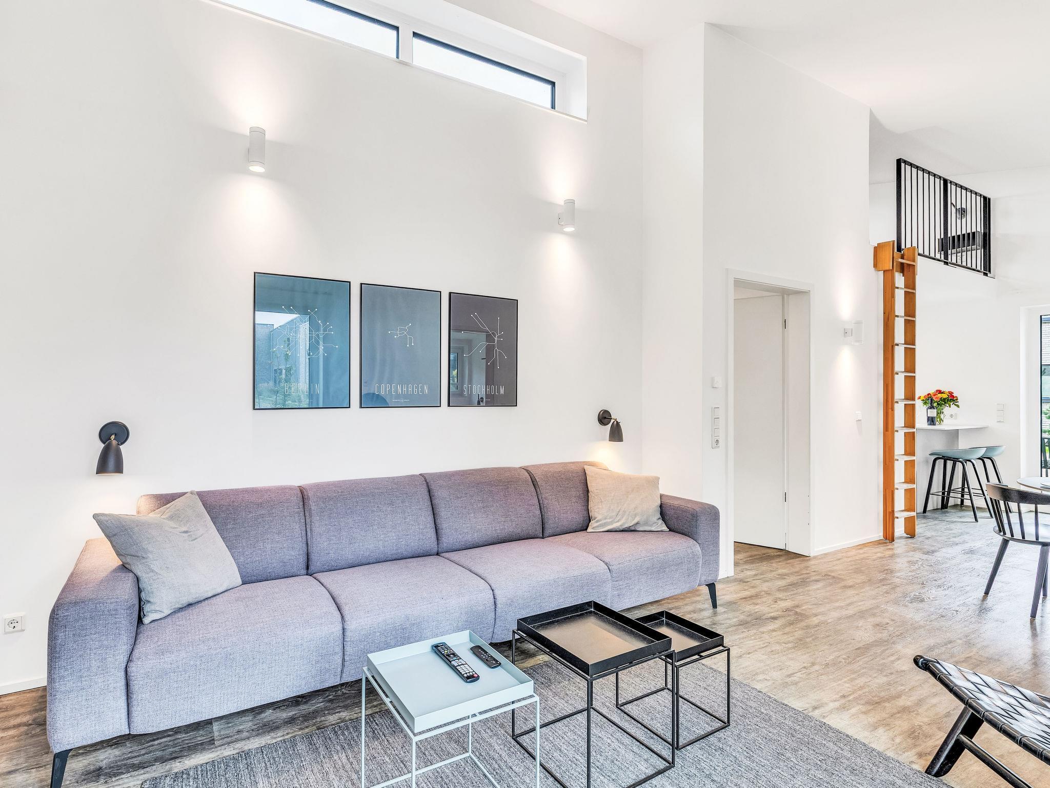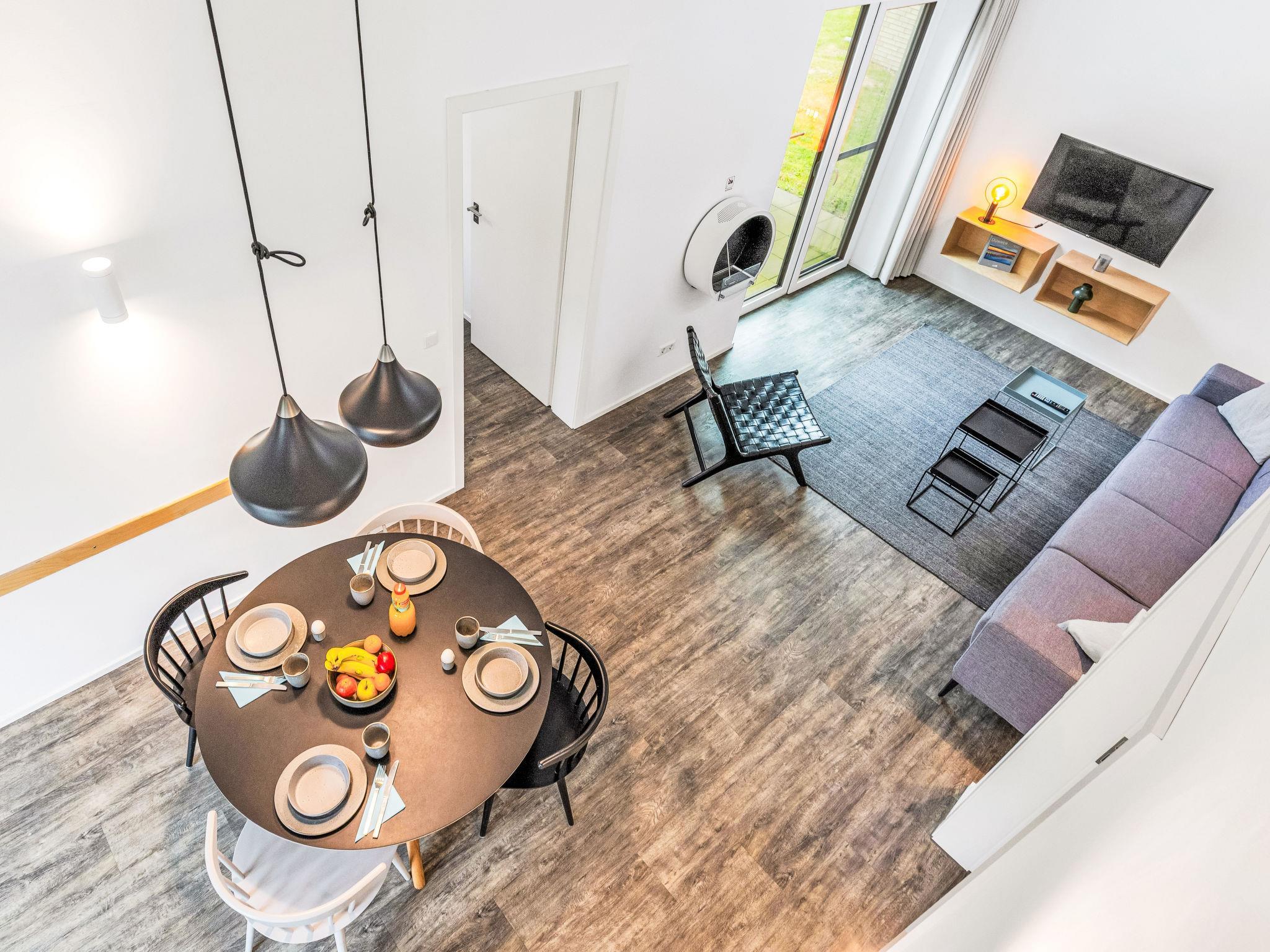 "Goldfisch", 3-room house 85 m2 on 2 levels. Tasteful and cosy furnishings: living/dining room with satellite TV (flat screen). Exit to the terrace. 2 rooms, each room with 1 double bed (2 x 90 cm, length 200 cm). Open kitchen (oven, dishwasher, 4 ceramic glass hob hotplates, toaster, kettle, microwave, electric coffee machine). Bath/WC, shower/WC. Upper floor: (ladder) open gallery with sloping ceilings with 2 sleeping facilities. Terrace. Terrace furniture, electric barbecue. Facilities: washing machine, dryer, sauna, children's high chair (extra), hair dryer. Internet (WiFi, free). Please note: non-smoking house. 1 small pet/ dog allowed. Smoke alarm.