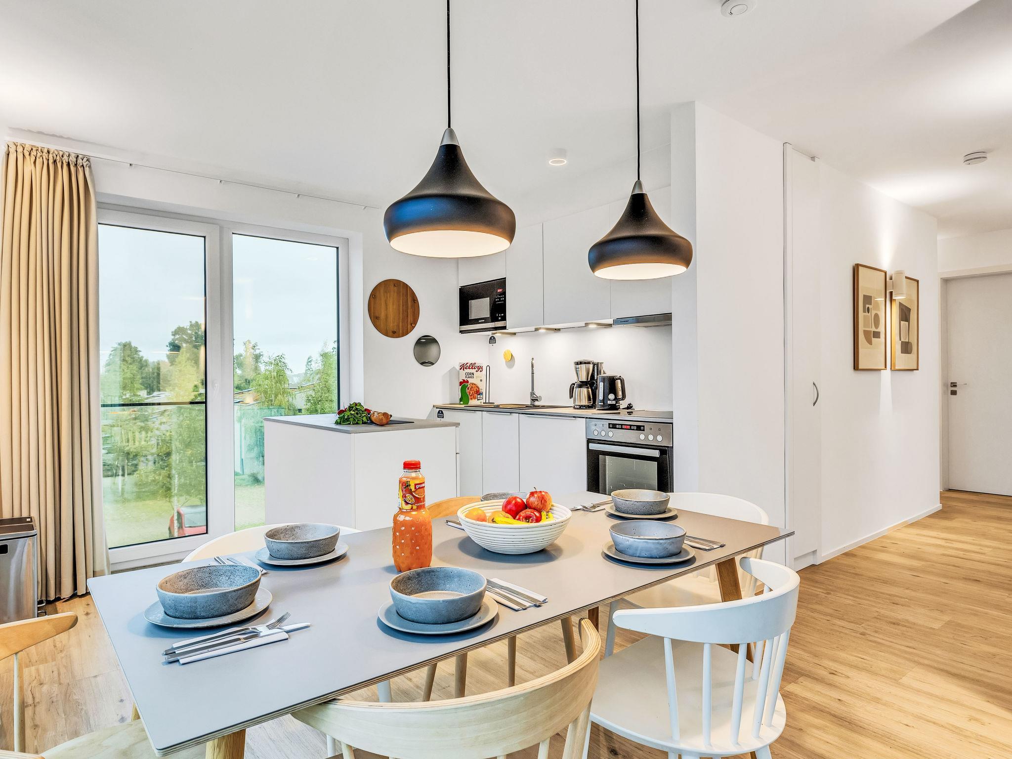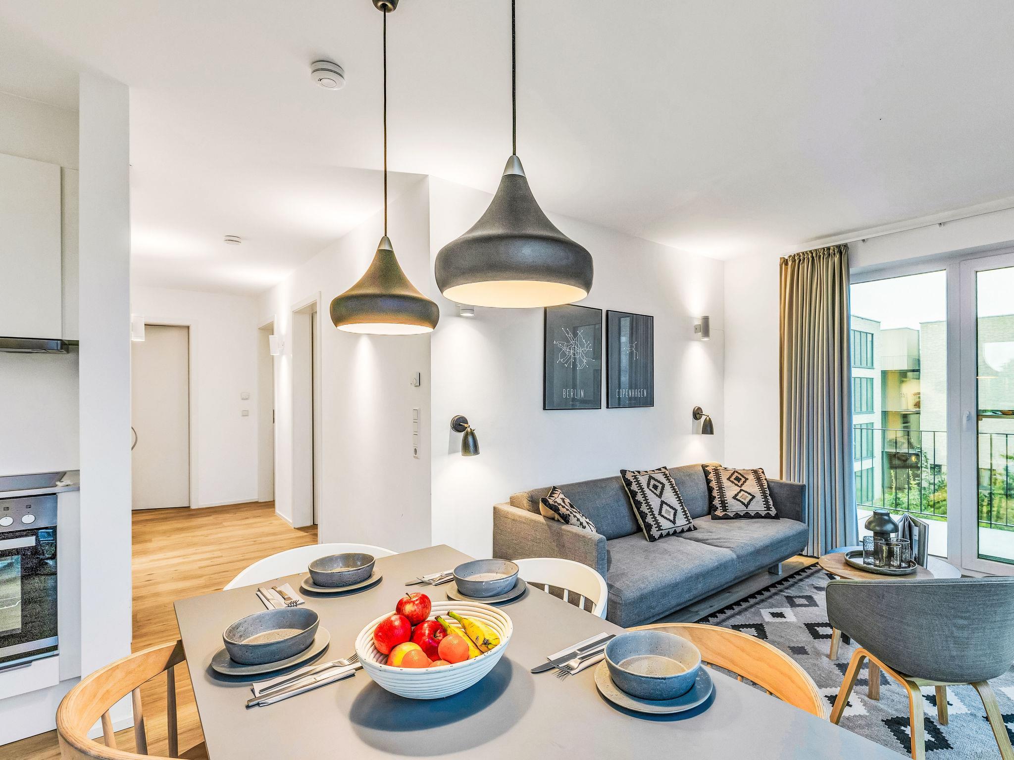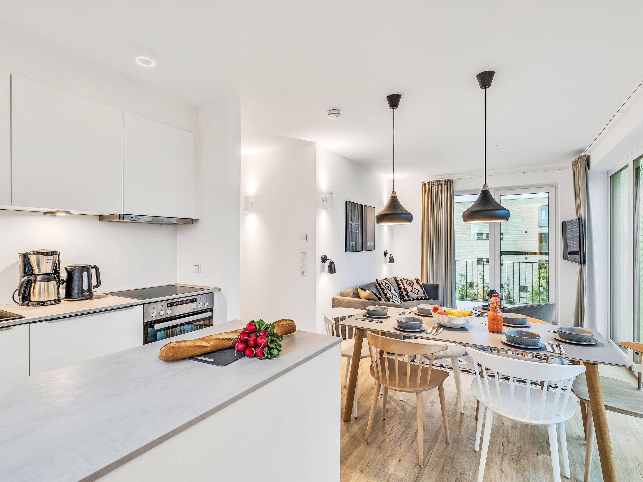 "Fiddy", 4-room apartment 80 m2 on 3rd floor. Tasteful and cosy furnishings: living/dining room with 1 double sofabed and satellite TV (flat screen). Exit to the balcony. 2 rooms, each room with 1 double bed (180 cm, length 200 cm). Kitchenette (oven, dishwasher, 4 ceramic glass hob hotplates, toaster, kettle, microwave, electric coffee machine). Bath/WC, shower/WC. Balcony. Balcony furniture, barbecue. Facilities: washing machine, dryer. Internet (WiFi, free). Parking at the house. Please note: non-smokers only. Smoke alarm.