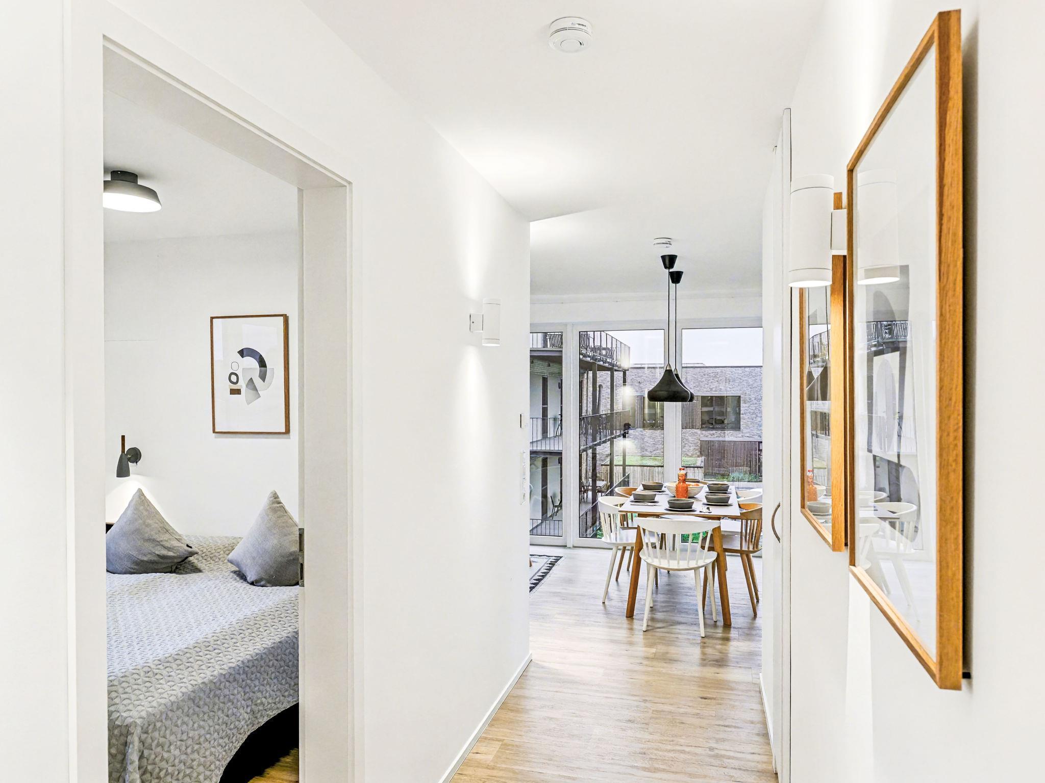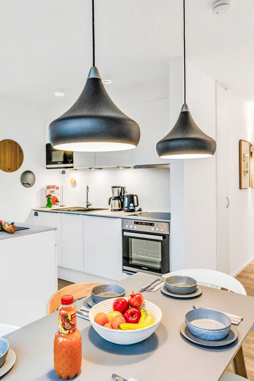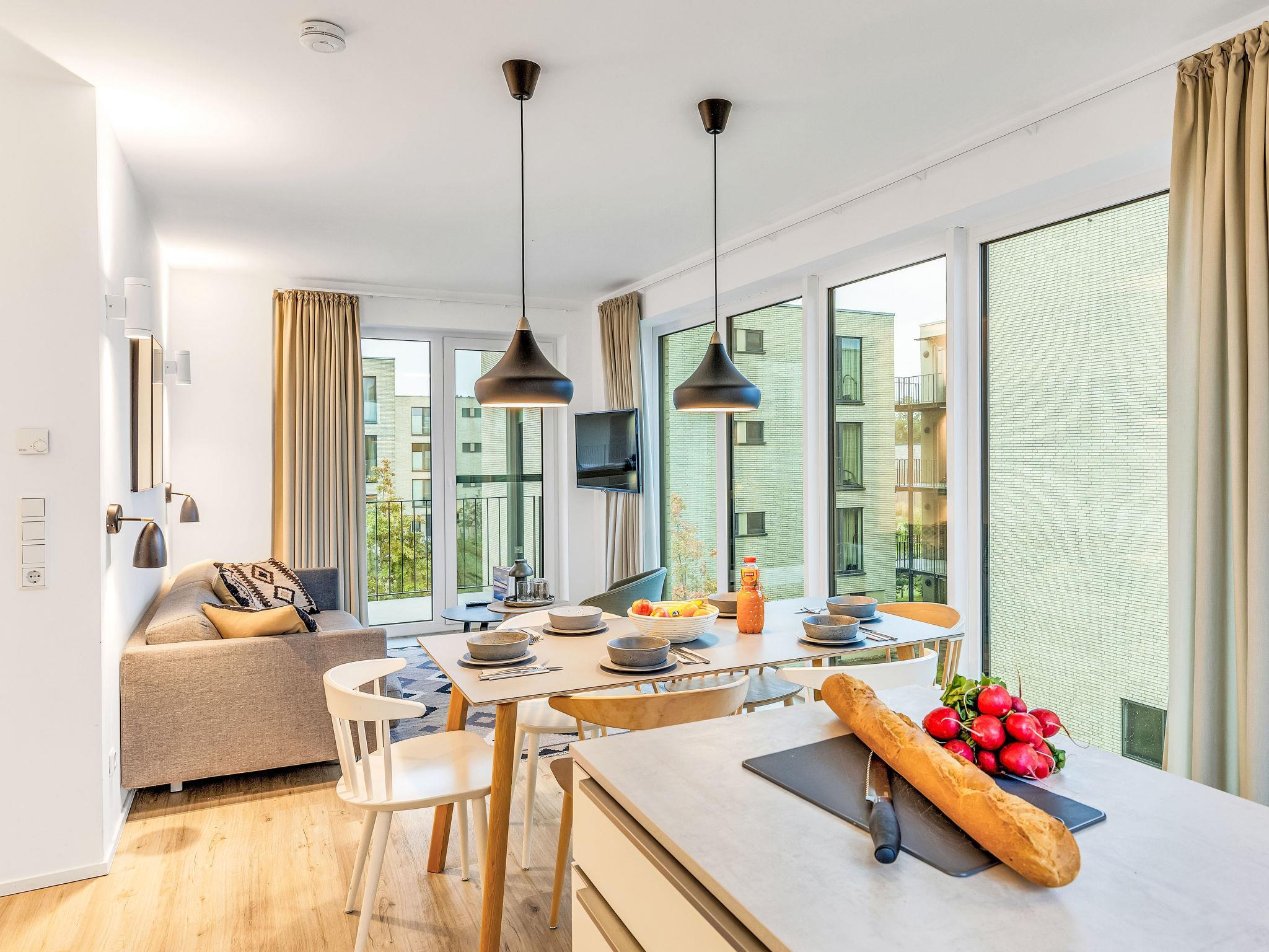 "Fiddy", 4-room apartment 80 m2 on 3rd floor. Tasteful and cosy furnishings: living/dining room with 1 double sofabed and satellite TV (flat screen). Exit to the balcony. 2 rooms, each room with 1 double bed (180 cm, length 200 cm). Kitchenette (oven, dishwasher, 4 ceramic glass hob hotplates, toaster, kettle, microwave, electric coffee machine). Bath/WC, shower/WC. Balcony. Balcony furniture, barbecue. Facilities: washing machine, dryer. Internet (WiFi, free). Parking at the house. Please note: non-smokers only. Smoke alarm.