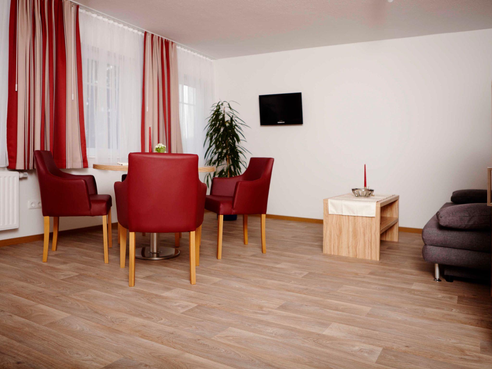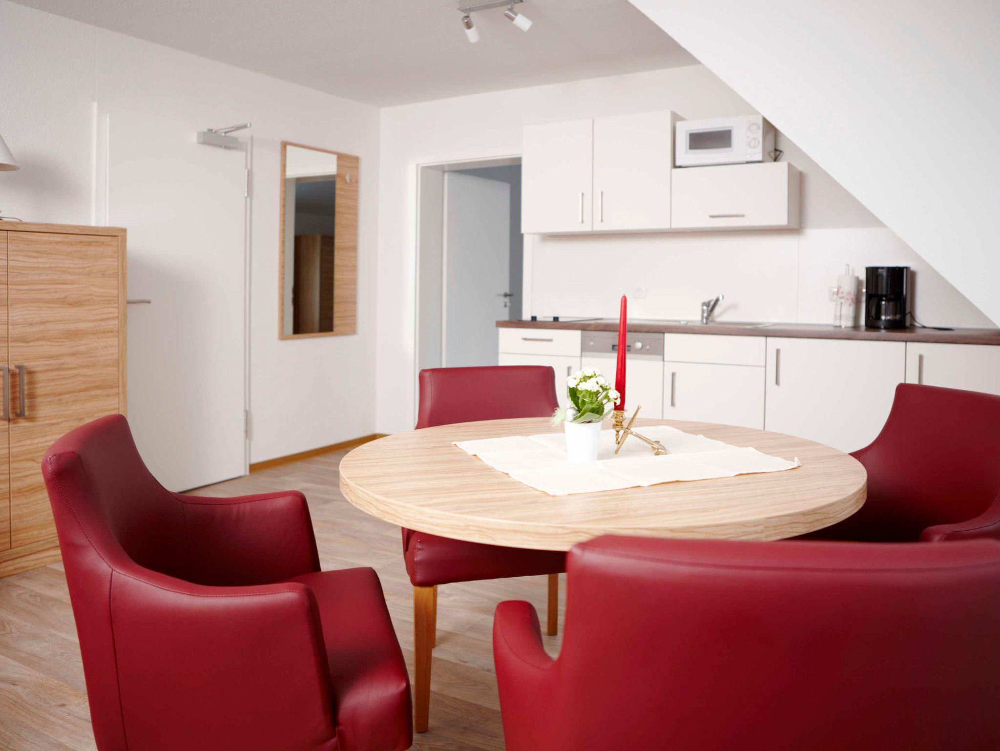 Lassen Sie den Anker fallen und entspannen Sie in unserem modernen Zwei-Raum-Appartement im 1. Obergeschoss zur Nordseite. Es bietet Platz für zwei bis vier Personen (Kinderbett möglich).