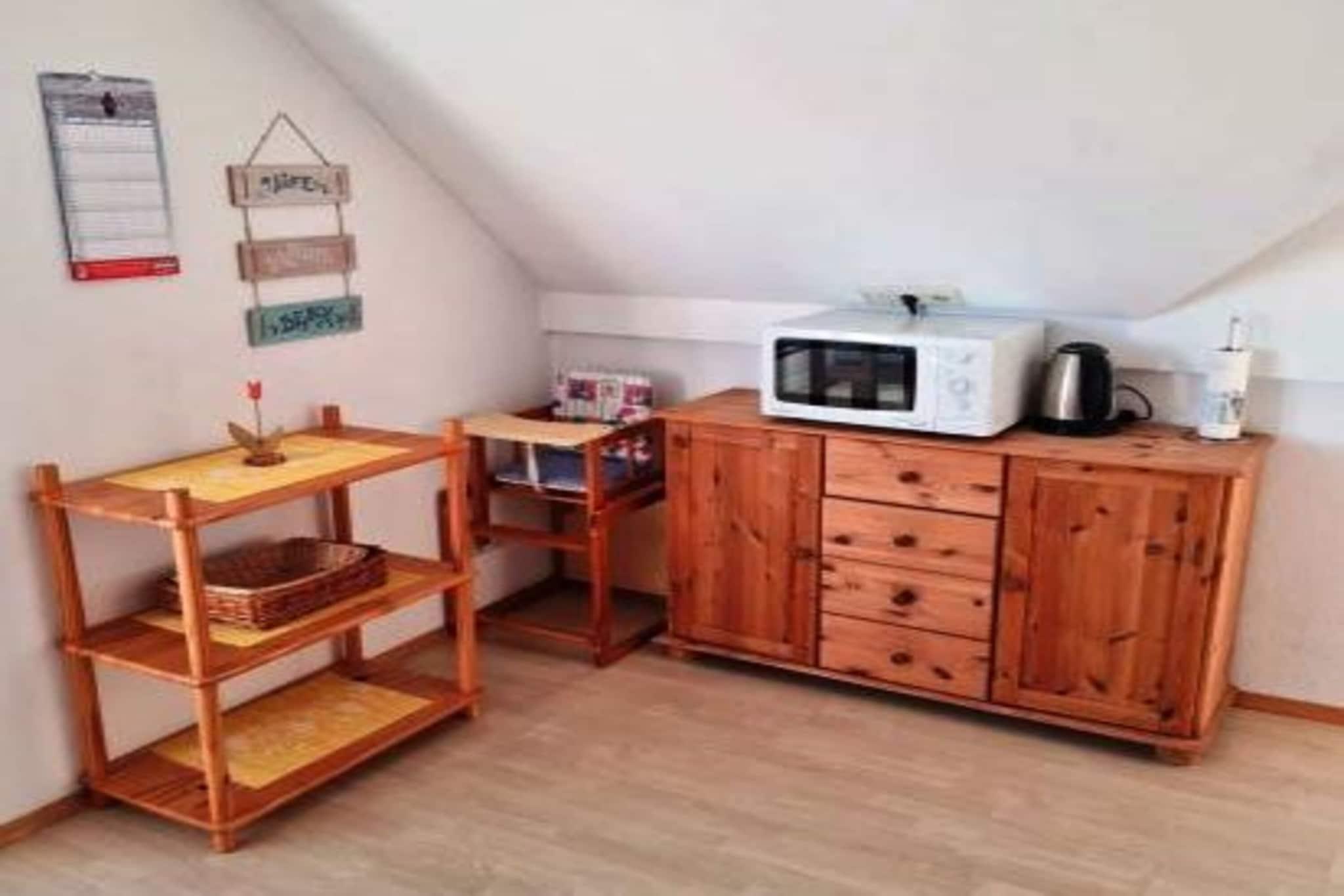 Denne koselige ferieleiligheten i 1. etasje er vennlig og lyst innredet. En liten kjøkkenkrok med mange forskjellige kjøkkenapparater som vaffeljern, mikrobølgeovn med bakefunksjon og til og med en oppvaskmaskin lar ingenting å være ønsket. Her finner du også en koselig balkong med hagemøbler, som inviterer til hyggelige timer på sommerkveldene med utsikt over grøntområdet. Leiligheten har blitt innredet med en nautisk tanke og kjærlig hengivenhet og virkelig fine retro-innslag. Leiligheten ligger i umiddelbar nærhet (ca. 150 m) til vannet og dike. Havneområdet, som ligger bare 300 m unna, byr på mange utsikter, inkludert noen imponerende seilskuter. Dykene er flotte for å sykle eller gå til nærmeste fyr. Den historiske møllen, som kan beskues i åpningstiden, ligger også bare noen få minutters gange unna. Vannet i Lemkenhafen har en grunn inngang. Dette gjør den perfekt for kiting, surfing eller stand-up padling og med en fantastisk utsikt over Fehmarnsundbroen. De som liker å spise fiskeretter bør definitivt besøke Aalkate eller Samoa. Her vil du oppleve en uforglemmelig smaksopplevelse. Å ha egen parkeringsplass foran huset sparer mye tid når du leter etter parkeringsplass. Leiligheten ligger rolig utenfor hovedveien. Høydepunkter inkludert: Alle bruksbaserte energikostnader, parkeringsplass Tilbring ferien på den tredje største øya i Tyskland, mellom Kielbuktene og Mecklenburg i Østersjøen. Havnen i Orth ligger sørvest på øya. Fehmarns 20 strender er mer enn 78 km lange - ideelle for å slappe av i en av de mest solrike regionene i Tyskland. Du kan nå øya fra fastlandet via Fehmarn Sound Bridge. Den varierte kystlinjen tilbyr virkelig noe for enhver smak: sanddyner og innsjøer i nord, bratte og klippekyster i øst, sandstrender i sør og fantastiske solnedganger i vest. I innlandet finner du sjarmerende landskap og naturreservater som må utforskes.