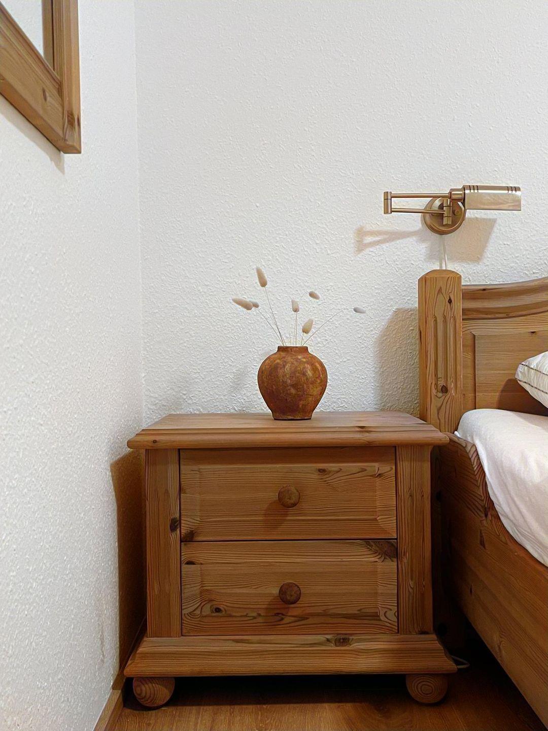 Das Schlafzimmer mit Doppelbett und großem Kleiderschrank bietet ebenfalls Platz für ein Kinderreisebett.