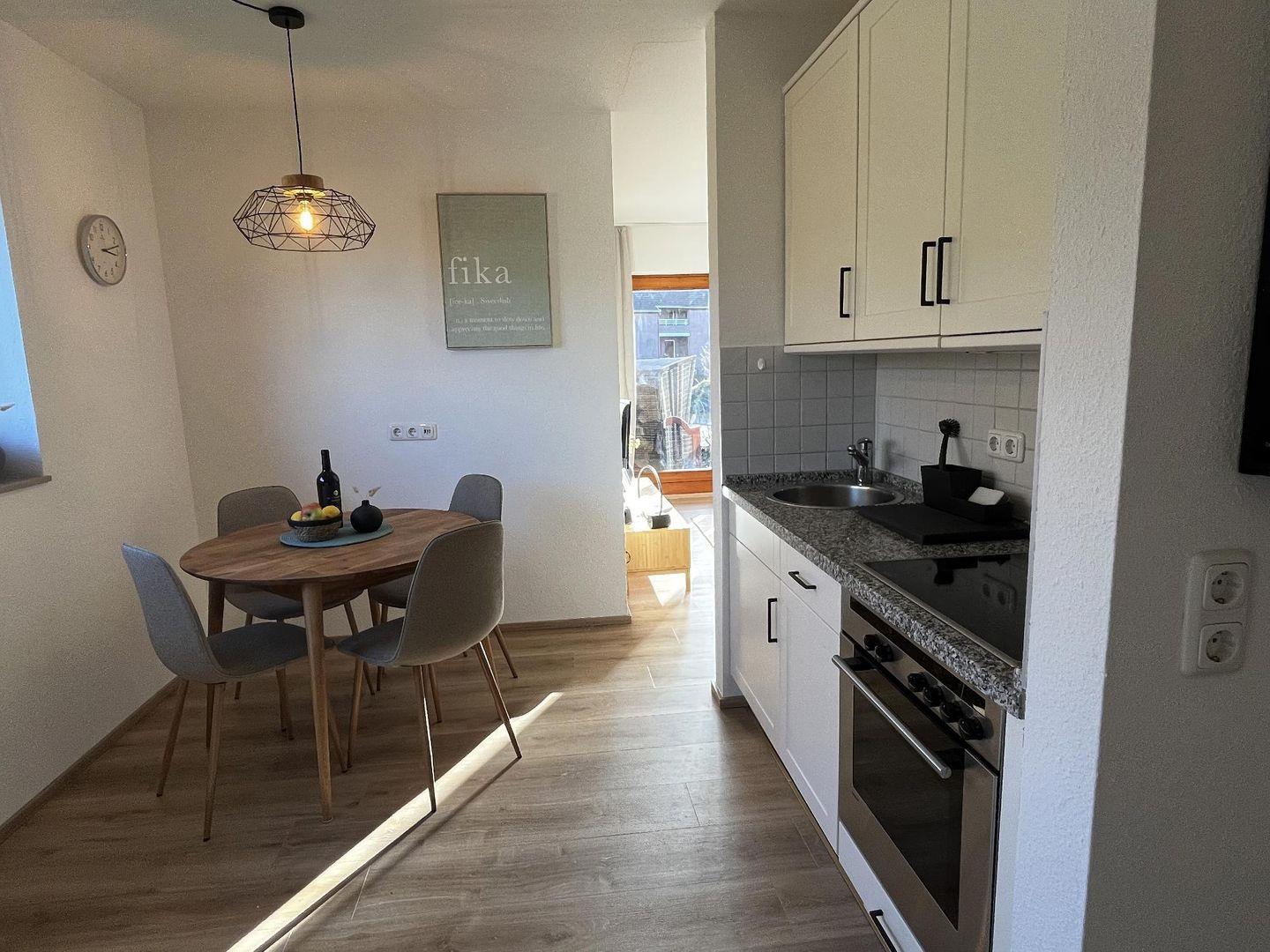 Die moderne Einbauküche mit Backofen und Ceranfeld, Kühlschrank, Geschirrspüler, Kaffeemaschine, Heißwasserkocher, Kücheninventar sowie einem gemütlichen Essplatz lädt nicht nur zum gemütlichen Frühstück ein.