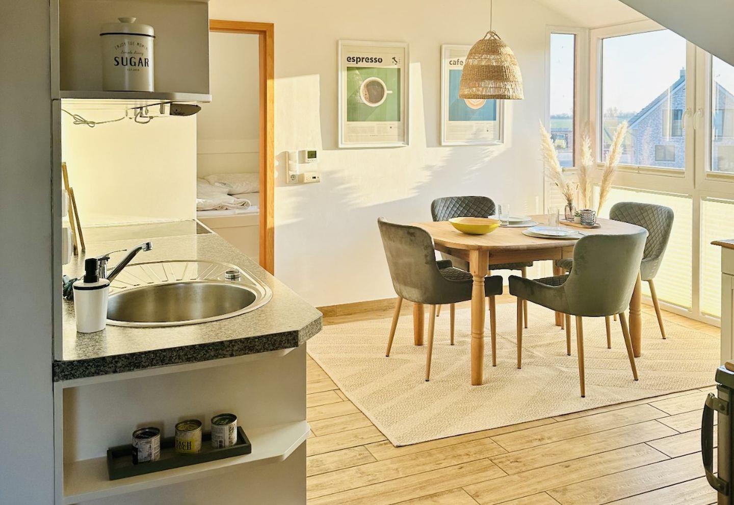 Die Wohnung ist perfekt geeignet für Singles, Kiter oder Pärchen mit einem Hund sowie für Homeoffice.