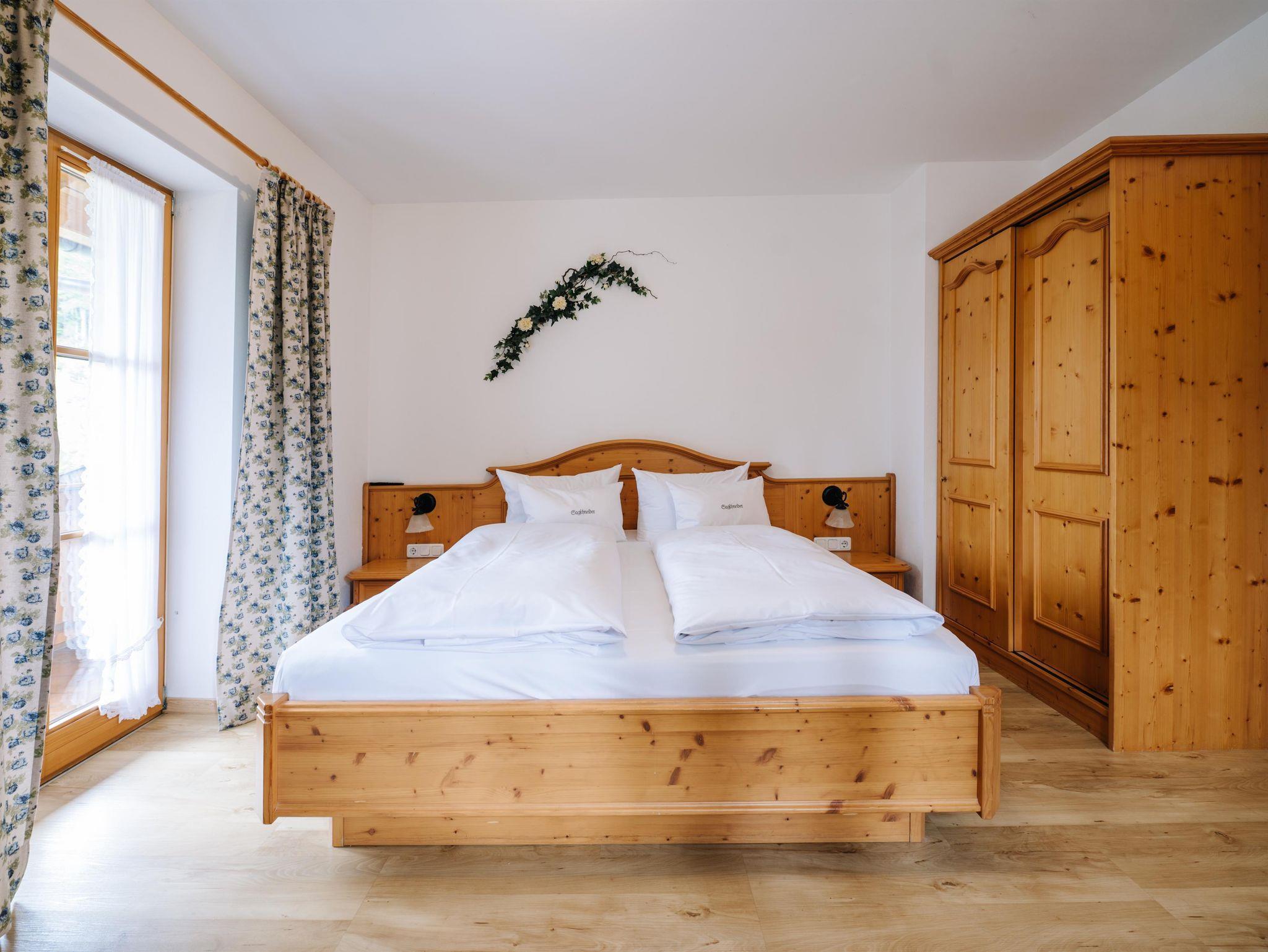 4-Sterne Fewo im bäuerlichem Landhausstil eingerichtet. Die Wohnung verfügt über eine Wohnküche mit gemütlicher Sitzecke, ein Schlafzimmer für zwei Personen und ein Bad mit Dusche/WC. Die Fewo ist ausgestattet mit Balkon, Sat-TV, Radio, Spülmaschine, E-Herd mit Backofen und einen Kühlschrank mit Gefrierfach.