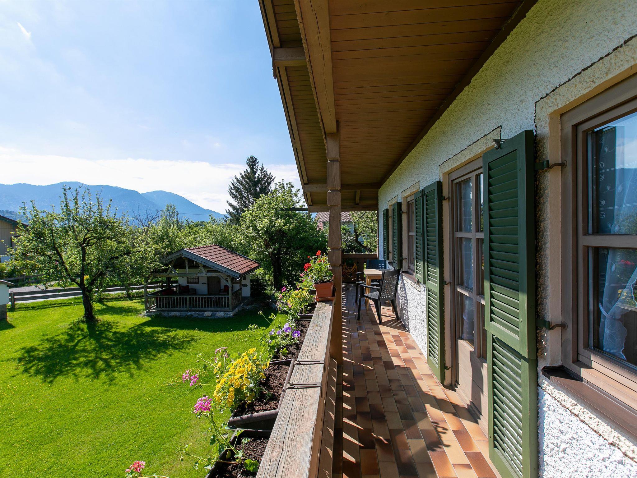 Der Balkon erstreckt sich über die gesamte Vorderseite und einem Teil der Südseite unseres Hauses.