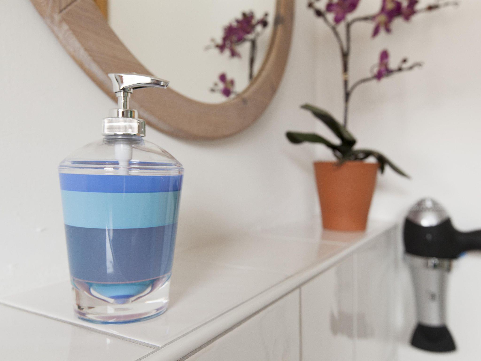 1 Badezimmer mit Dusche und WC, Föhn