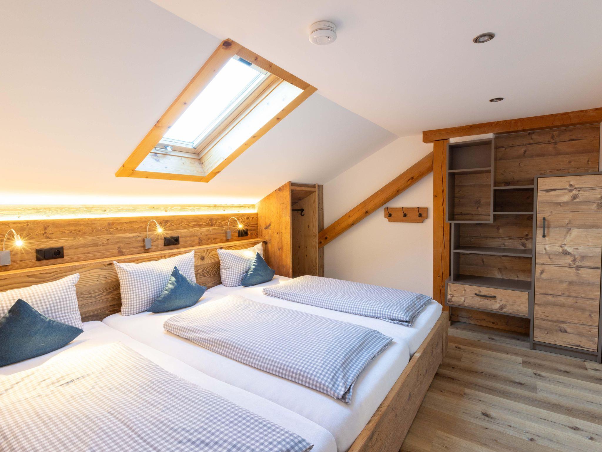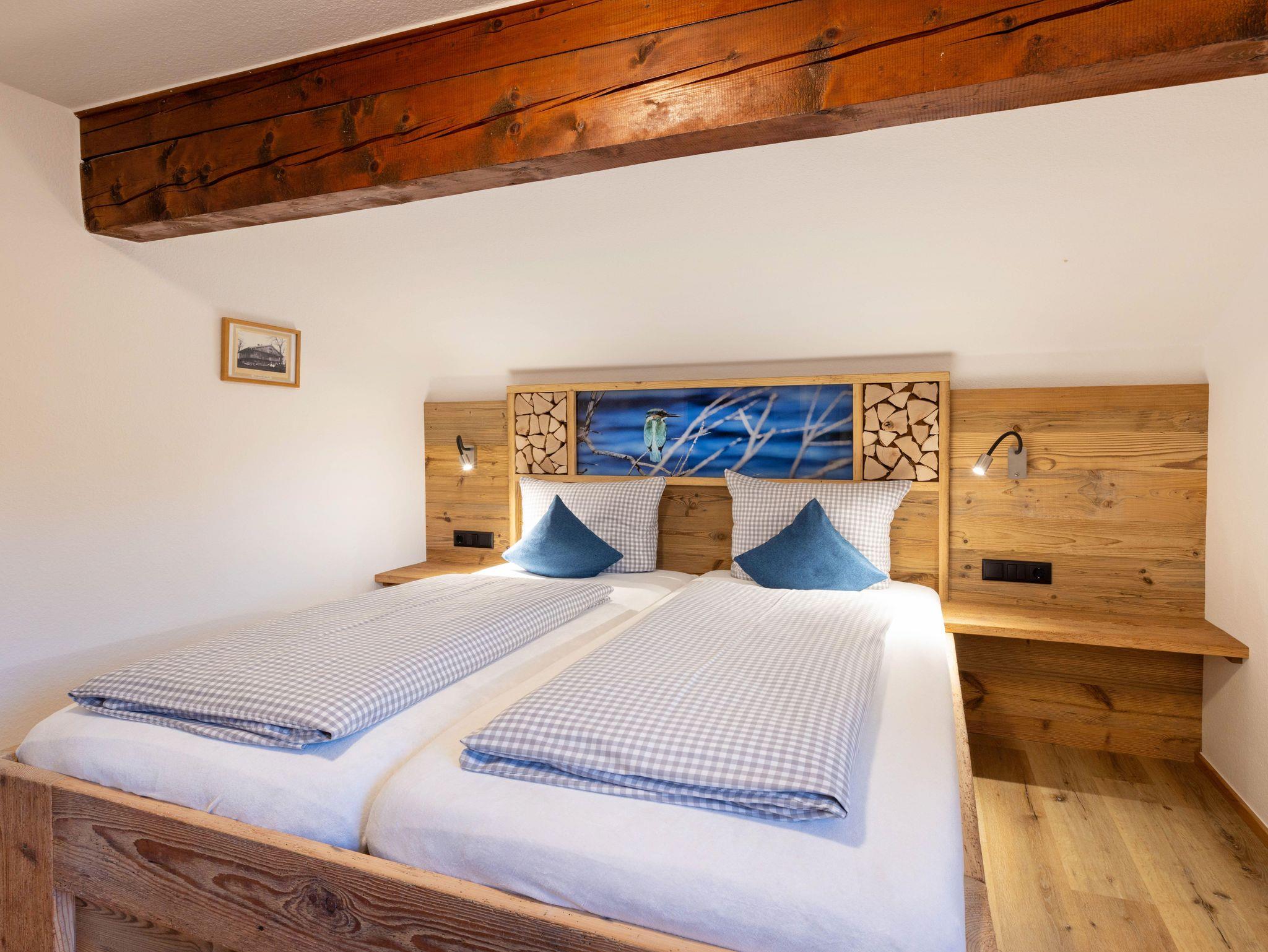 Mit ca. 70 qm Wohnfläche umfasst sie zwei getrennte Schlafzimmer, Wohnzimmer mit Couch und Essecke, Küche mit Spülmaschine, Flur, große Dusche/WC und Balkon über die Vorderseite unseres Bauernhofes mit herrlichem Ausblick auf Lenggries.