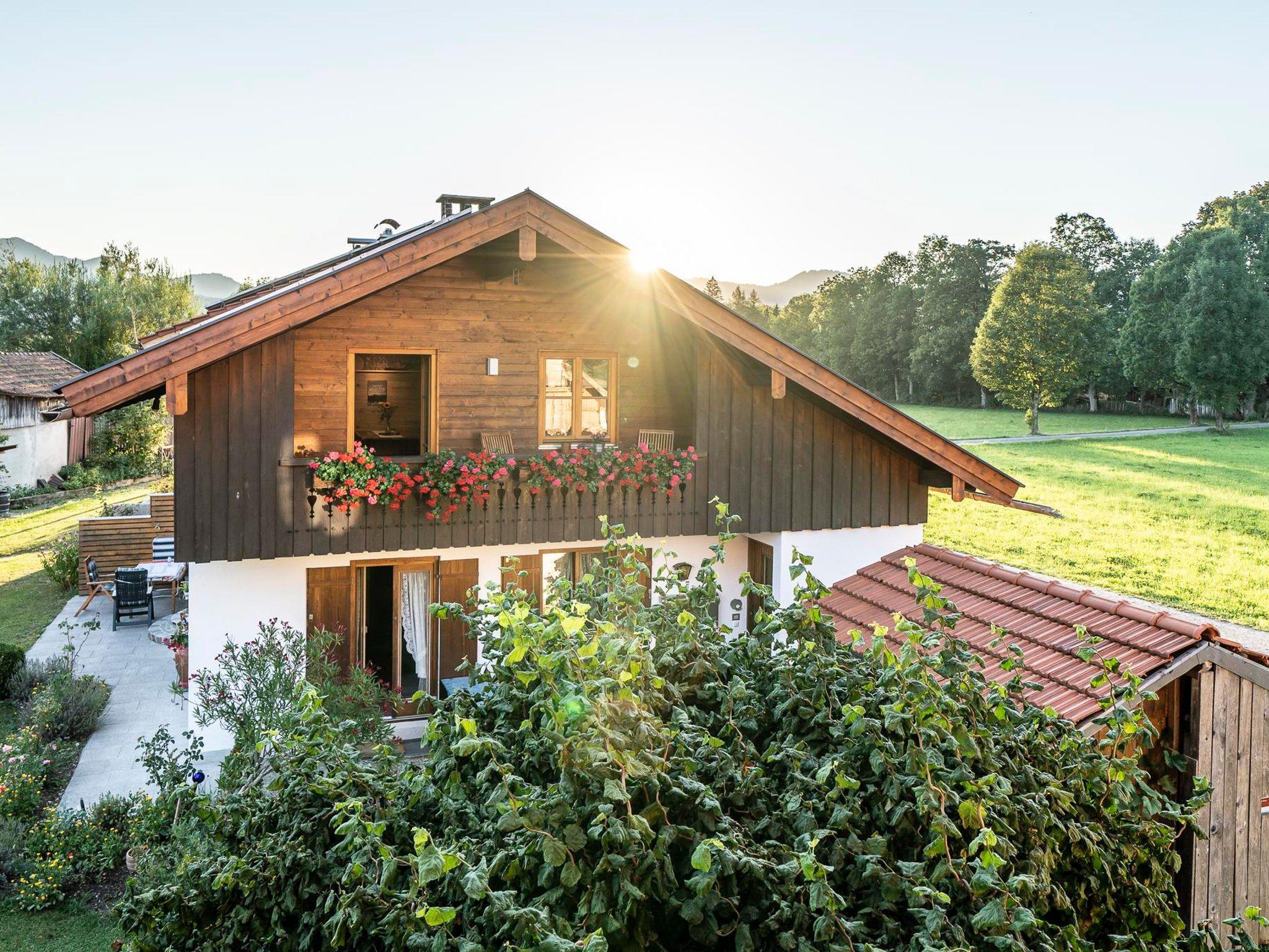 Die neu ausgestatteten Landhaus Chalet Lenggrieser Acker liegen auf 680 m, umgeben von grünen Wiesen im Norden von Lenggries, mit Blick auf Brauneck und das Isartal. Wir sind 100 m vom Steinbach sowie vom Lenggrieser Acker entfernt.