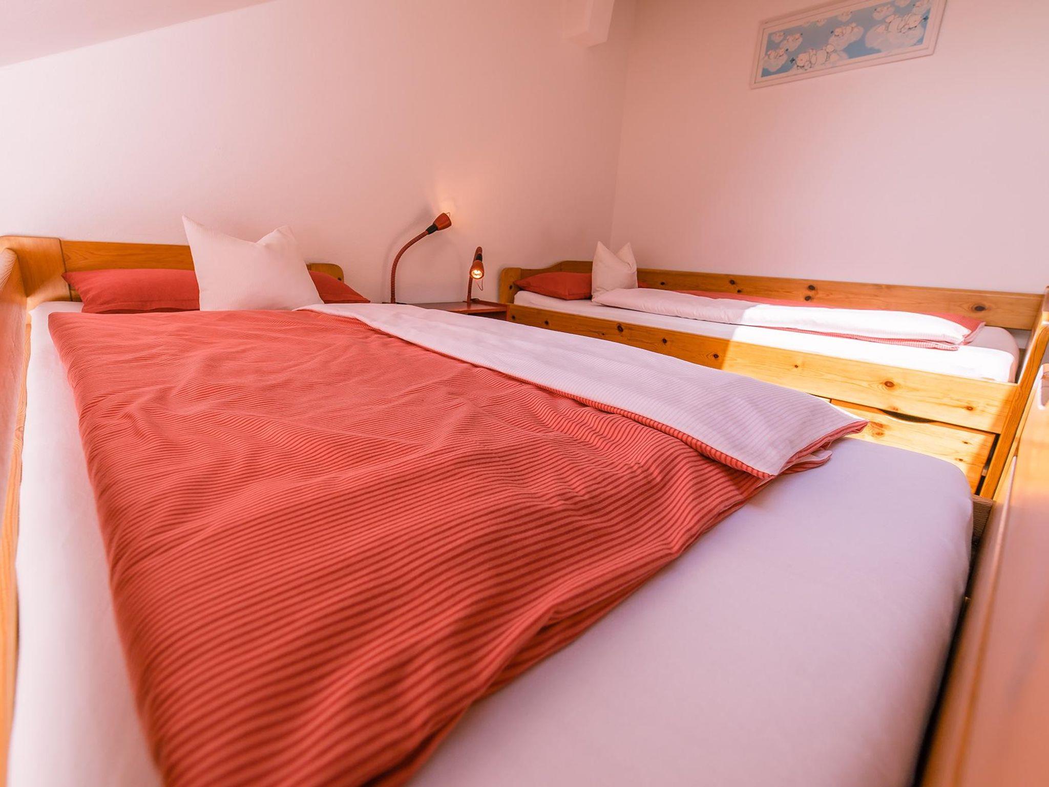 Sonnige Maisonette-NR-Einzelwohnung für 6 Personen,2 zustell Betten auf Anfrage, ca. 115 qm, Erstbezug Februar 2005: große, kompl. ausgestattete Wohnküche (Kühlschrank mit Gefrierschrank, Geschirrspüler, Backofen, Waschmaschine,Kaffeemaschine, Toaster), 2 Wohnräume, 3 Schlafzimmer und 2 Bäder (Dusche und Wanne), Südbalkon, Terrasse, Liegewiese am Bach.