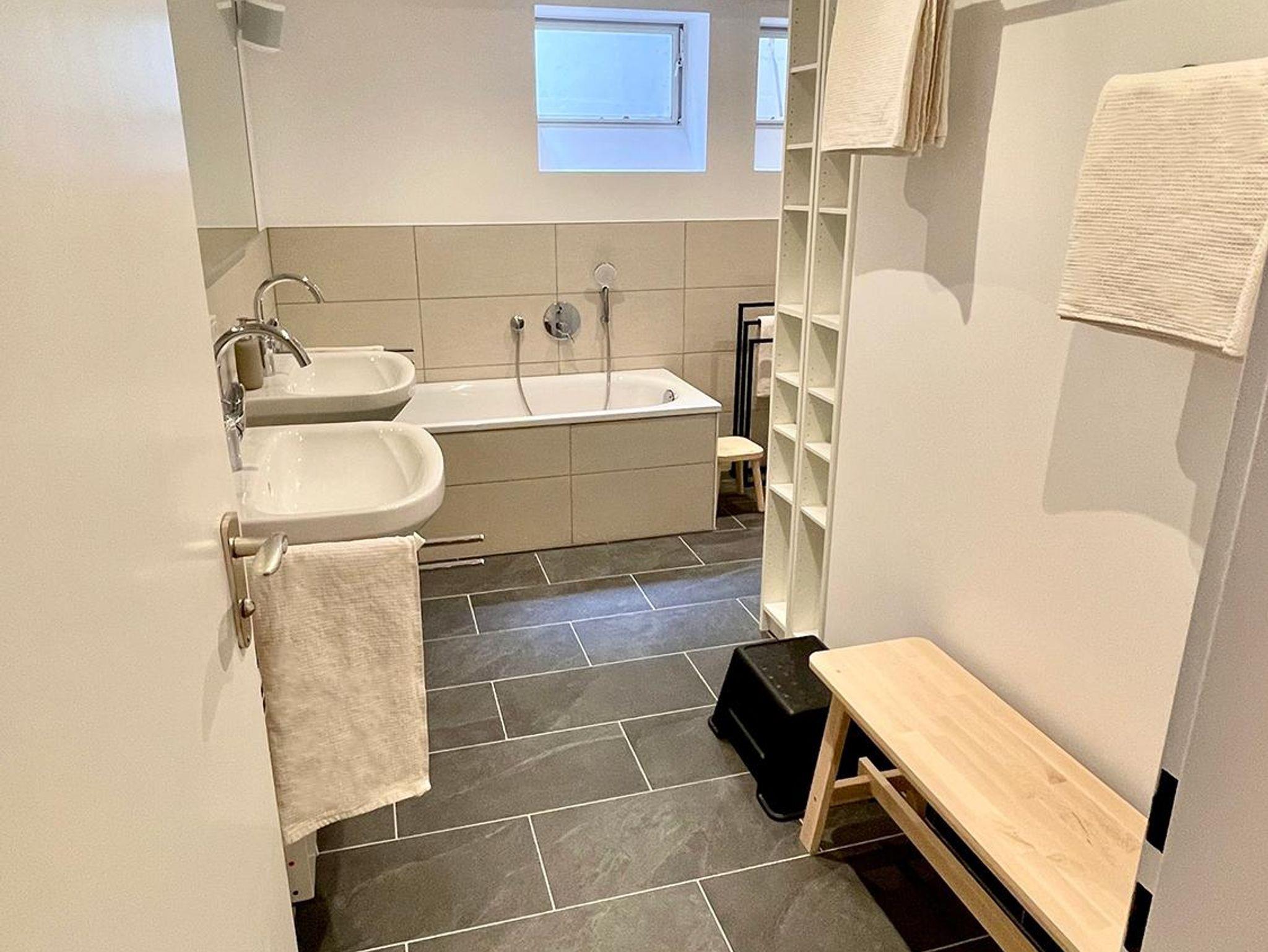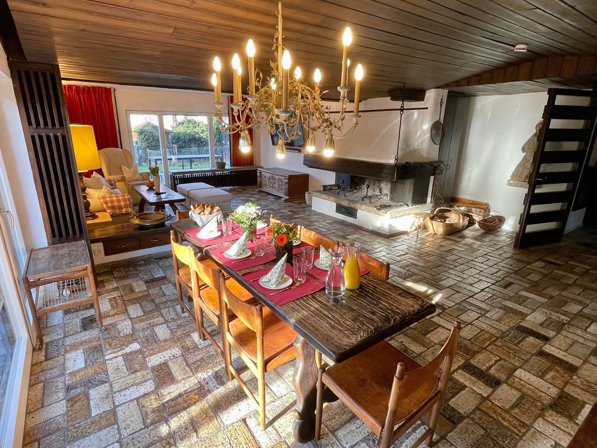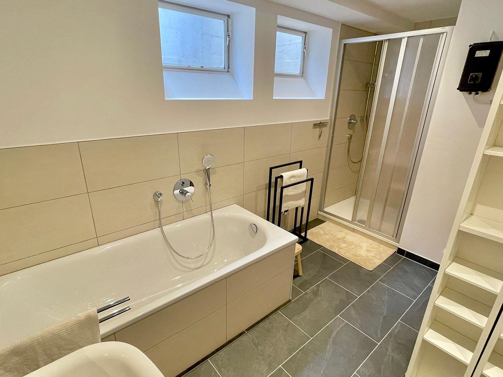 Die Wohnung erstreckt sich über zwei Ebenen und bietet mit seinen 5 Schlafzimmer, 2 Bäder, 2 Gäste-WCs, Sauna, Wohnzimmer, Küche mit Balkon und Terrasse sowie Garten ausreichend Platz für zwei Familien. Die Schlafzimmer im Halbsouterrain sind während den Sommermonaten der ideale Ort um der Hitze zu entkommen und bieten ein perfektes Raumklima. Ländlich-modern eingerichtet verfügt die Ferienwohnung über eine gut ausgestattet Küche, WLAN, Internetzugang, SONOS-Speaker in fast allen Zimmern & Bädern und ein sehr großes Wohnzimmer (53qm) mit einem offenen Kamin sowie einen großen 75 Zoll Smart-TV. Ideal für gemütliche Abende vor dem Feuer im Winter oder dem Kinoabend mit der ganzen Familie. Die 4 großen Schlafzimmer laden ein zum Verweilen und bieten Nachts einen erholsamen Schlaf.