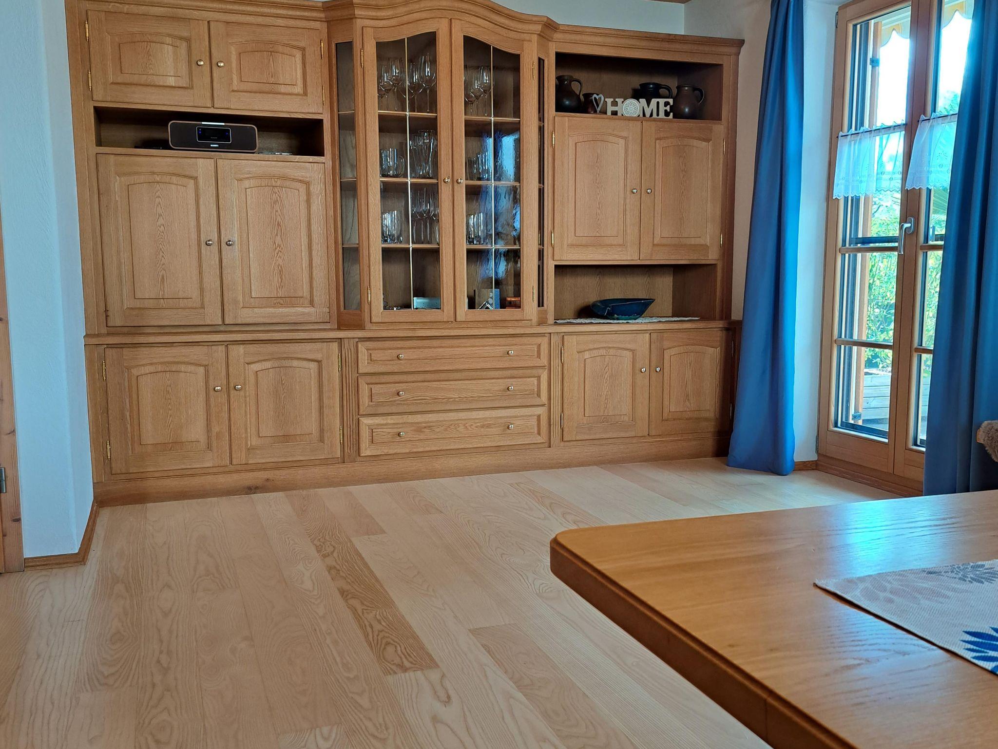 Die Ferienwohnung ist in zwei Ebenen aufgeteilt. Im EG finden Sie das Gäste-WC und die Garderobe. Die separate vollausgestattete Küche beinhaltet einen Kühlschrank und Gefrierschrank, einen Gasherd und -backofen, sowie eine Kaffeemaschine, Wasserkocher, Toaster und Spülmaschine. Das Ess- und Wohnzimmer ist mit einer Trennwand abgeteilt und mit einem Kachelofen ausgestattet, sowie TV, DVD, Radio und CD. Im 1. OG befindet sich ein Doppelzimmer und ein Mehrbettzimmer mit drei einzelnen Betten. Im Badezimmer gibt es neben dem Waschbecken ein WC, eine Dusche und eine Badewanne. Das Badezimmer hat zudem eine Fußbodenheizung. Bettwäsche, Hand- und Duschtücher werden bereitgestellt. Kinderhochstuhl ist vorhanden. Auf Anfrage kann ein Kleinkinderreisebett im DZ aufgestellt werden. Kostenloses WLAN.