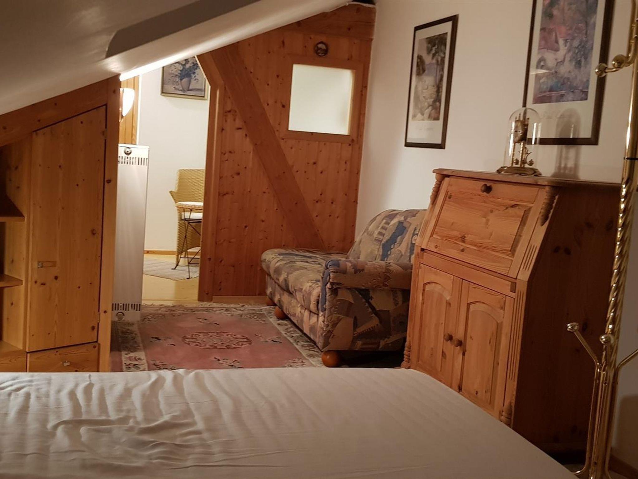 Schlafzimmer 1 oben: großes Doppelbett, Sekretär,Ottomane(1,60x50cm), Sat-TV Flachbilds.