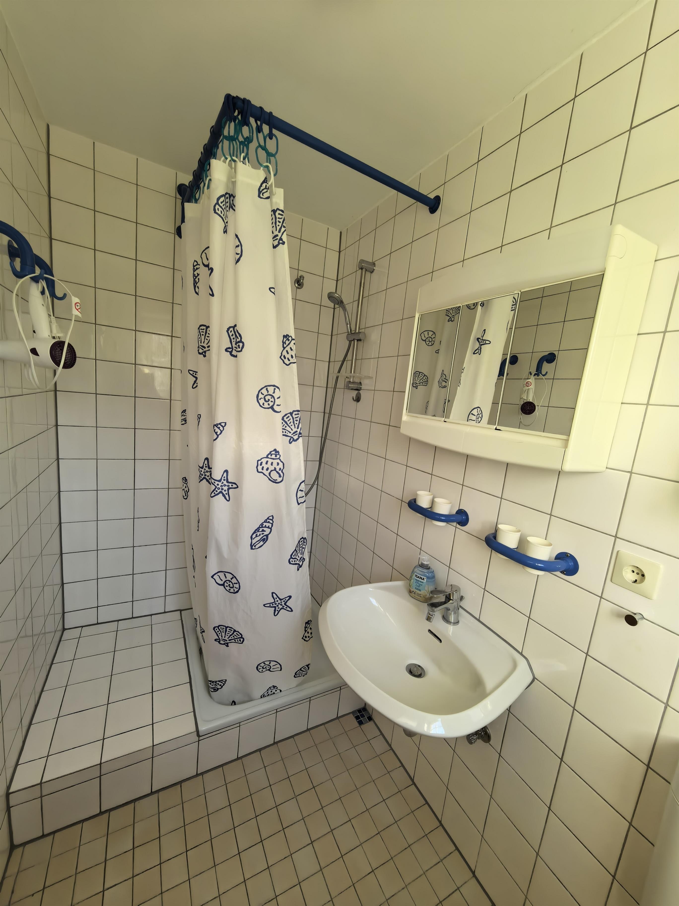 Die 56 m2 der Ferienwohnung verteilen sich auf ein lichtdurchflutetes Wohnzimmer mit offener Küche und Zugang zur Terrasse und dem gemeinschaftlich genutzten, großen Garten. Vom Flur aus gelangt man außerdem in ein kleines Duschbad und über eine Treppe ins Obergeschoss. Dort erwartet Sie ein großes Schlafzimmer mit traumhaftem Blick über die Felder, sowie ein Kinderzimmer mit Einzelbett und Kinder/Baby-Bett.