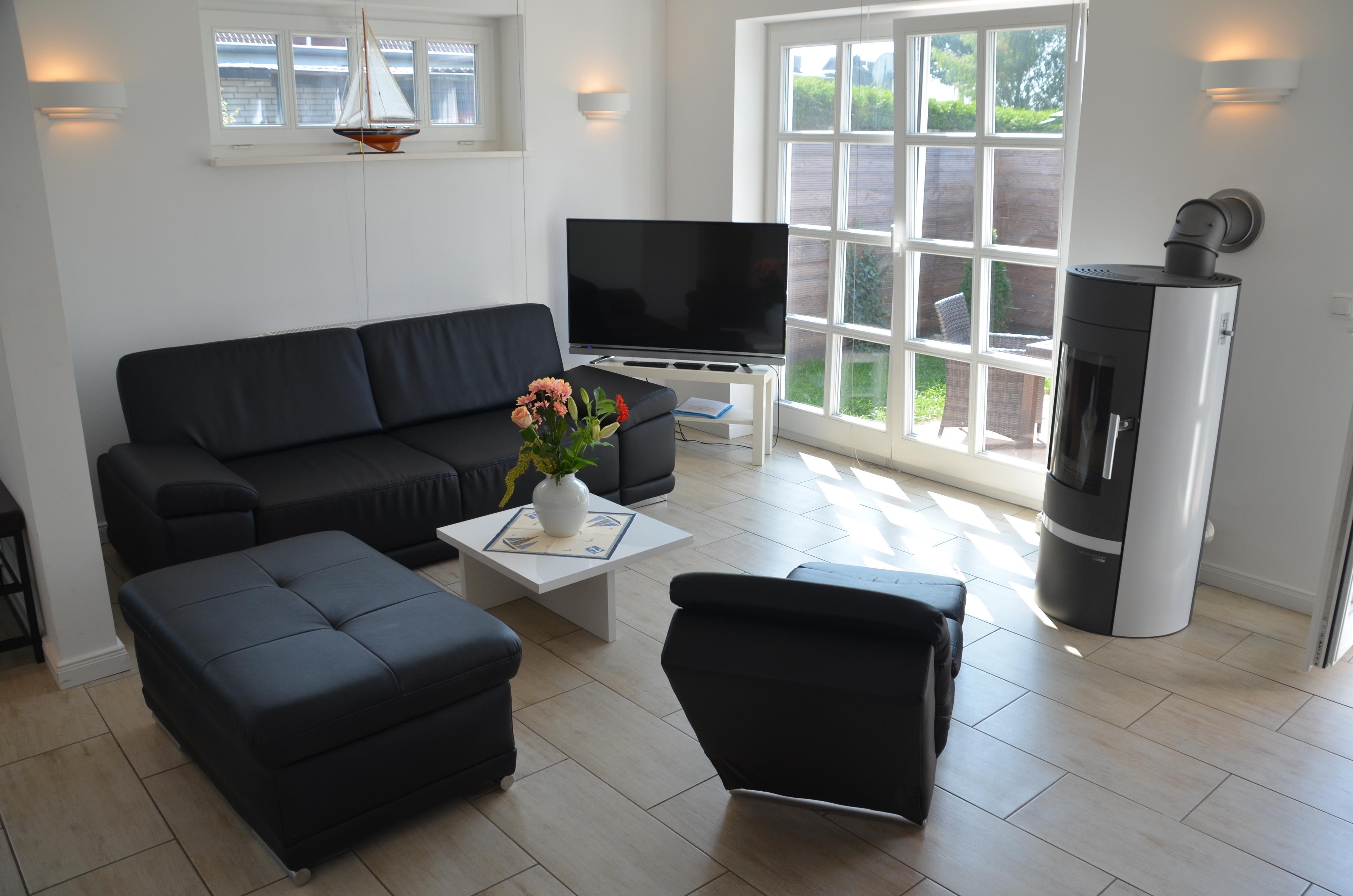 Ein gemütlicher Schwedenofen rundet die Ausstattung ab.