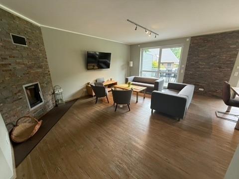 Für ein stilvolles Ambiente sorgen der ebenfalls geräumige & lichtdurchflutete Wohn- & Essbereich mit einer offenen Küche. Eine, individuell einstellbare Fußbodenheizung und ein Kamin sorgen für angenehme Wärme an nicht so heißen Tagen. Entspannen können Sie auch im gemütlichen Wohnbereich mit Couch vor einem Flachbildschirm.