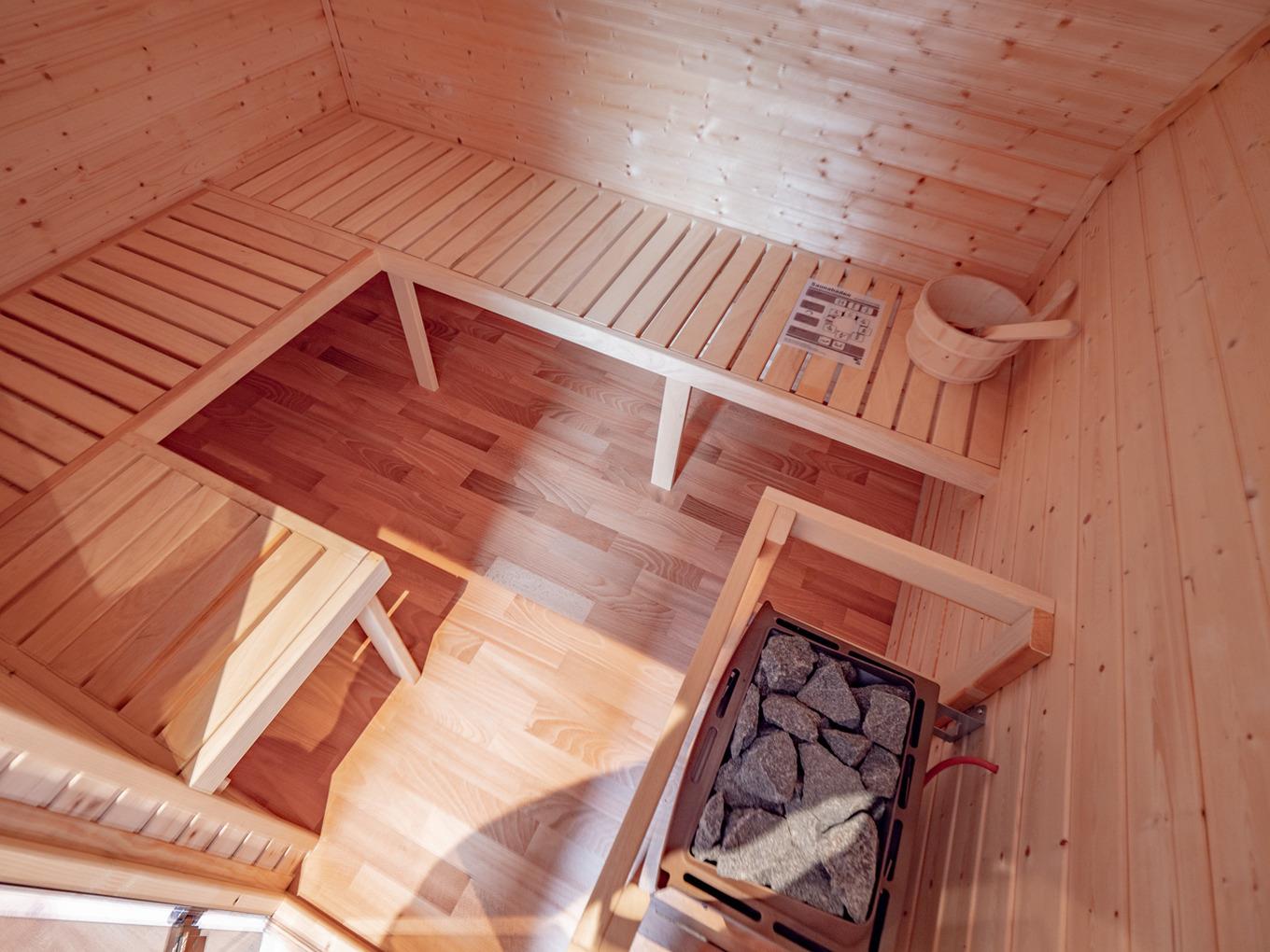 Im Dachgeschoss finden Sie eine Dampfsauna, die gerade in der kühlen Jahreszeit für entspannte Momente sorgt. Neben dem Ruhebereich gibt es für die Sauna noch ein Duschbad.