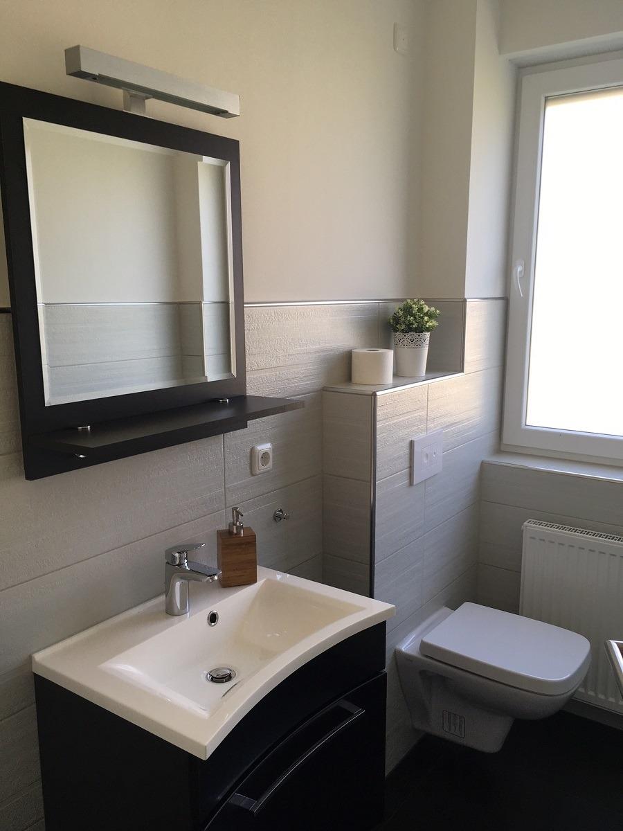 Der modern eingerichtete Wohnbereich mit Zugang zur Terrasse & anschließendem Garten bietet Ihnen eine Wohlfühl-Atmosphäre, welche durch den Kaminofen noch unterstrichen wird. Hier können Sie auf der gemütlichen Couch vor einem Flachbildschirm entspannen. Die in diesen Raum integrierte Küche lässt nicht nur das Herz eines Hobbykochs höher schlagen. Die hochwertige Ausstattung mit einem Umluftherd, Mikrowelle, Spülmaschine, Kühl-/Gefrierschrank, 4-Zonen-Cerankochfeld, ausreichend Geschirr, Gläser, Besteck, Kochtöpfe sowie vielen nützlichen Kochutensilien lässt keine Wünsche offen. Ein Esstisch mit Sitzmöglichkeiten für 6 Personen lädt zum gemütlichen Zusammensitzen ein. Vom Wohn- & Essbereich betreten Sie die Terrasse, die mit hochwertigen Gartenmöbeln ausgestattet ist. Die Ferienwohnung bietet Ihnen 1 luxuriöses Badezimmer. Das hochwertig ausgestattete Wellness-Bad bietet eine bodengleiche Raindance-Dusche, Design-Waschtisch. Zusätzliches Bad mit Waschbecken, Urinal und WC. Beide Schlafzimmer sind mit einem bequemen Doppelbett und Kleiderschrank mit viel Stauraum für Ihre Urlaubsgarderobe ausgestattet.