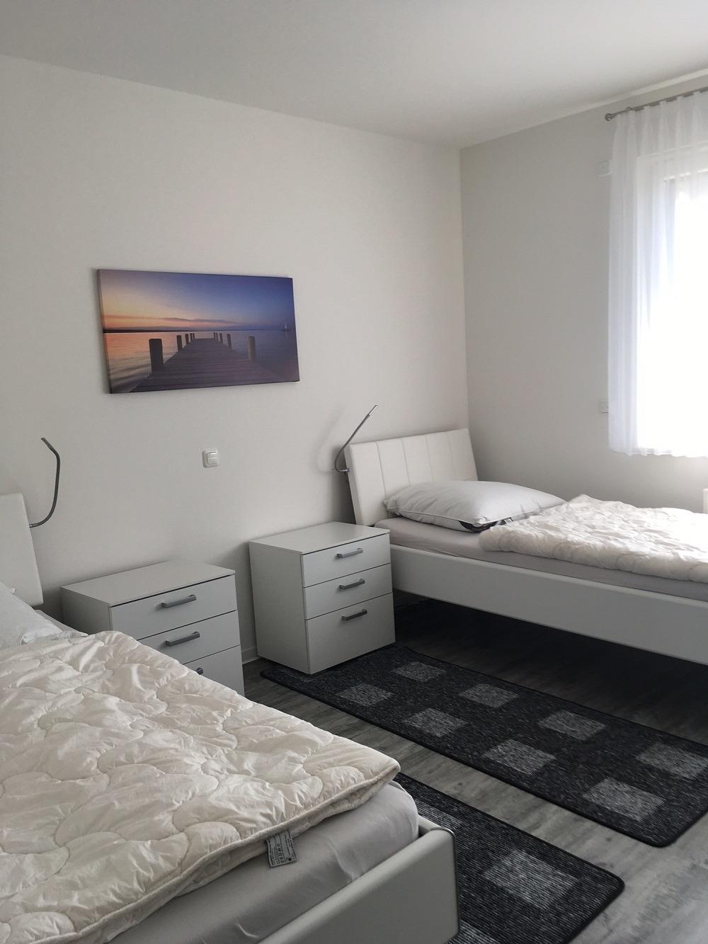 Die Nichtraucher- Ferienwohnung im EG ist ideal für 1-4 Personen geeignet. Zusätzlich ist maximal die Unterbringung eines Babys (5. Person) in einem Babyreisebett gegeben. Ein Parkplatz steht direkt am Ferienhaus zur Verfügung. Kostenloses WLAN, elektrische Rolläden mit Zentralsteuerung.