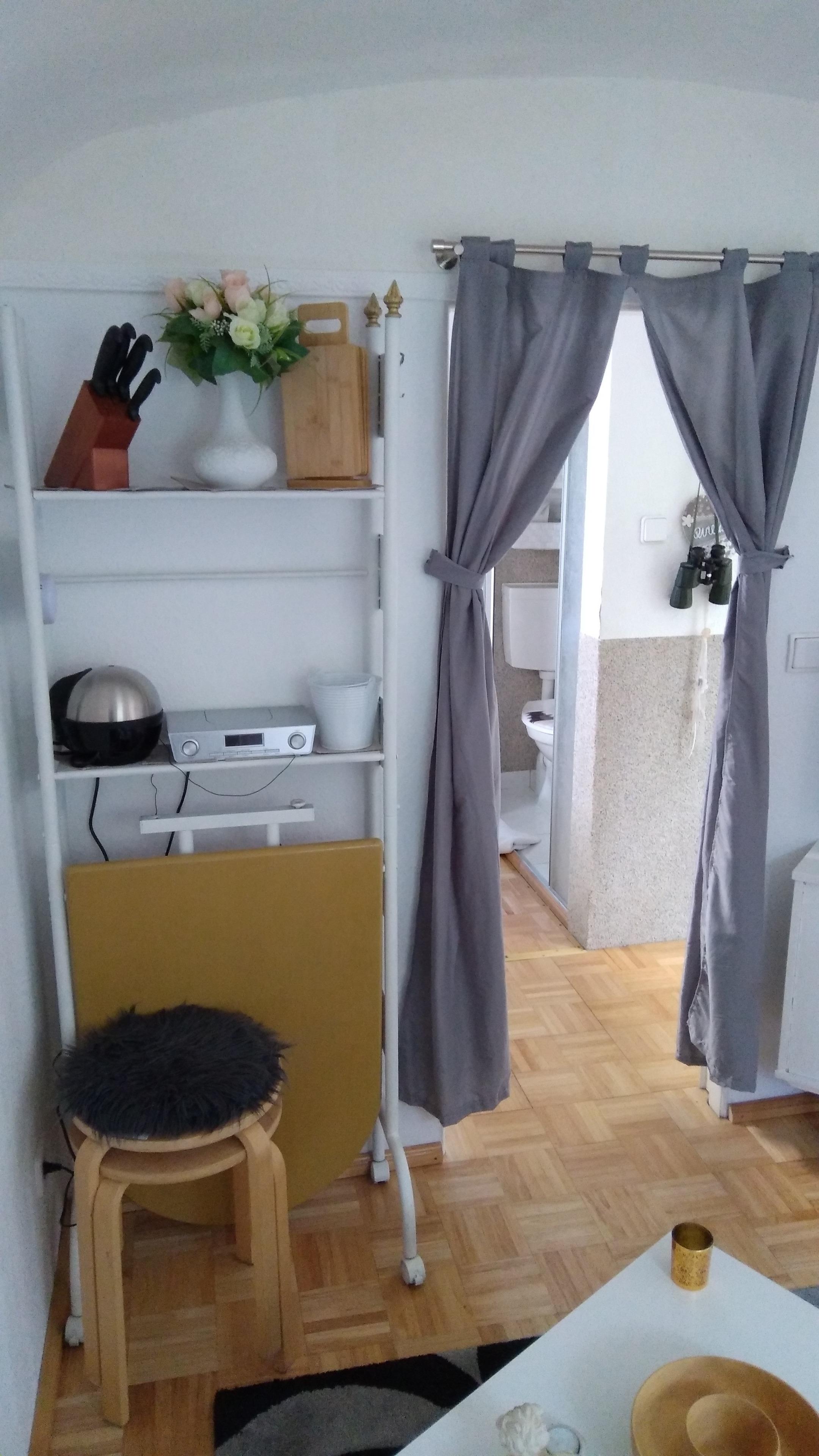 Das Tiny House verfügt über ein Minibackofen und Mikrowelle und ein 2 Plattenherd .