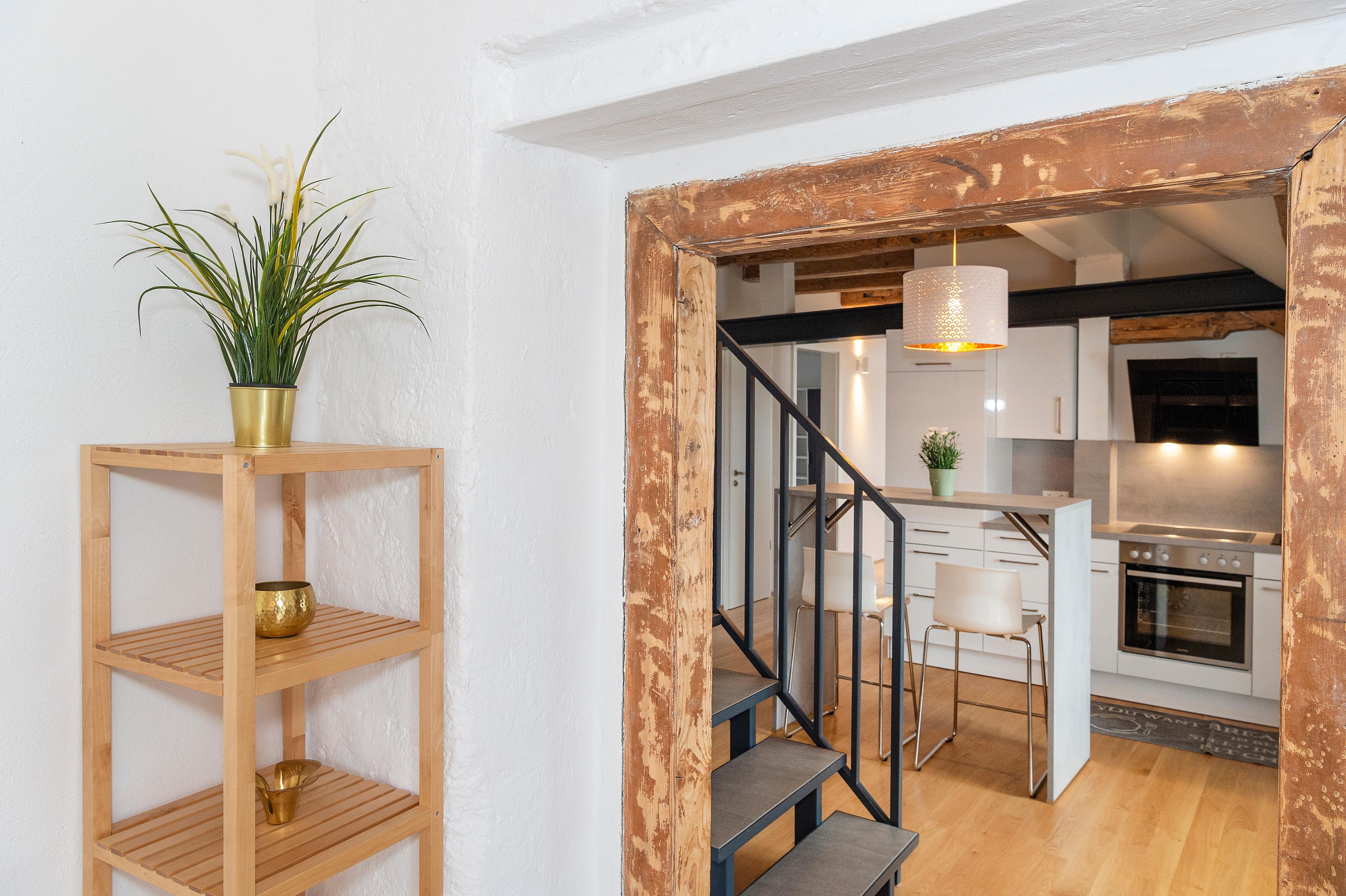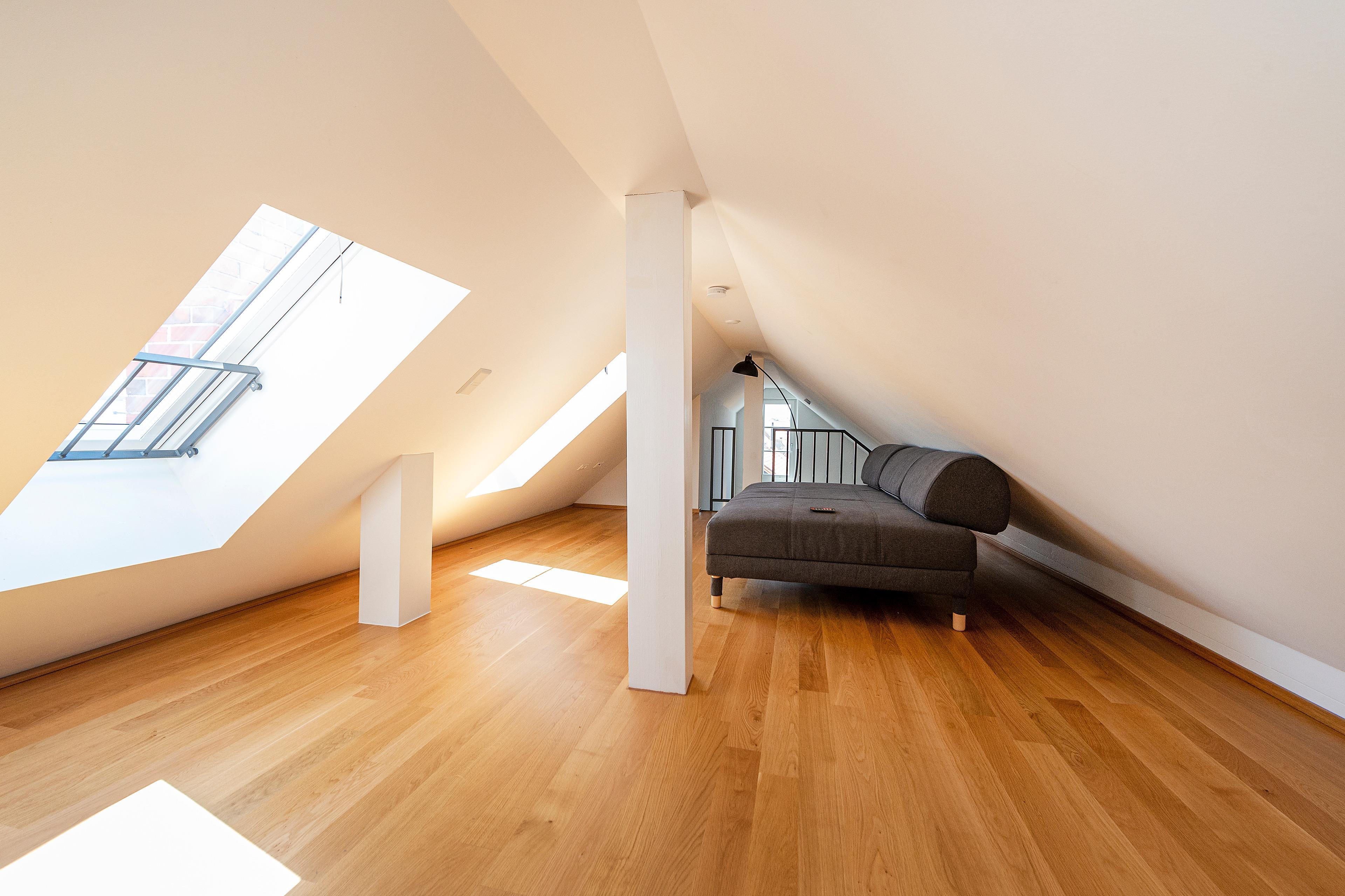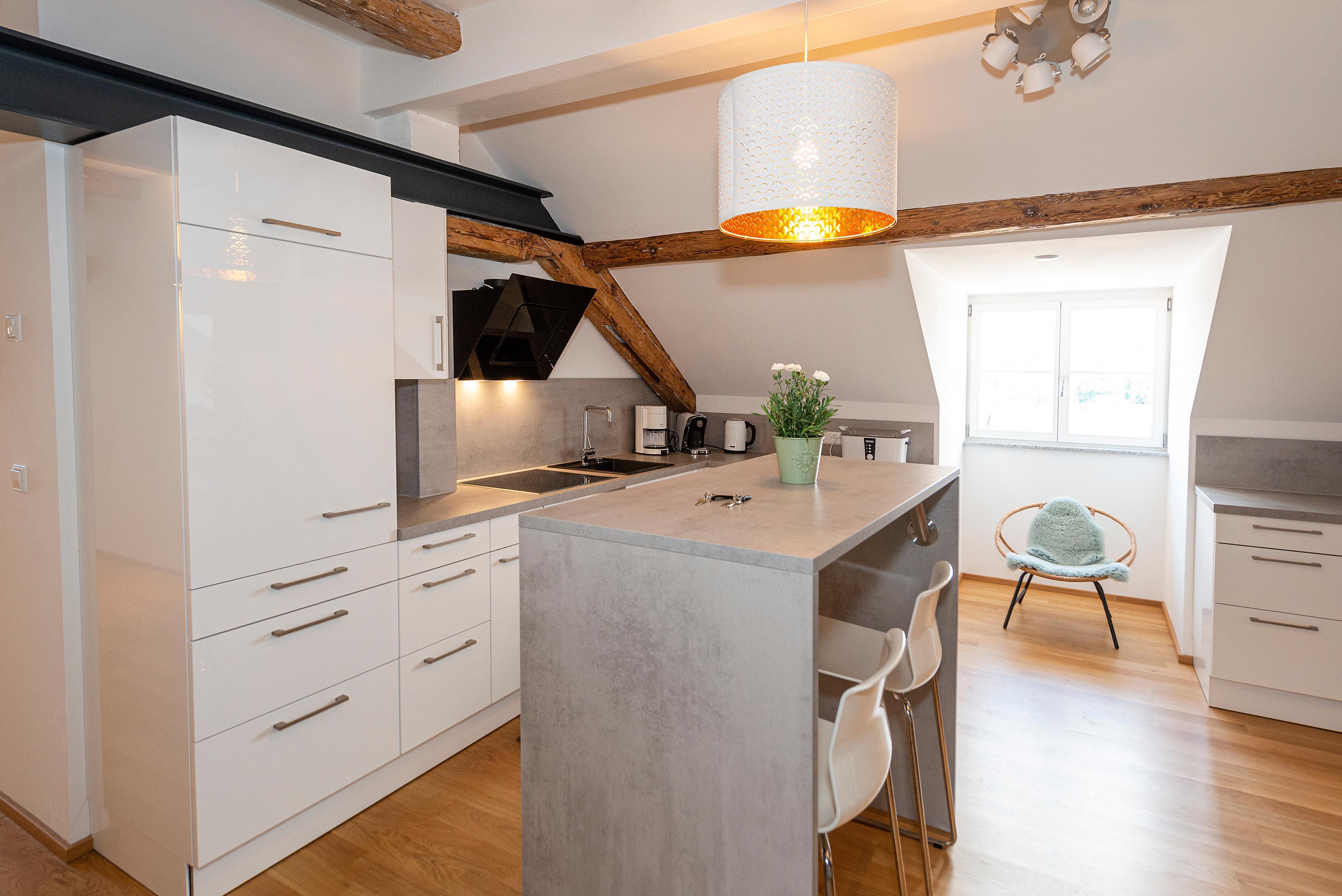 Ein komfortables Penthouse wurde im Sommer 2018 aus dem geräumigen Speicher unseres Inselhauses. Antikes Gebälk und moderne Bauelemente schaffen eine einmalige Loft-Atmosphäre weitab von Trubel und Hektik über den Dächern der Insel.